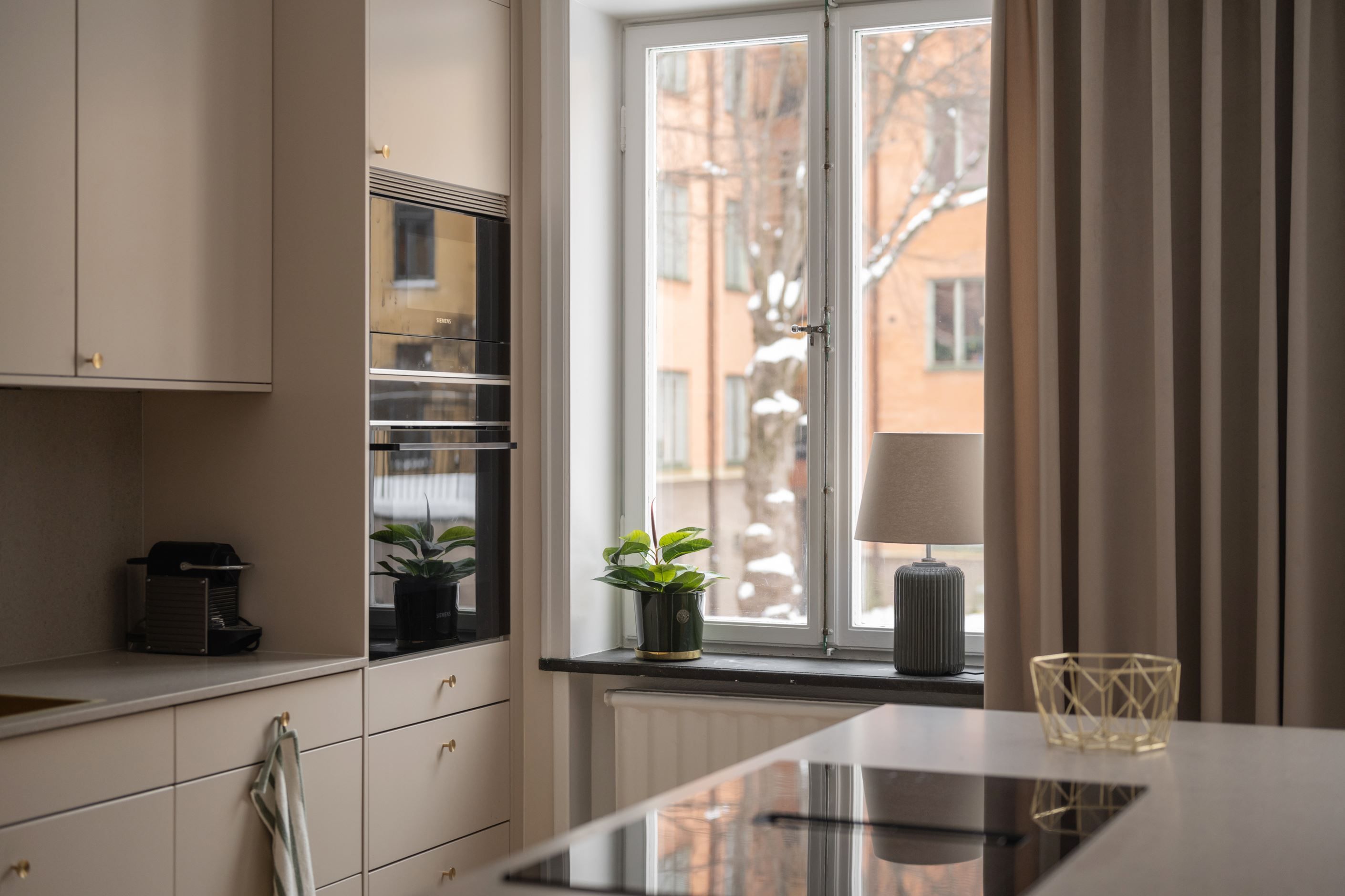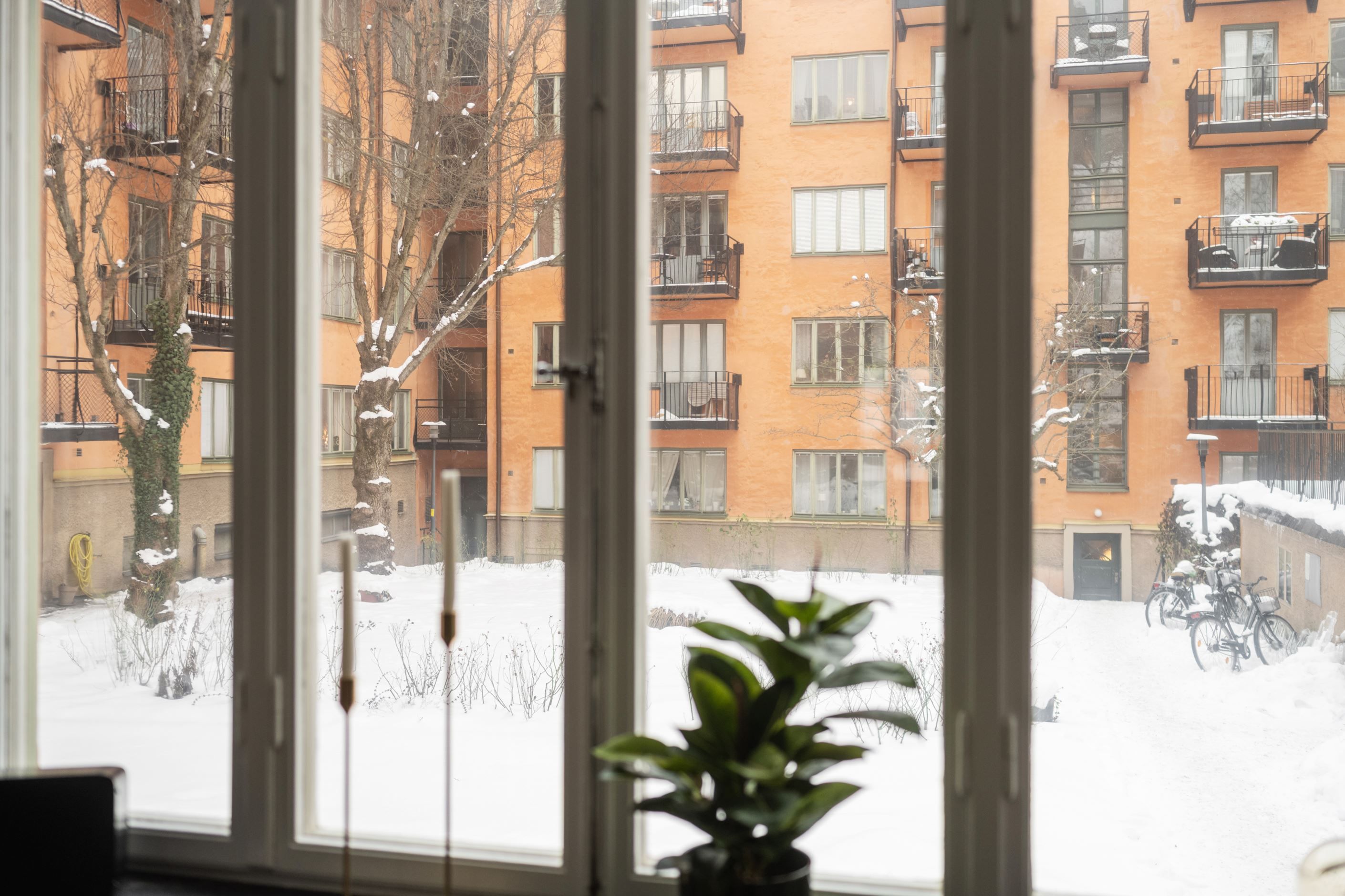 Lägenheten är genomgående med stora fönster i två väderstreck, högt belägen mot lugna gårdar som bidrar till en rofylld atmosfär och insynsskyddat boende. Den gedigna takhöjden och de vackra 20-talsattributen ger en luftig och karaktärsfull känsla.