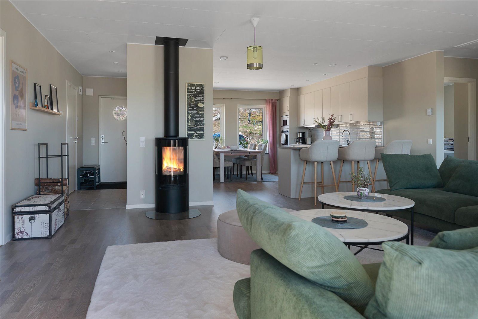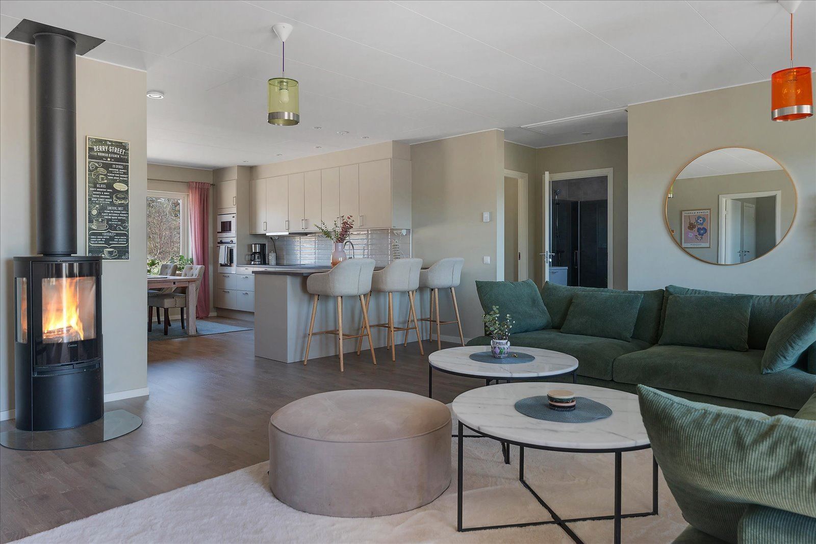 Generösa ytor: Med en boyta på ca 113 plus 40 kvadratmeter finns här gott om plats för både familjeliv och sociala sammanhang.