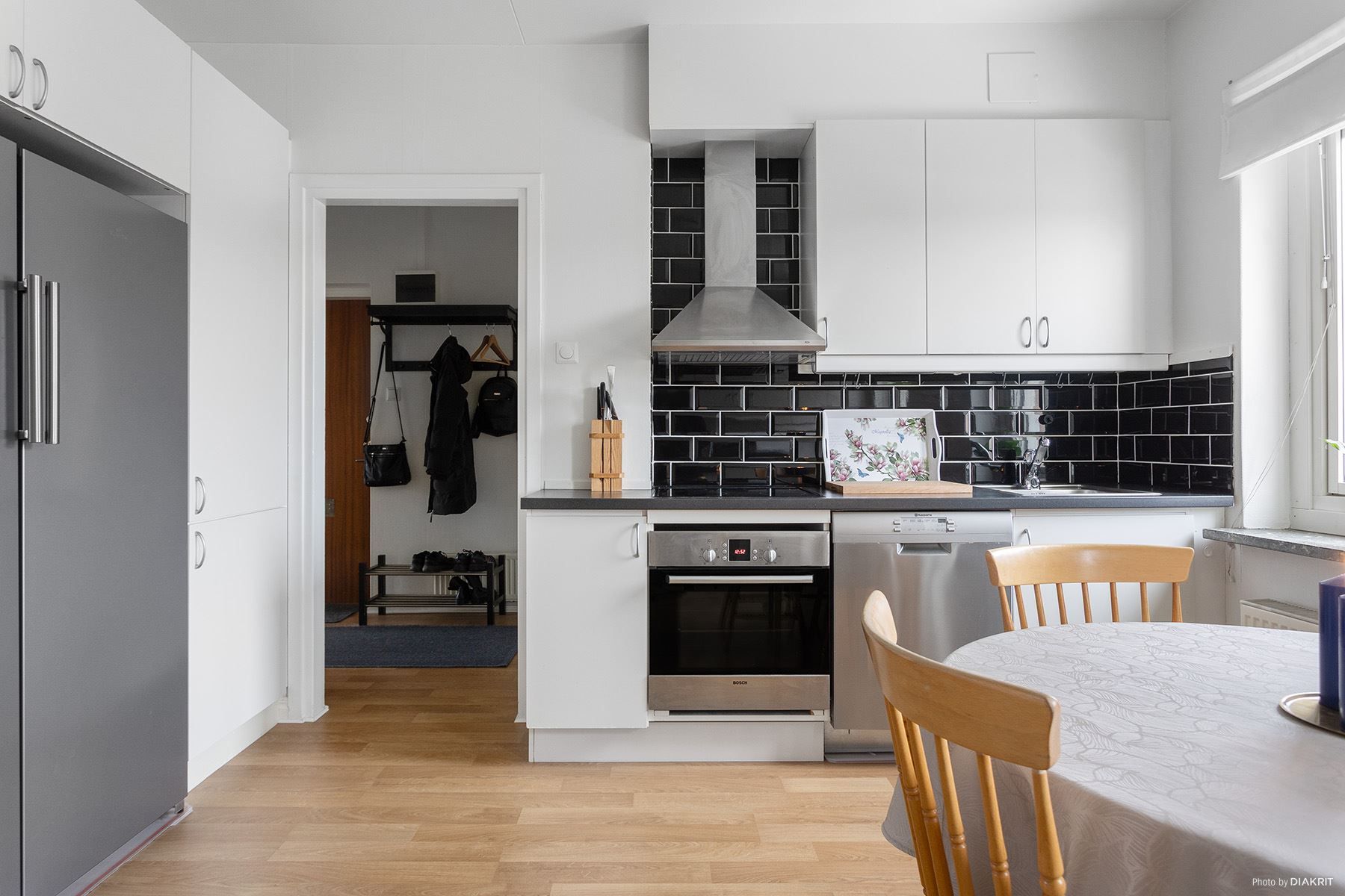 Det rymliga köket erbjuder gott om arbetsyta och plats för matbord, perfekt för både vardagsmiddagar och trevliga kvällar med vänner. Det helkaklade badrummet ger ett fräscht och stilrent intryck. Vardagsrummet är ljust och inbjudande, med trevliga sällskapsytor och utgång till den mysiga balkongen i soligt västerläge, en underbar plats att njuta av eftermiddagssolen och ljumma sommarkvällar.