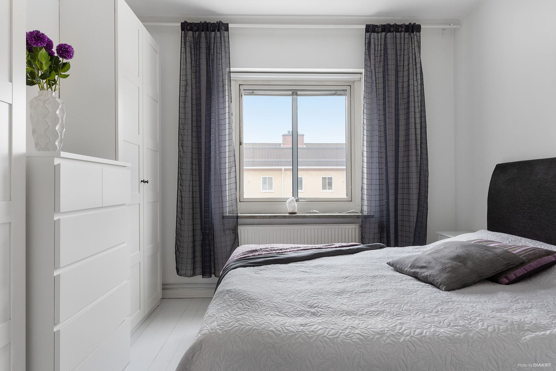 Sovrummet är rofyllt och ombonat med charmiga målade trägolv som ger karaktär. Här finns dessutom två stora garderober som erbjuder generös förvaring.