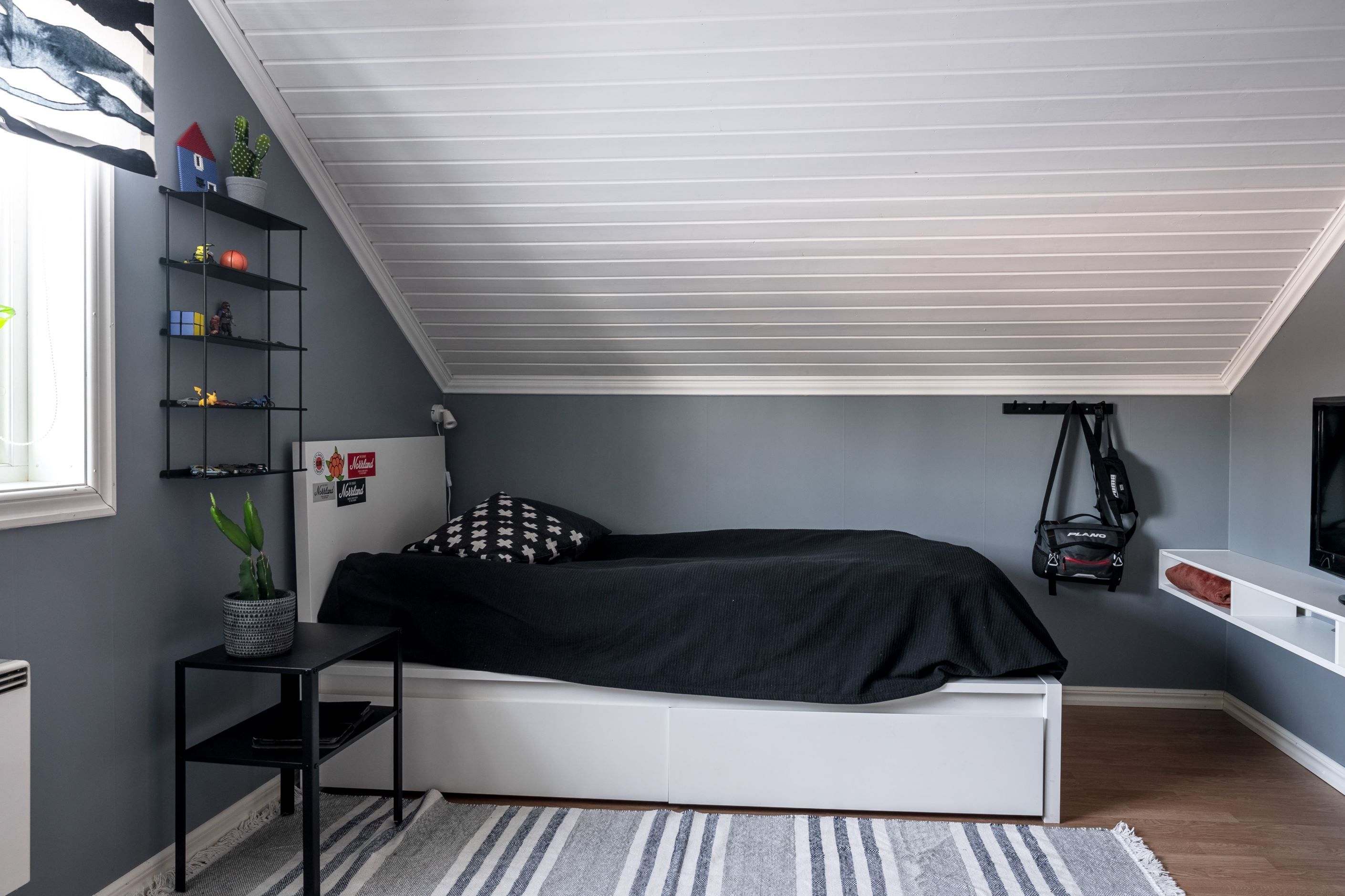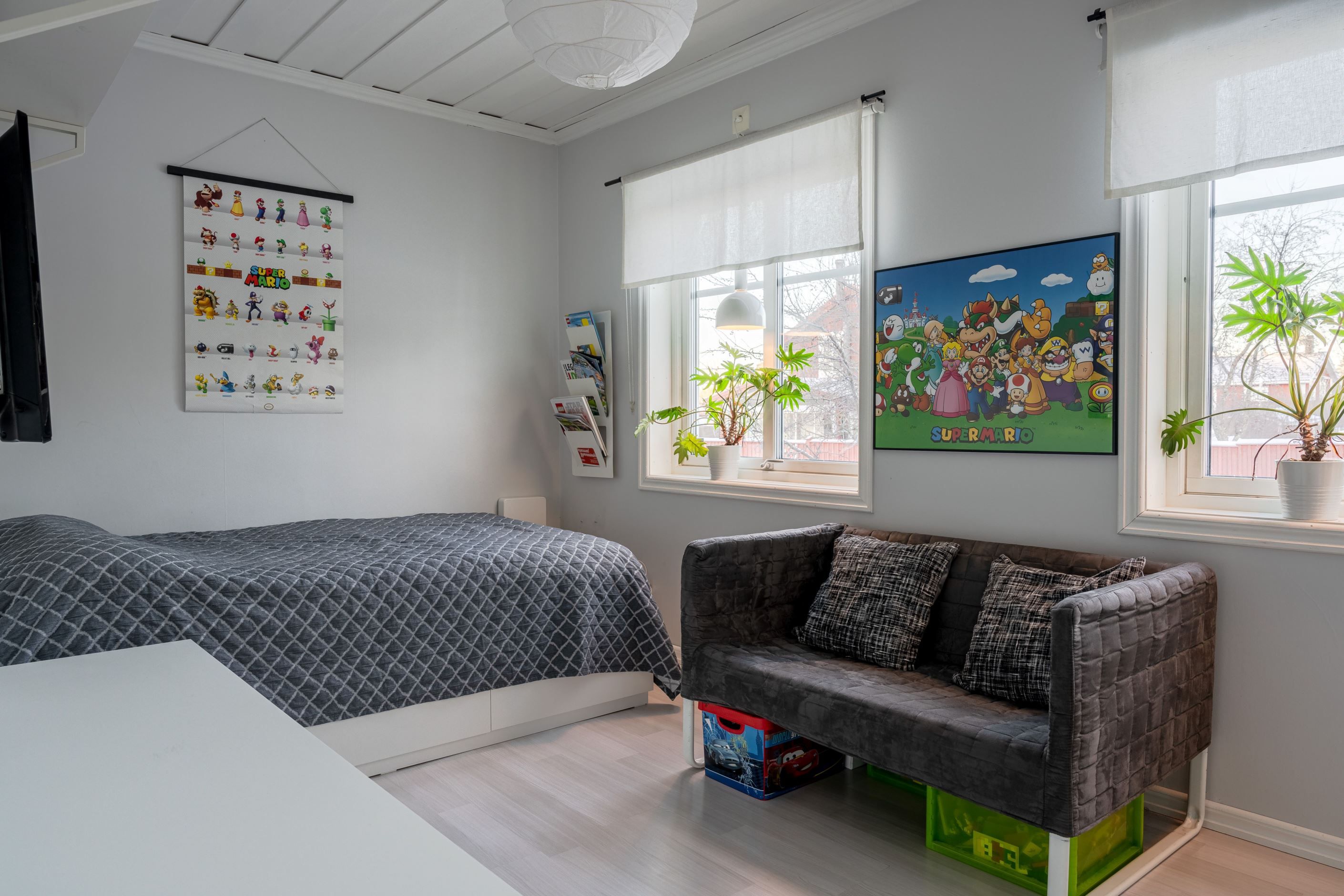 Övre plan bjuder på två sovrum, allrum och utmärkt förvaring. Ett perfekt våningsplan samtidigt som du finner ytterligare ett sovrum på entréplan