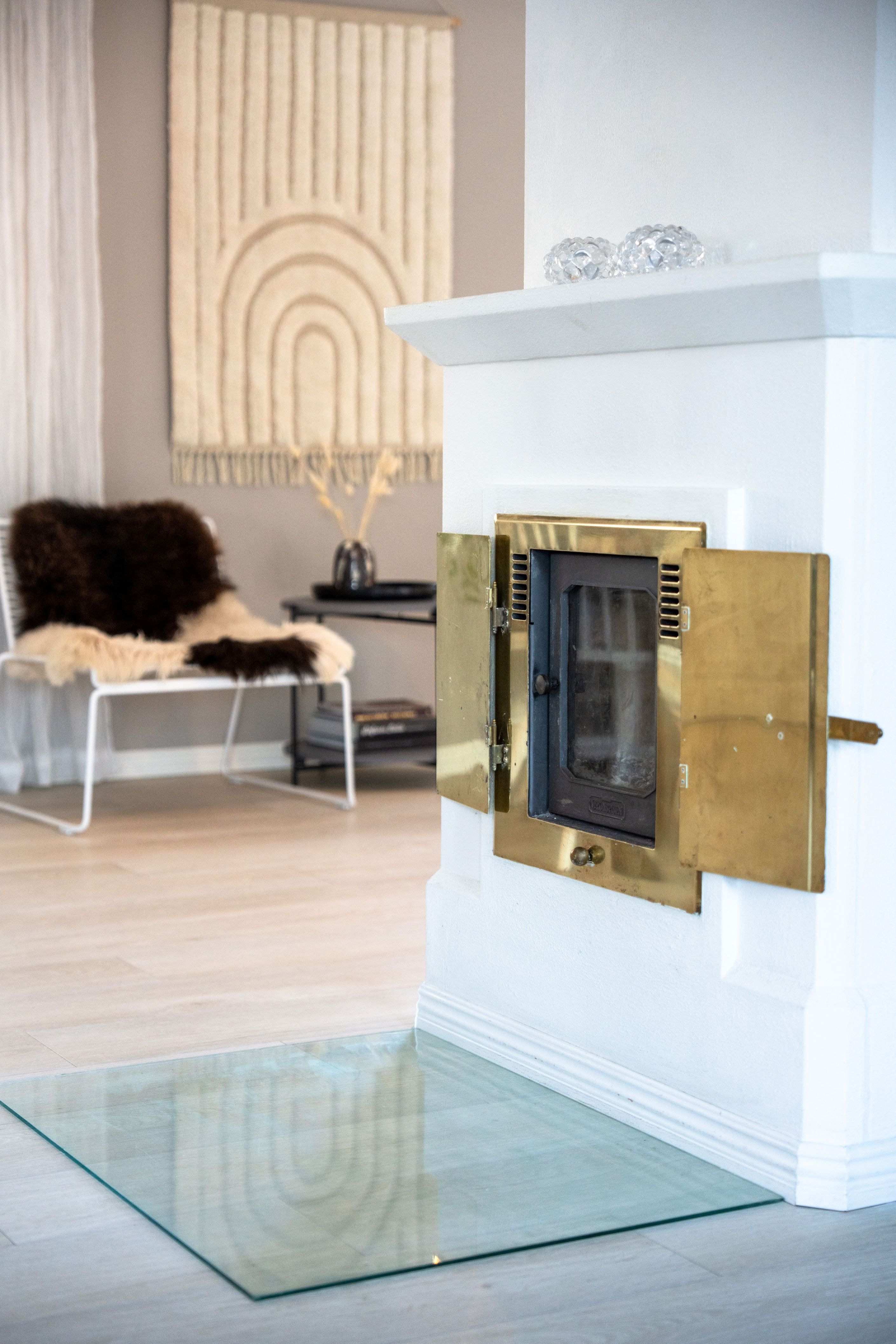 Den centrala kakelugnen från 2004 blir ett naturligt nav i hemmet och bidrar med både stämning och värme under vinterhalvåret.