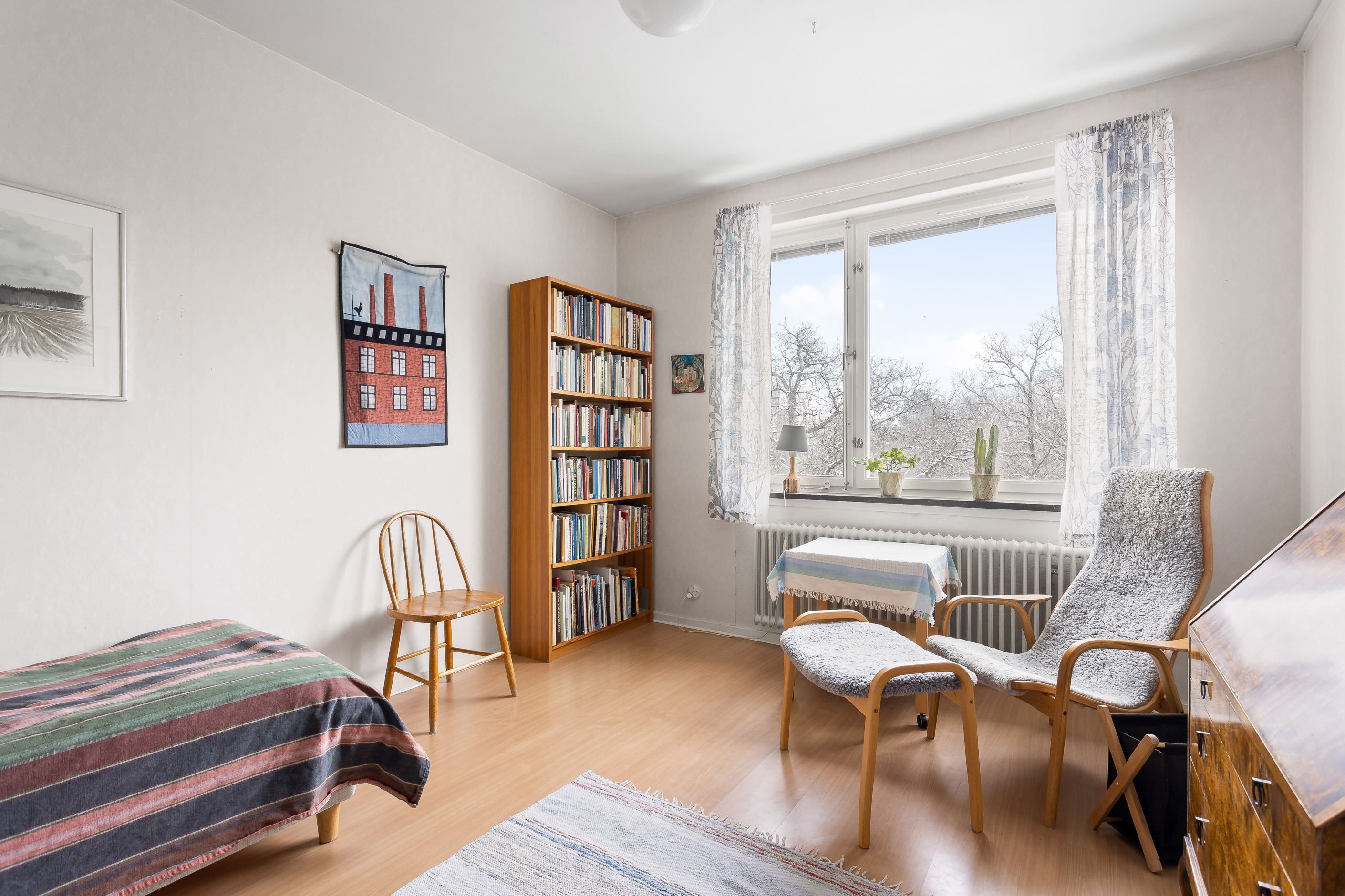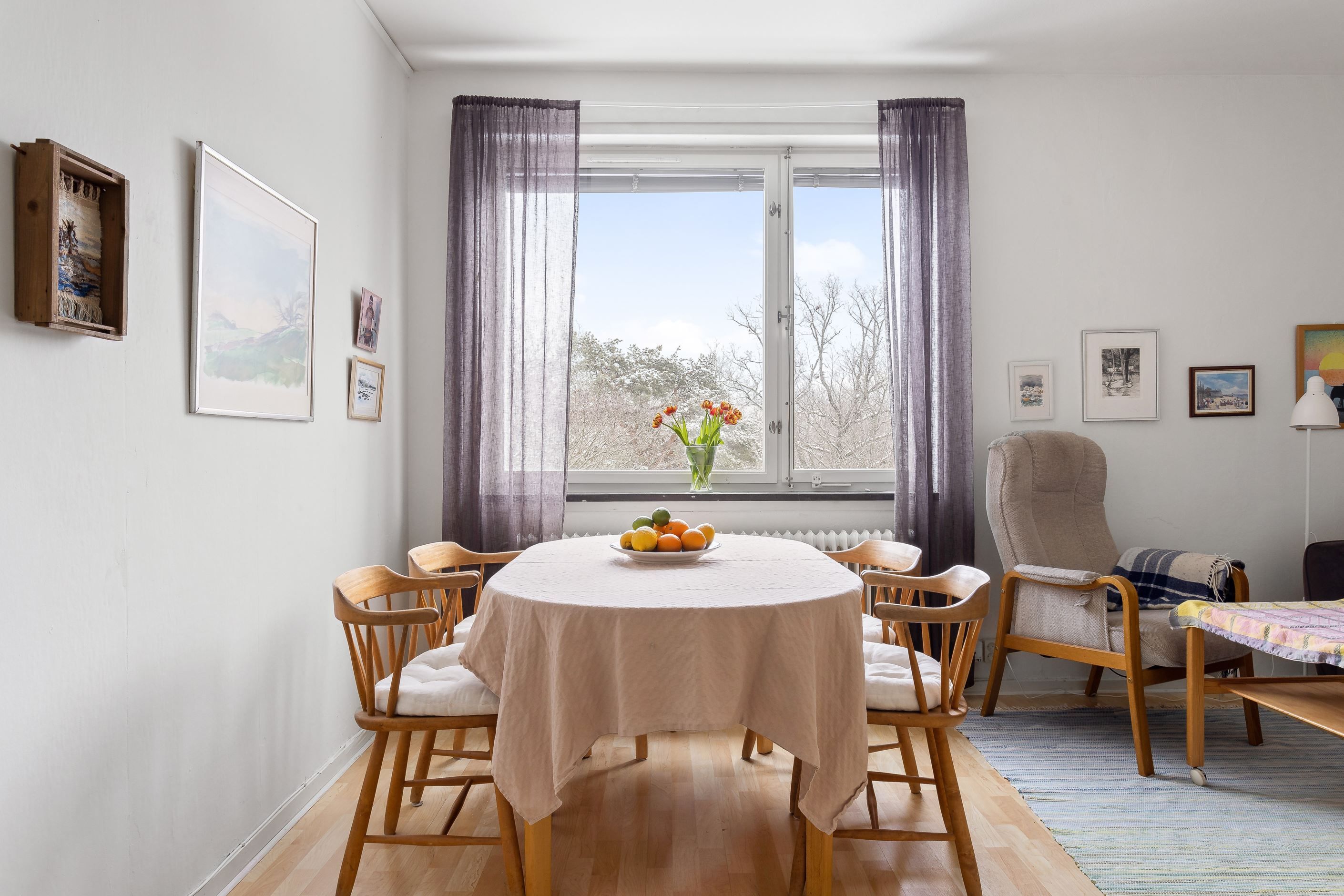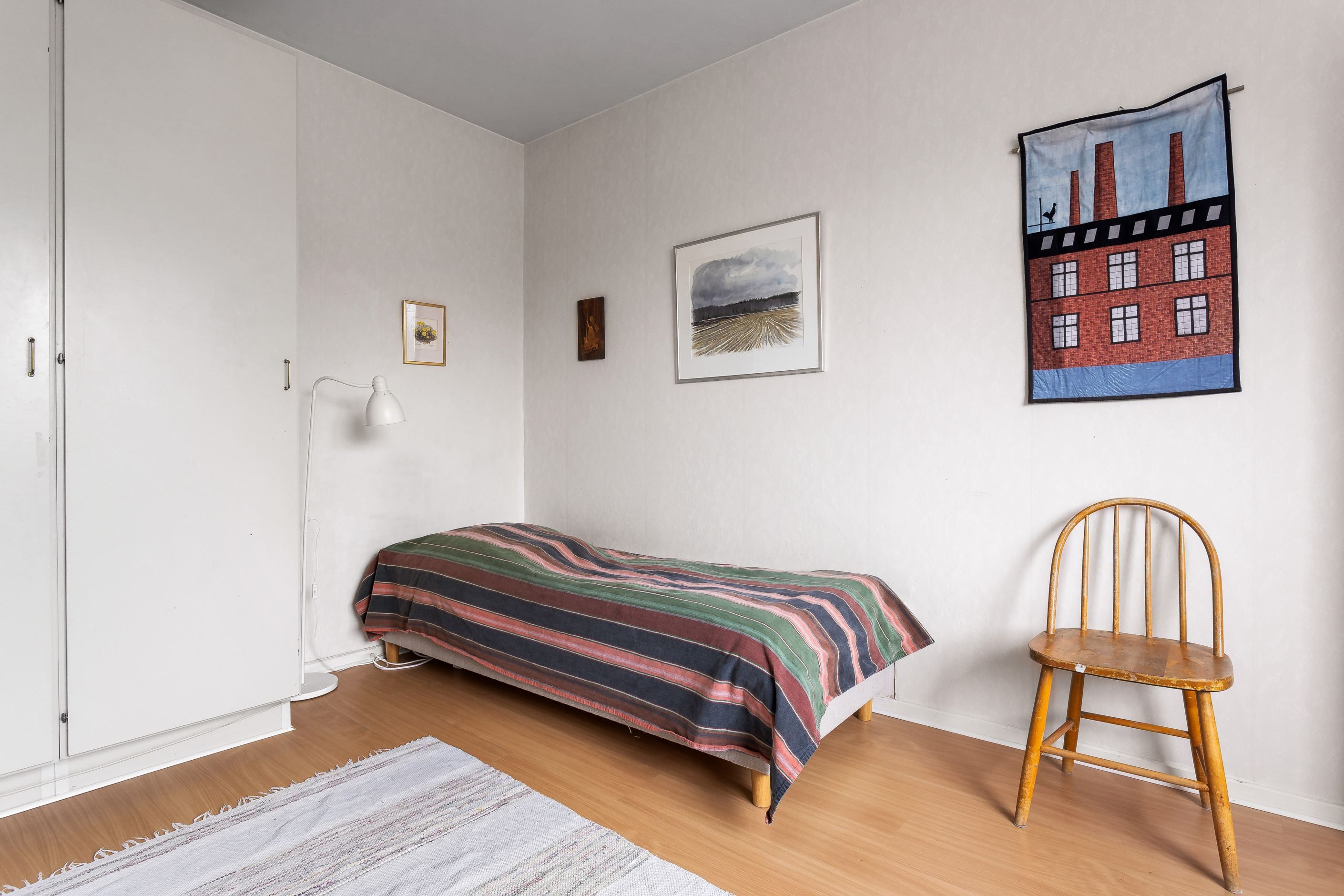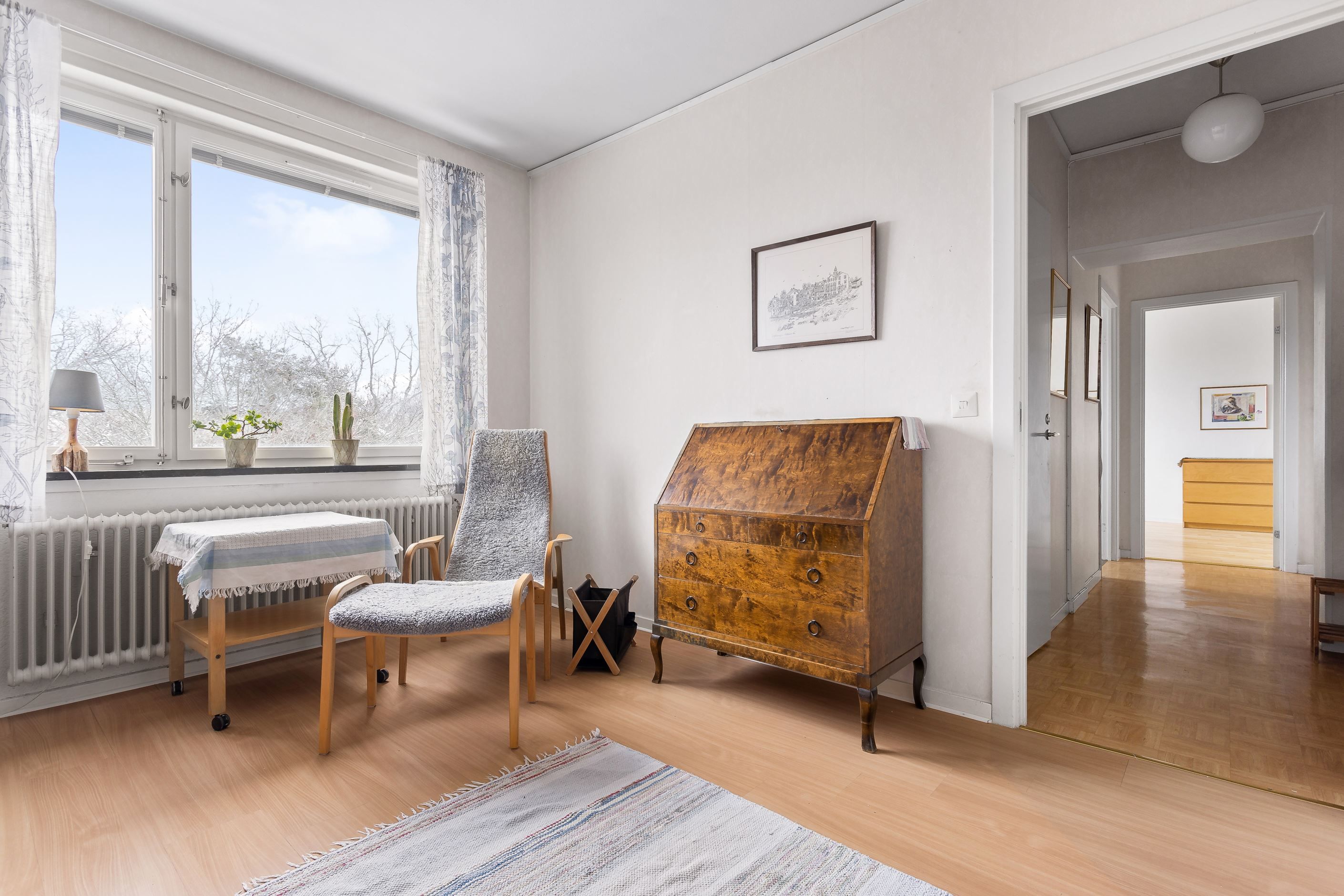 Trivsam tvårummare högst upp i kulturmärkt fastighet i lugn Äppelviksidyll. Ett helt ogenerat boende utan insyn med utsikt över grönskande omgivningar. Lägenheten är genomgående ljus med stora fönster och väl tilltagen takhöjd. Generöst storlek på sovrum och vardagsrum. Kök i tidstypisk stil med vita snickerier och diskbänk i rostfritt. Rymligt badrum med WC, handfat och dusch samt fönster för ett trevligt ljusinsläpp. I innerhallen samt i sovrum finns flertalet garderober för bra förvaringsmöjligheter. Säkerhetsdörr.