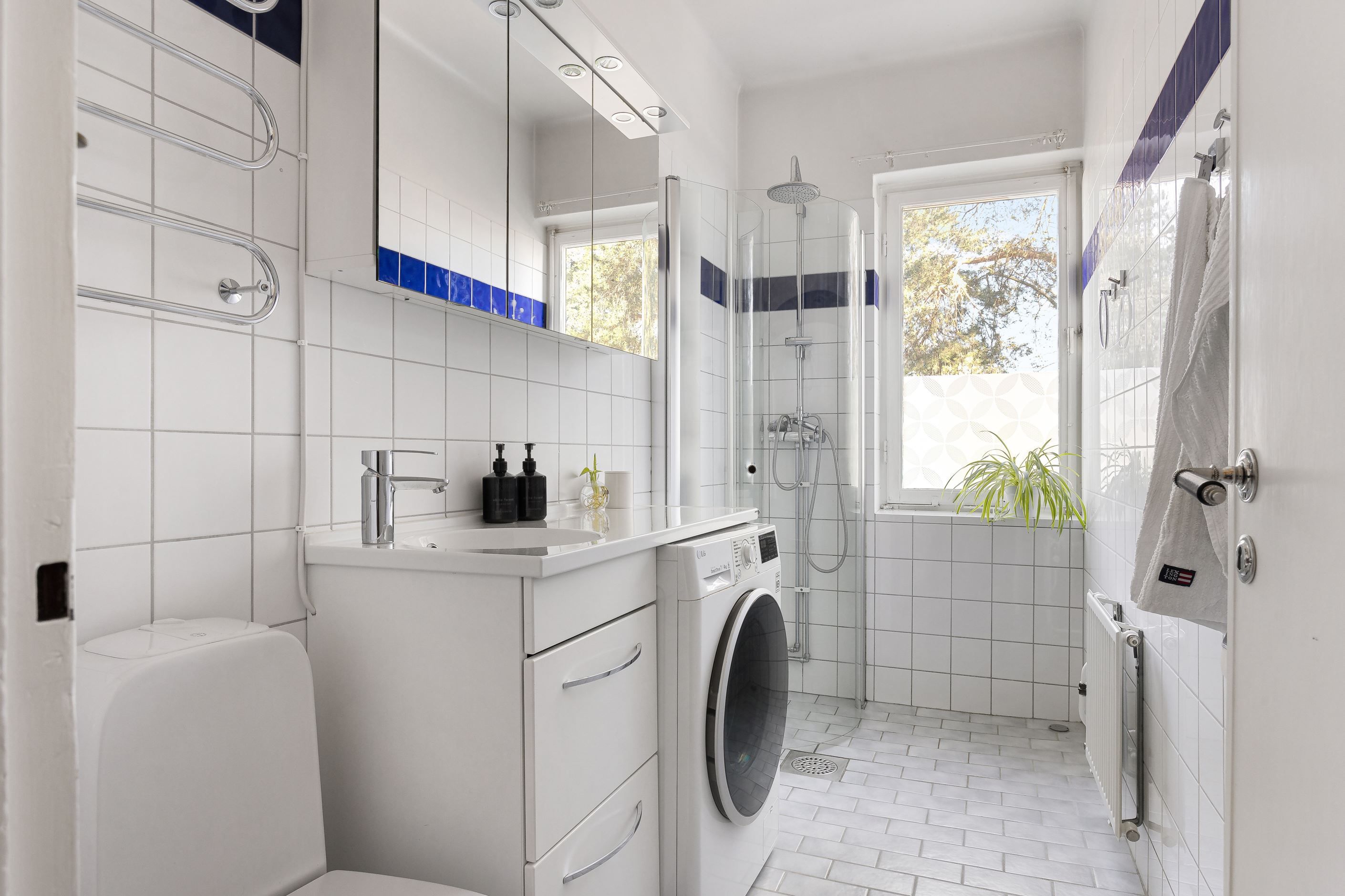 Synnerligen välbeläget invid Äppelvikens harmoniska villakvarter som blommar vackert. Skyddat promenadstråk genom grönska till Äppelvikens populära skola och ner mot Mälaren med badklippor och joggingstråk utmed vattnet. Endast någon minut till tvärbanan och ytterligare några minuter till T-bana och närservice vid Alviks Torg med ett bra utbud av diverse småbutiker och restauranger. Några minuter åt andra hållet nås hjärtat av Äppelviken med mysiga cafeér som klassiska Park bageri & konditori. Ett tilltalande bekymmersfritt boende på eftersökt adress i trivsam välskött förening.