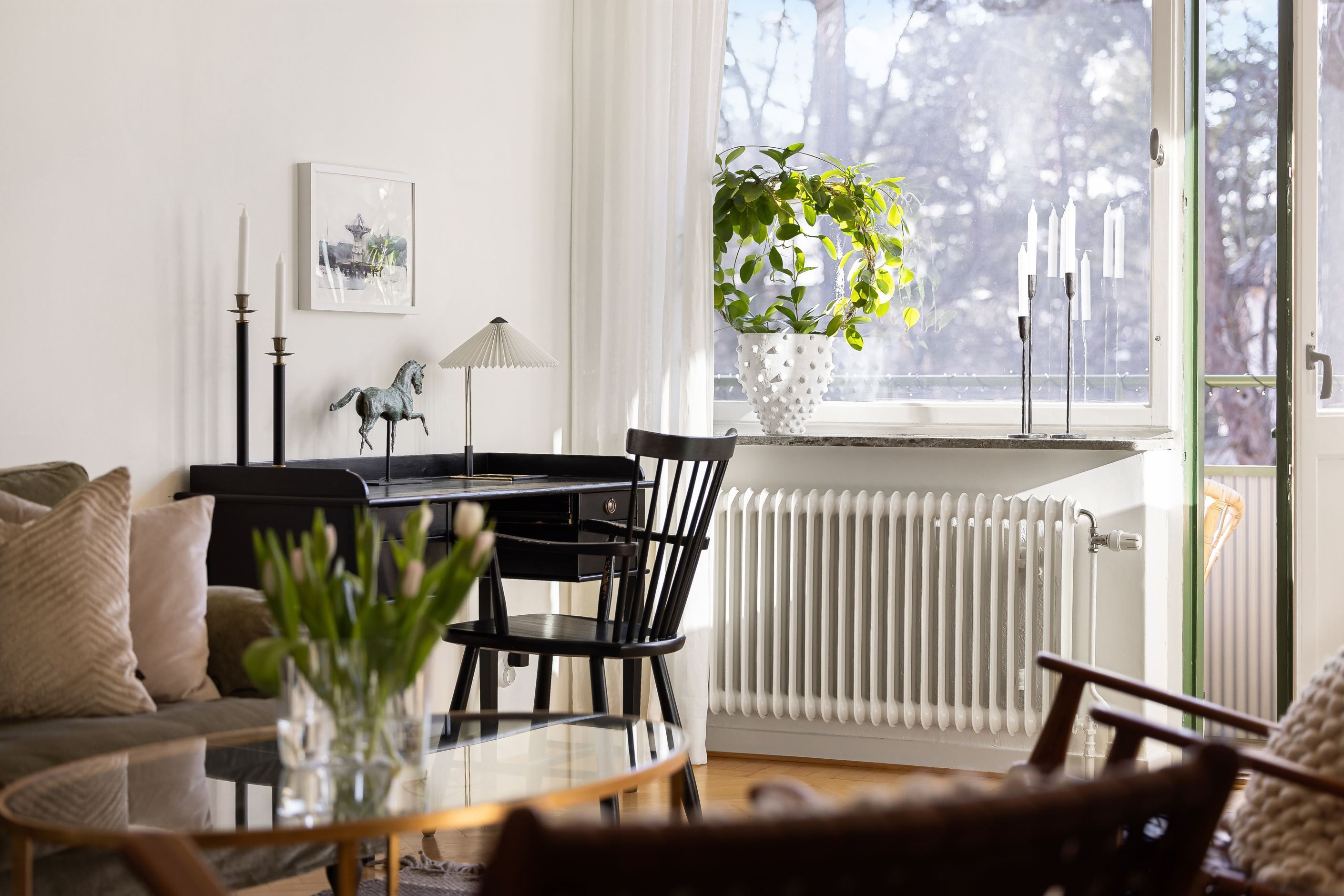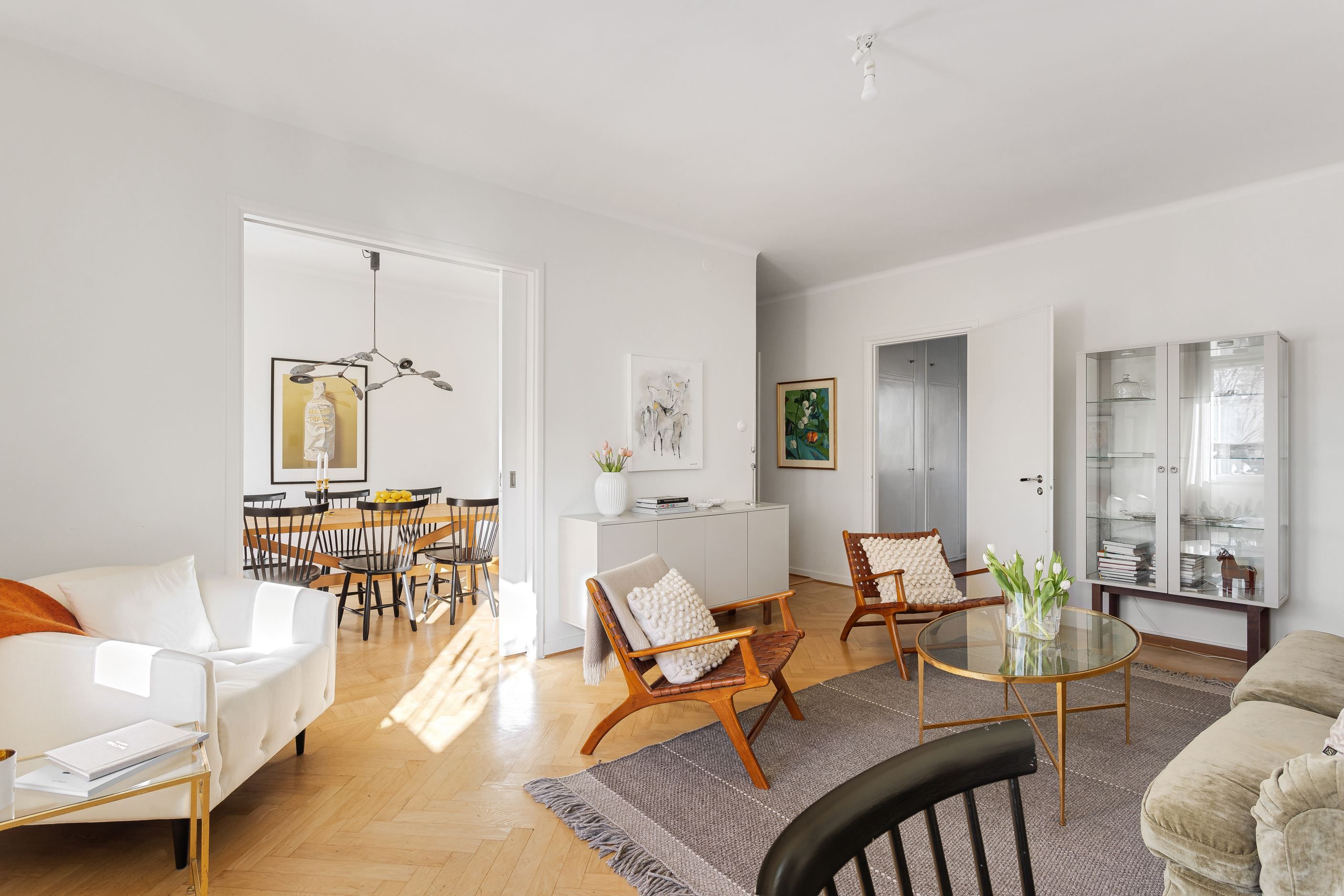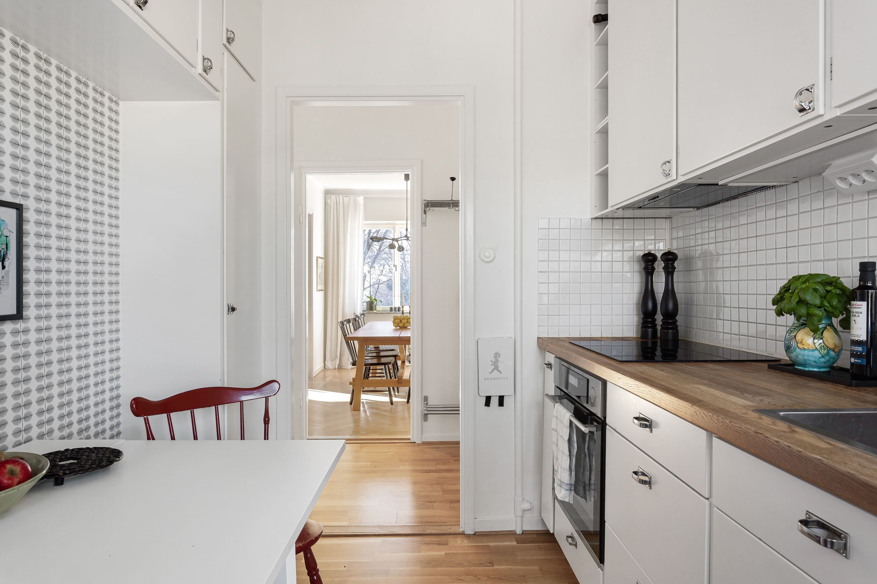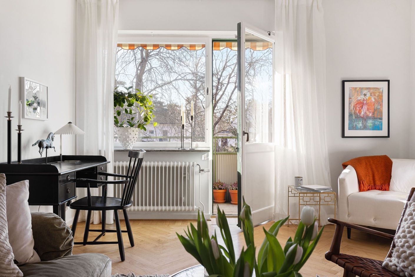 Stilfullt renoverad lägenhet i lugn Äppelviksidyll med fin vy mot grönska från den härliga balkongen. Vackra grannfastigheter från sekelskiftet utgör även de ett fint blickfång och lite "Bullerbykänsla". Unikt drömboende som erbjuder allt man kan önska sig såsom stilrent kök och bevarade originaldetaljer som det vackra parkettgolvet. Högt till tak, vilket ger fin rymd i samtliga rum.