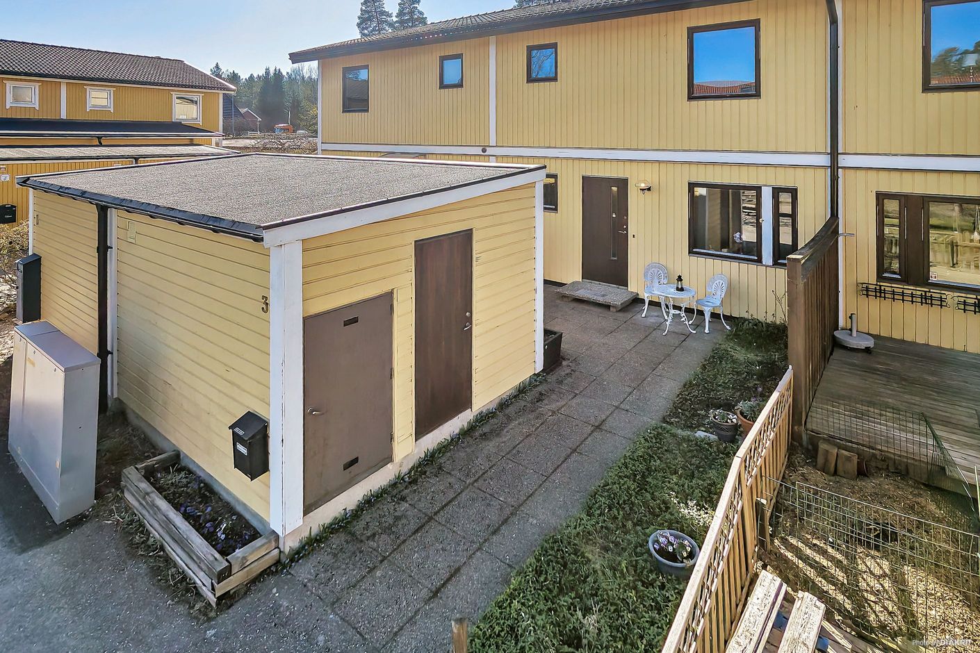 Till huset hör egen garageplats samt tillgång till parkeringsplats, vilket gör vardagen smidig. Den barnvänliga, bilfria, innergården erbjuder lekplats och trygga ytor för barnen att leka på, och i närområdet finns både förskolor och skolor på bekvämt avstånd.