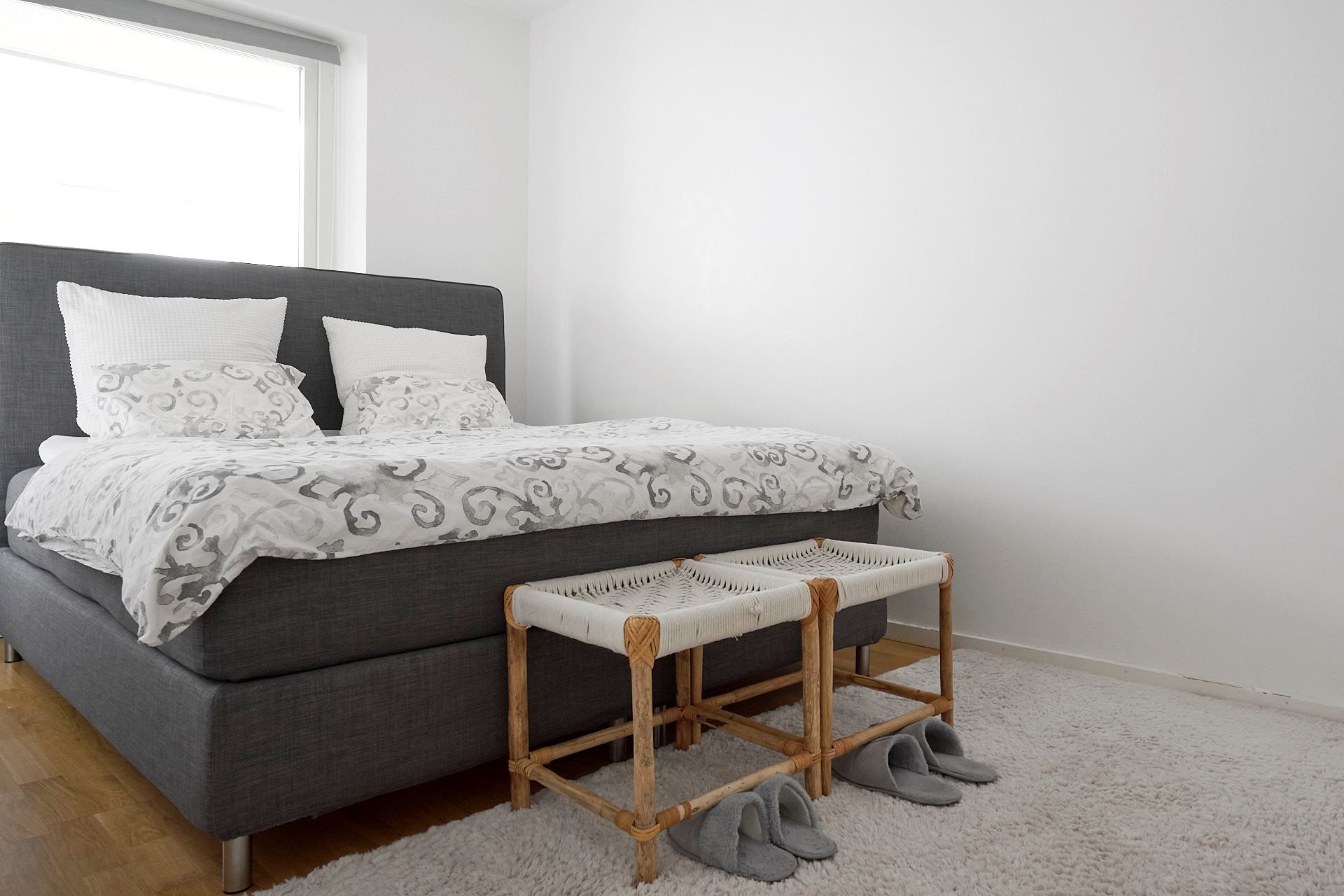 Sovrummet är lugnt beläget och erbjuder utrymme för dubbelsäng samt praktisk förvaring. Det helkaklade badrumet har dusch och egen tvättdel för extra bekvämlighet.