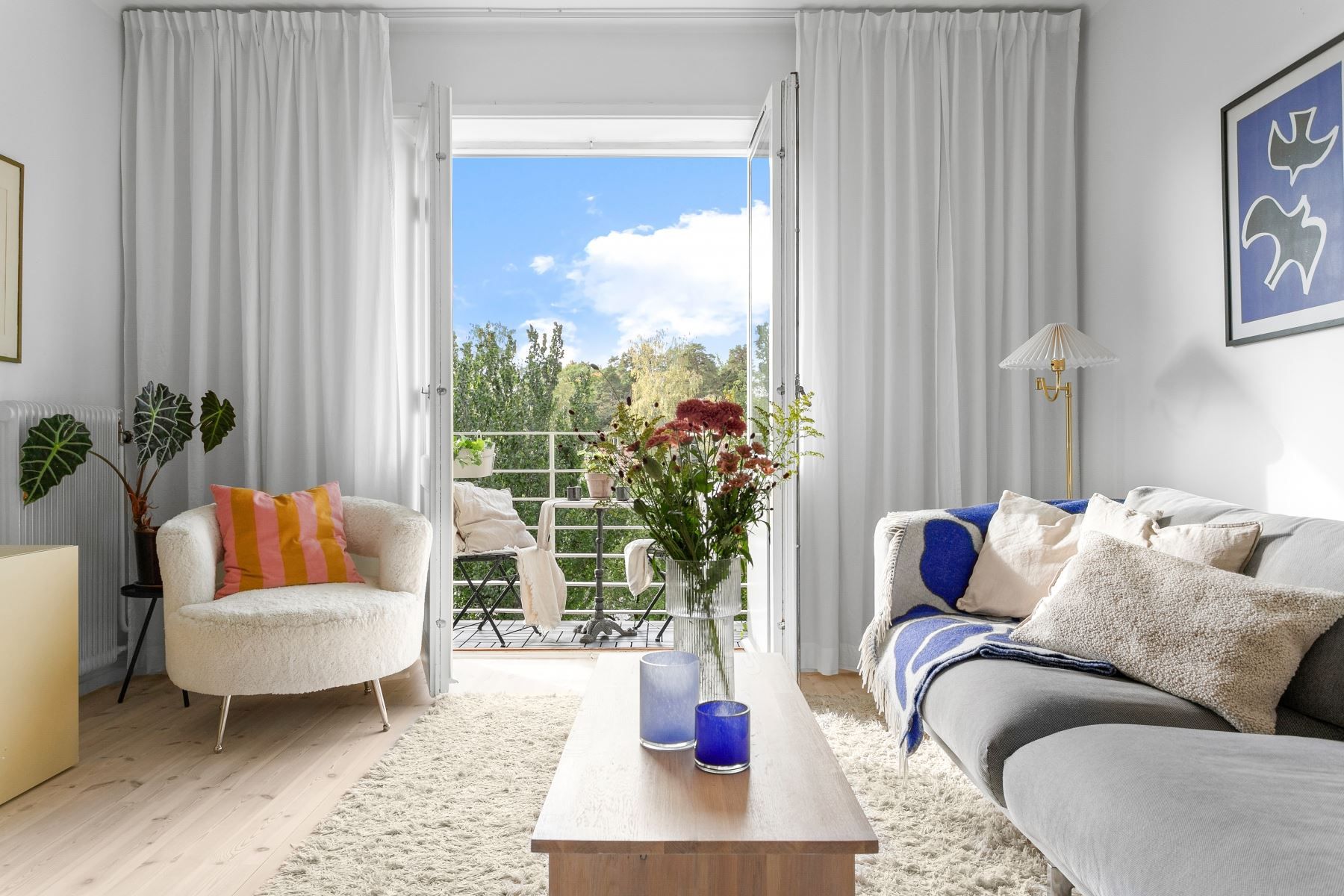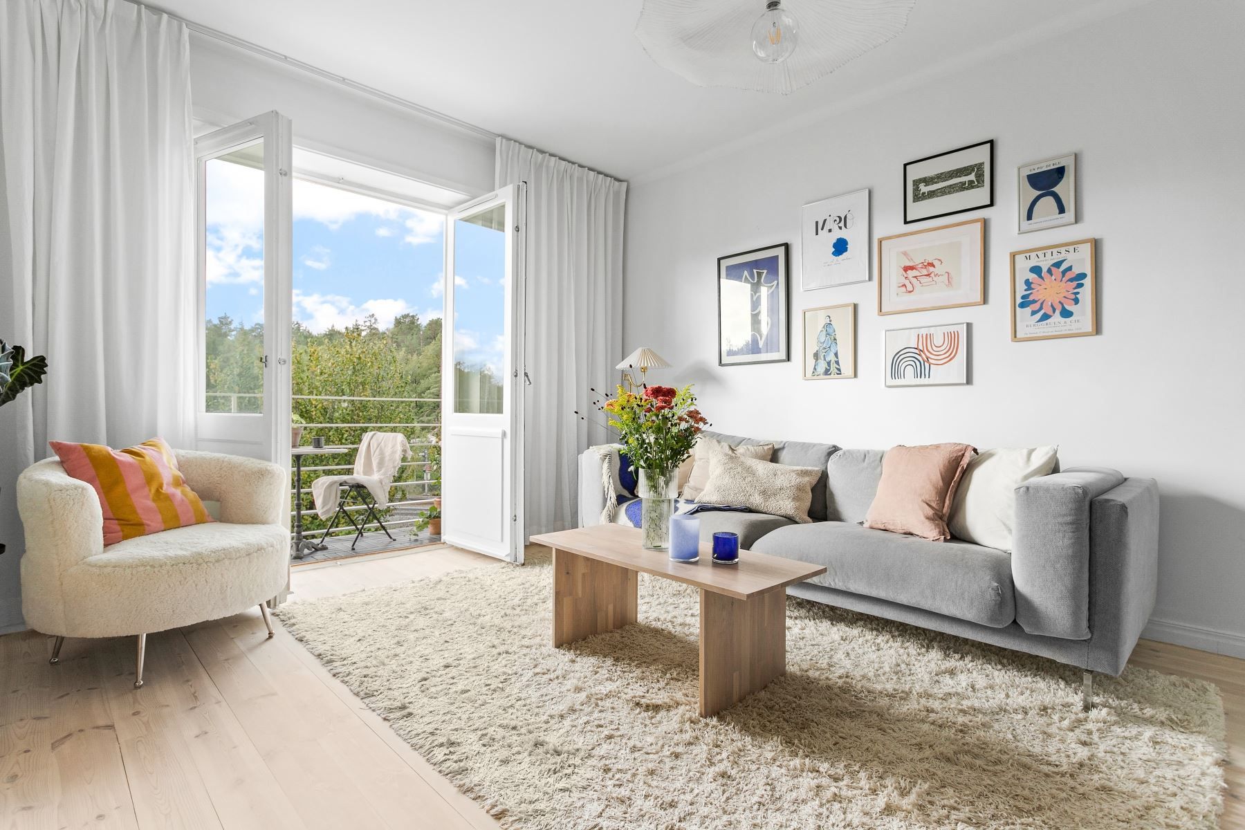 Öppen planlösning - Balkong i söder - Låg avgift & låg belåning(1155 kr/kvm) - Renoverat kök & Badrum - Helt fri från insyn - Brf med väldig låg belåning.