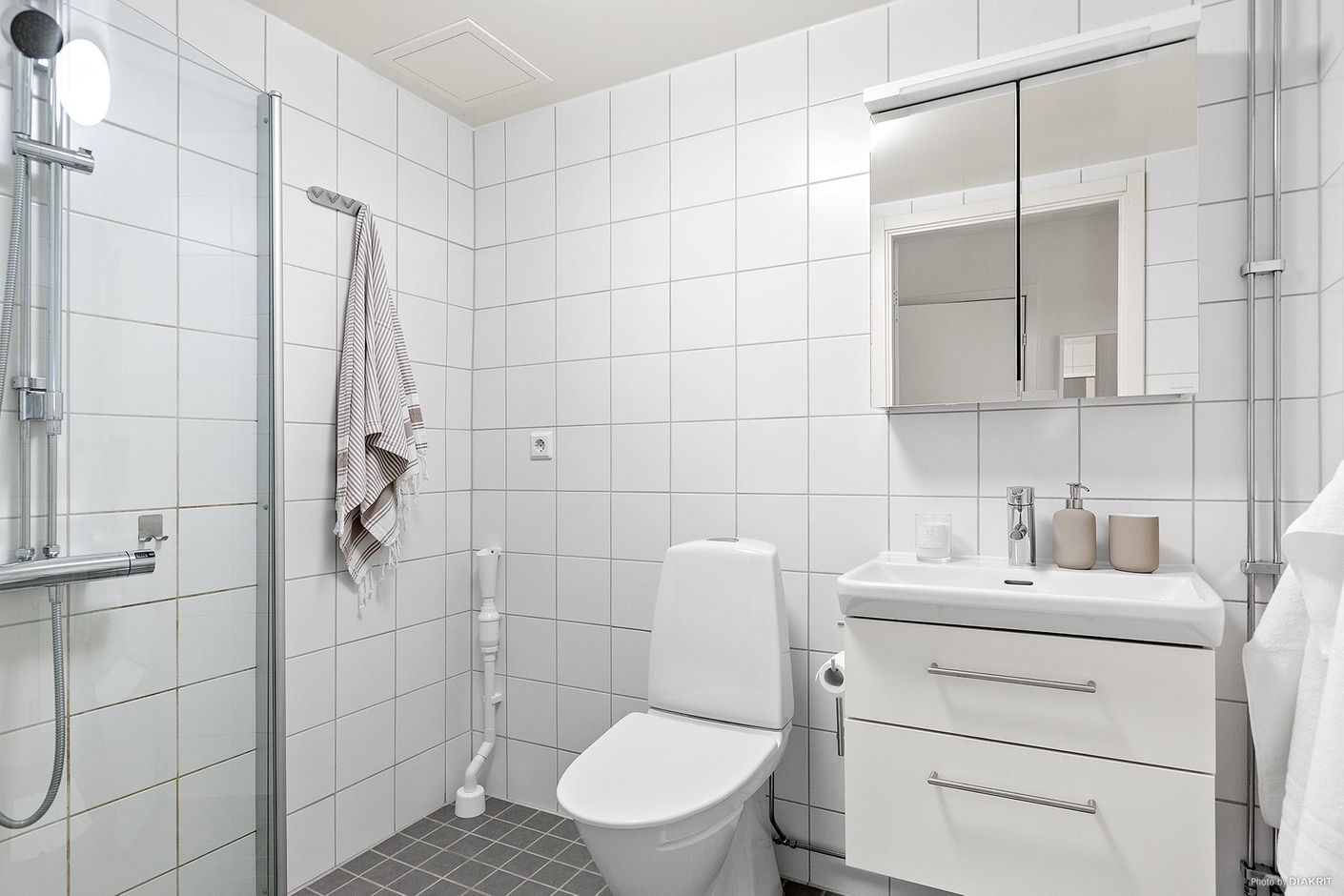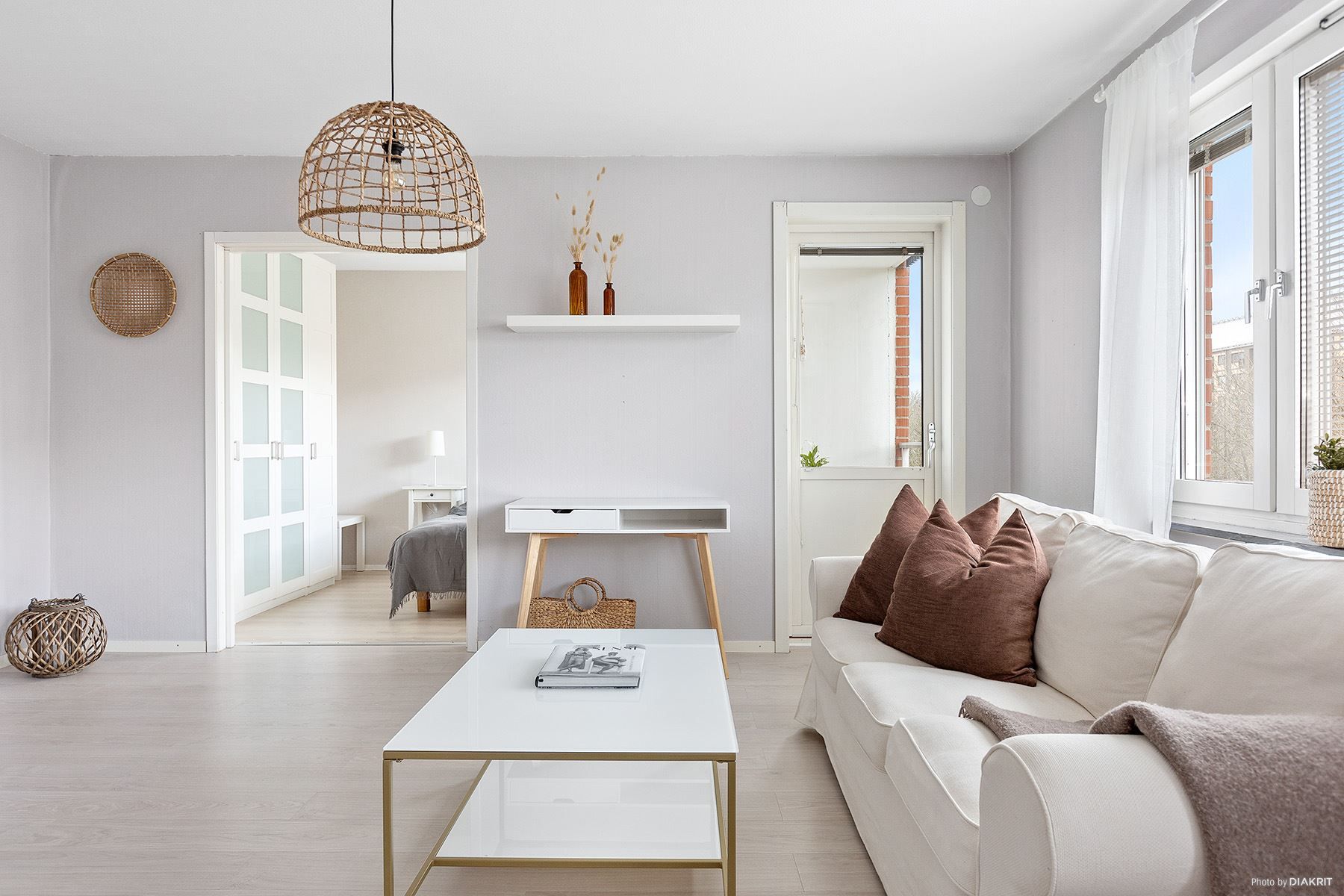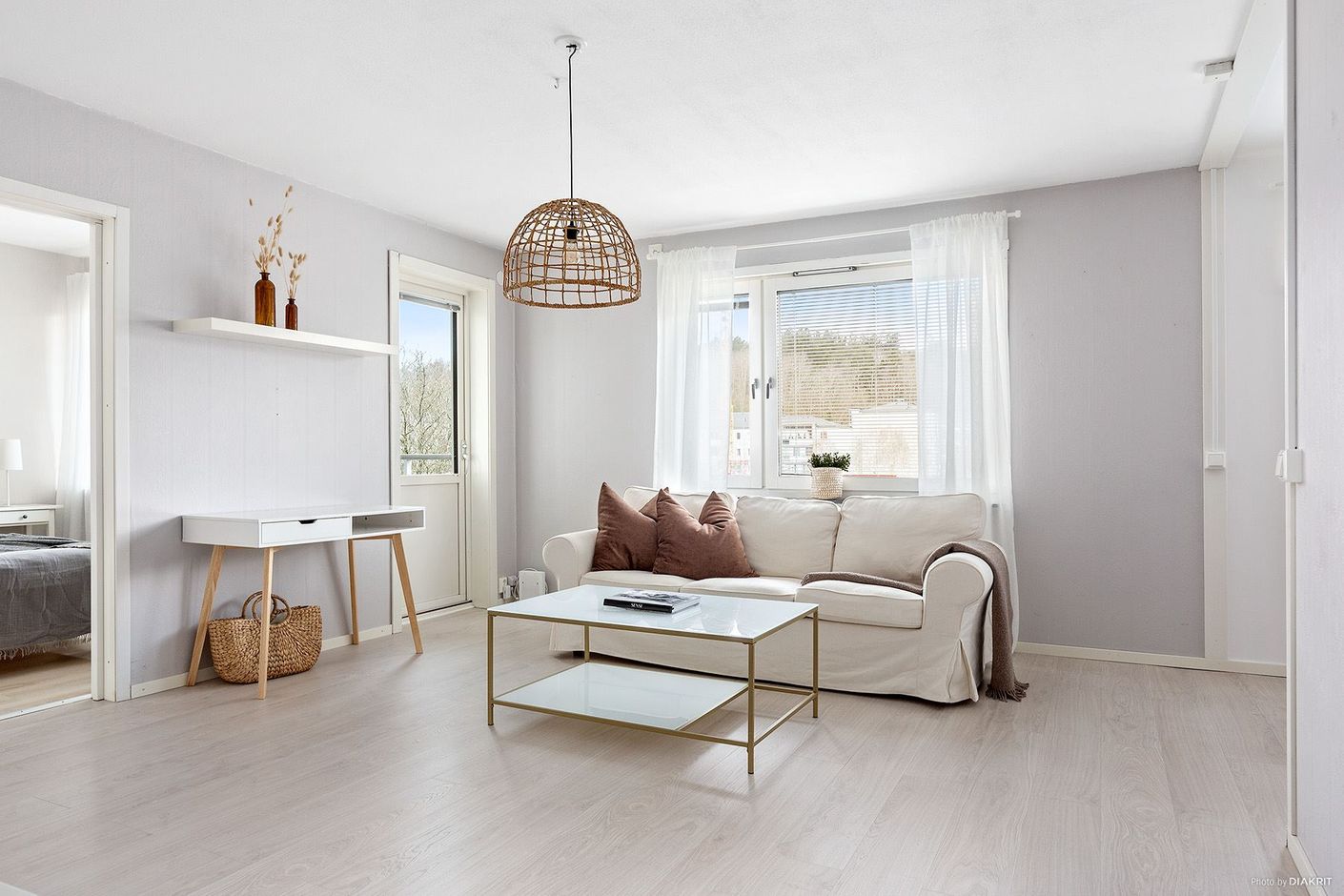När ni kliver in i lägenheten möts ni av en ljus bostad med genomgående stilrena kulörer. Hallen är rymlig och välkomnande med avhängning direkt åt höger. Vidare in i bostaden finner ni köksdelen som erbjuder gott om förvaringsutrymme i luckor och skåp och en naturlig plats för matbord, här finns även en praktisk diskmaskin integrerad. I anslutning till köket ligger vardagsrummet som har generösa ytor för möblemang och en utgång till balkongen vilket ger en härlig sammanhängande känsla. Sovrummet är tillräckligt stort för en bekväm dubbelsäng och i anslutning till hallen finns en praktisk klädkammare för förvaring.