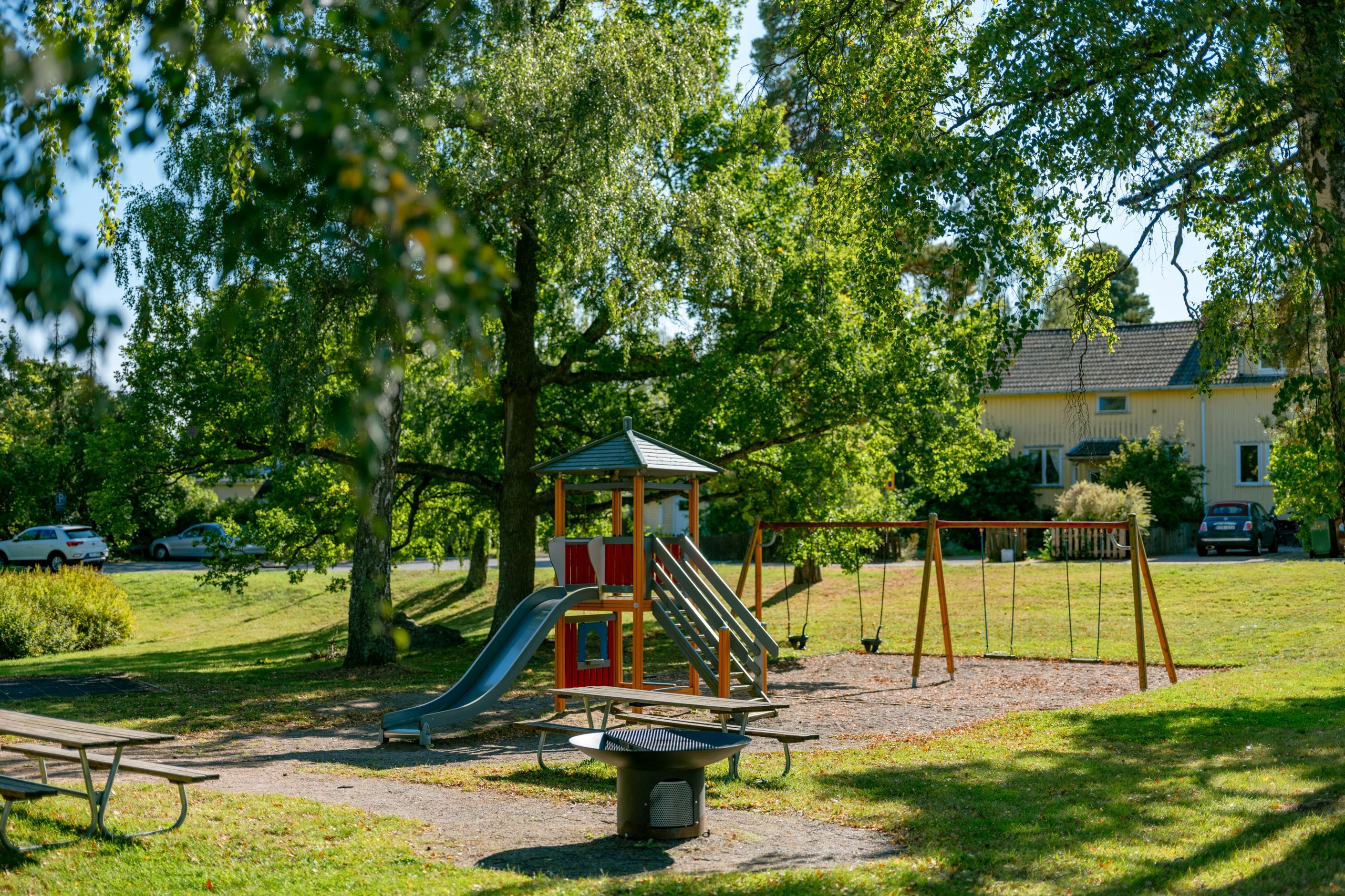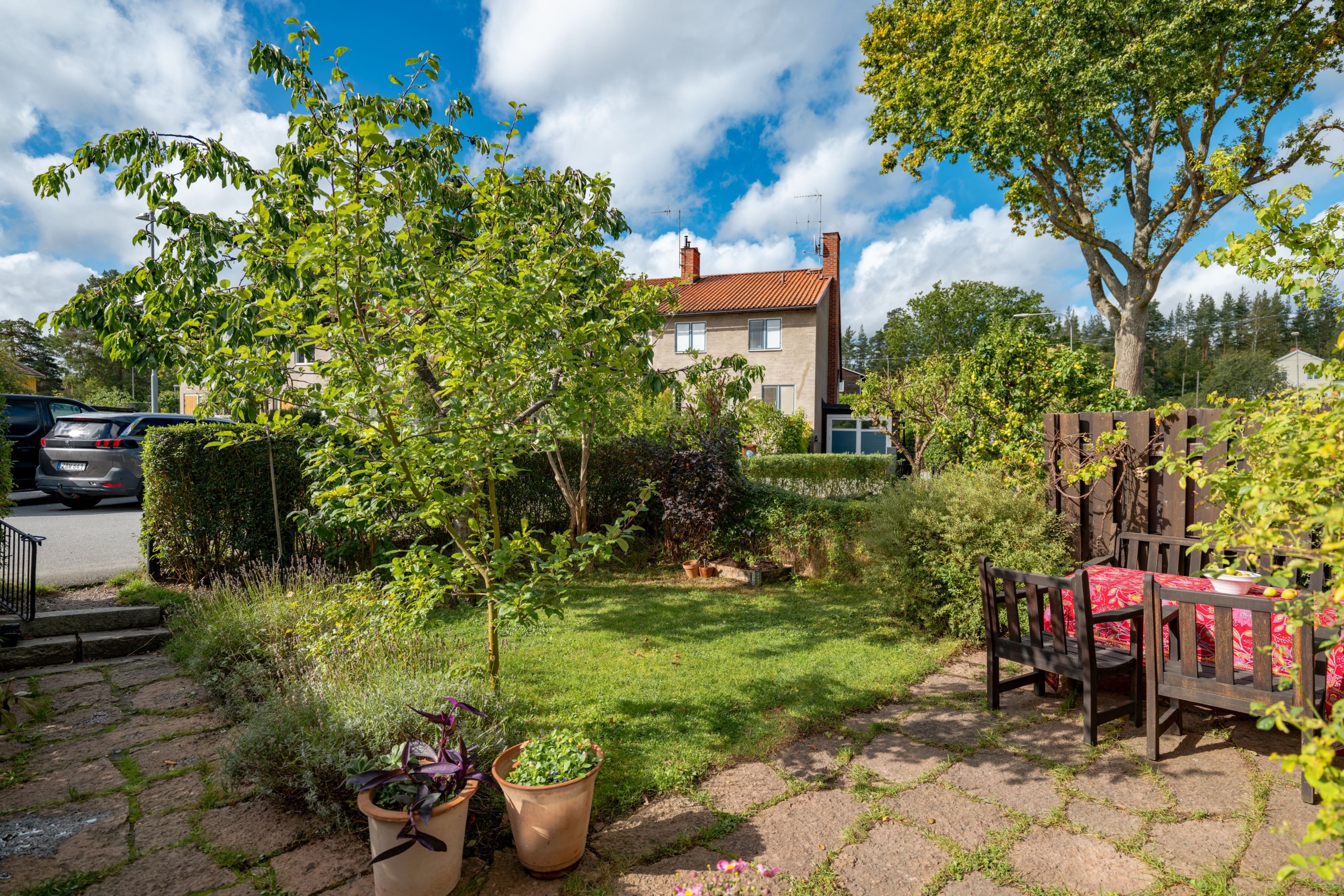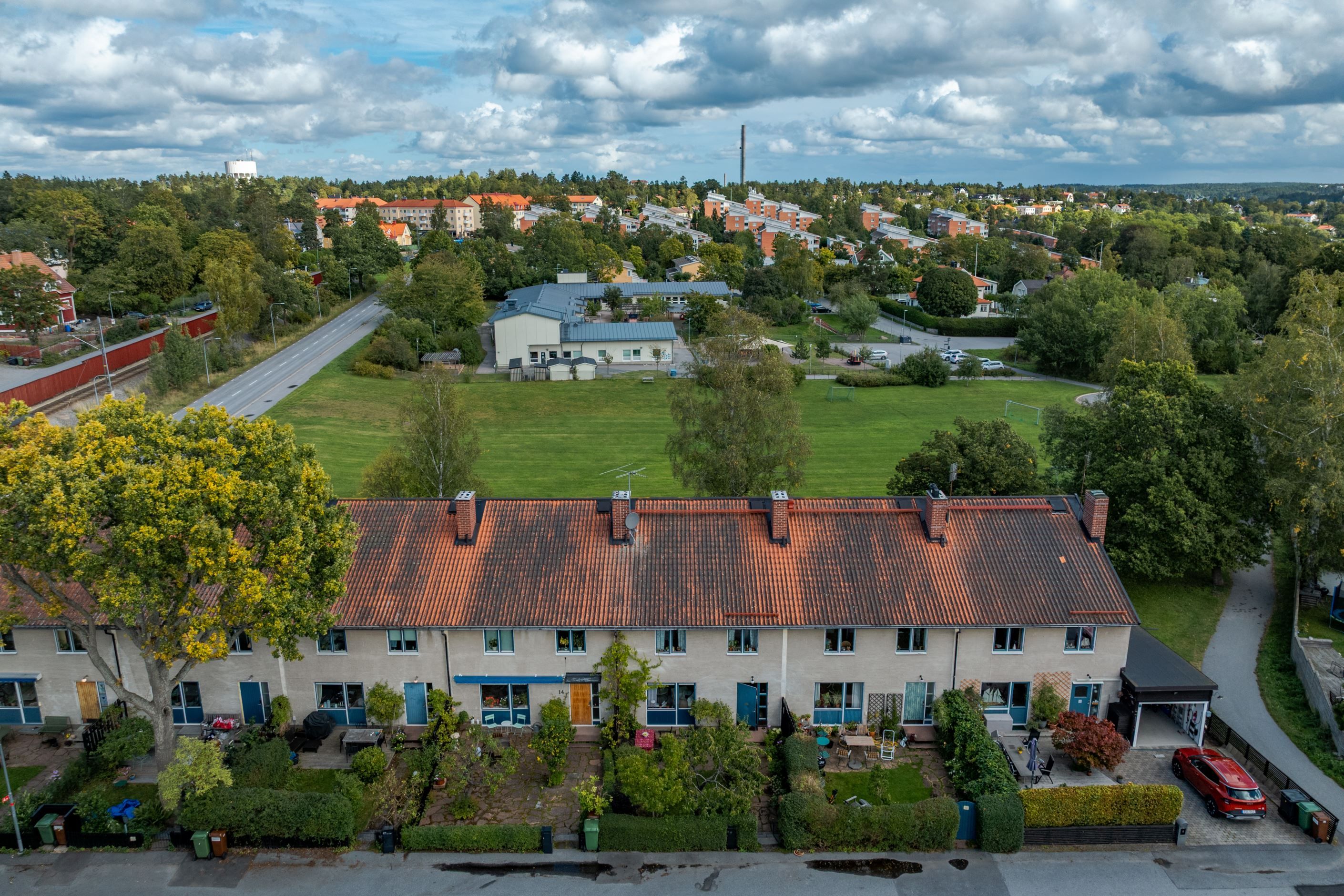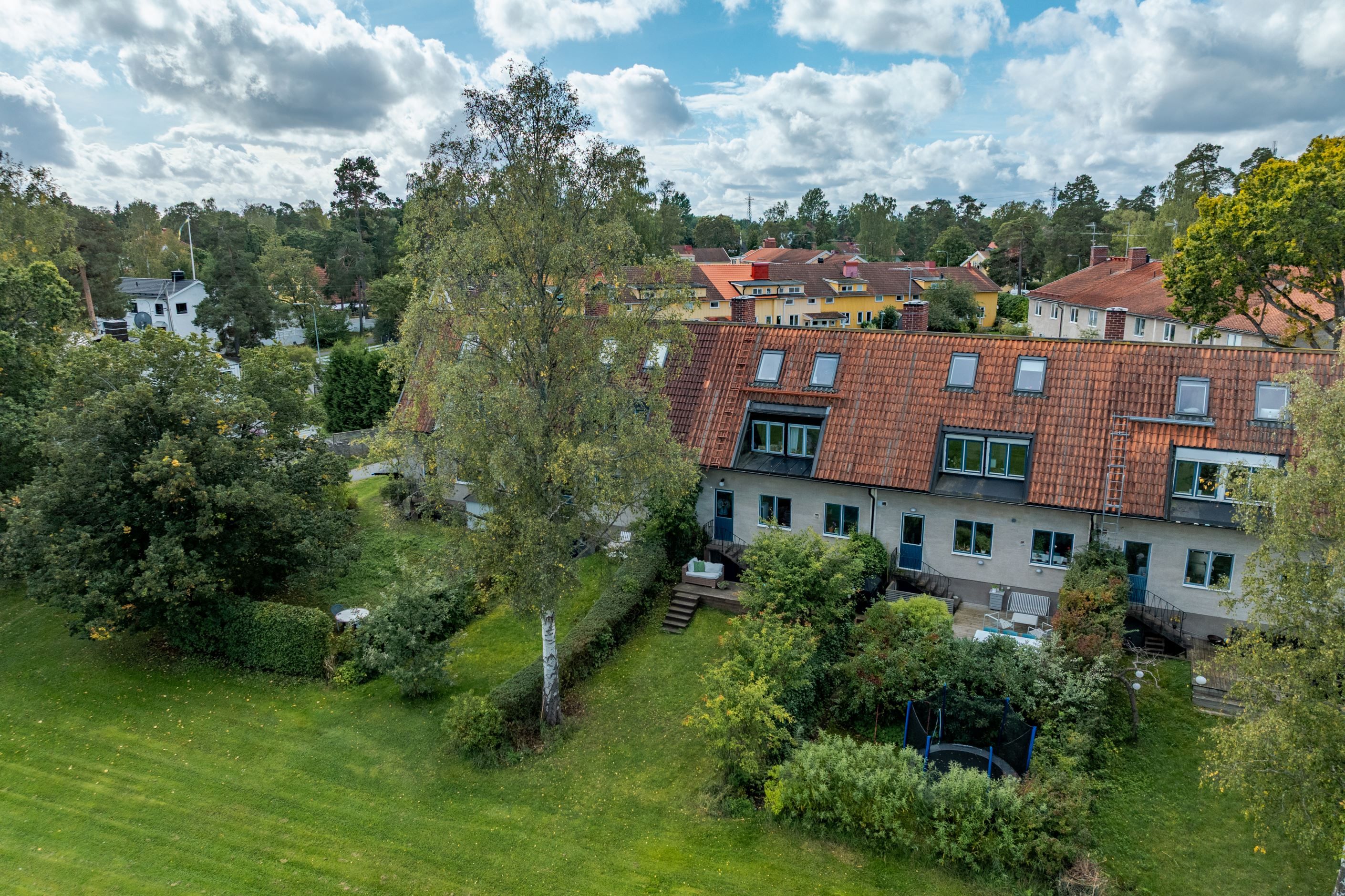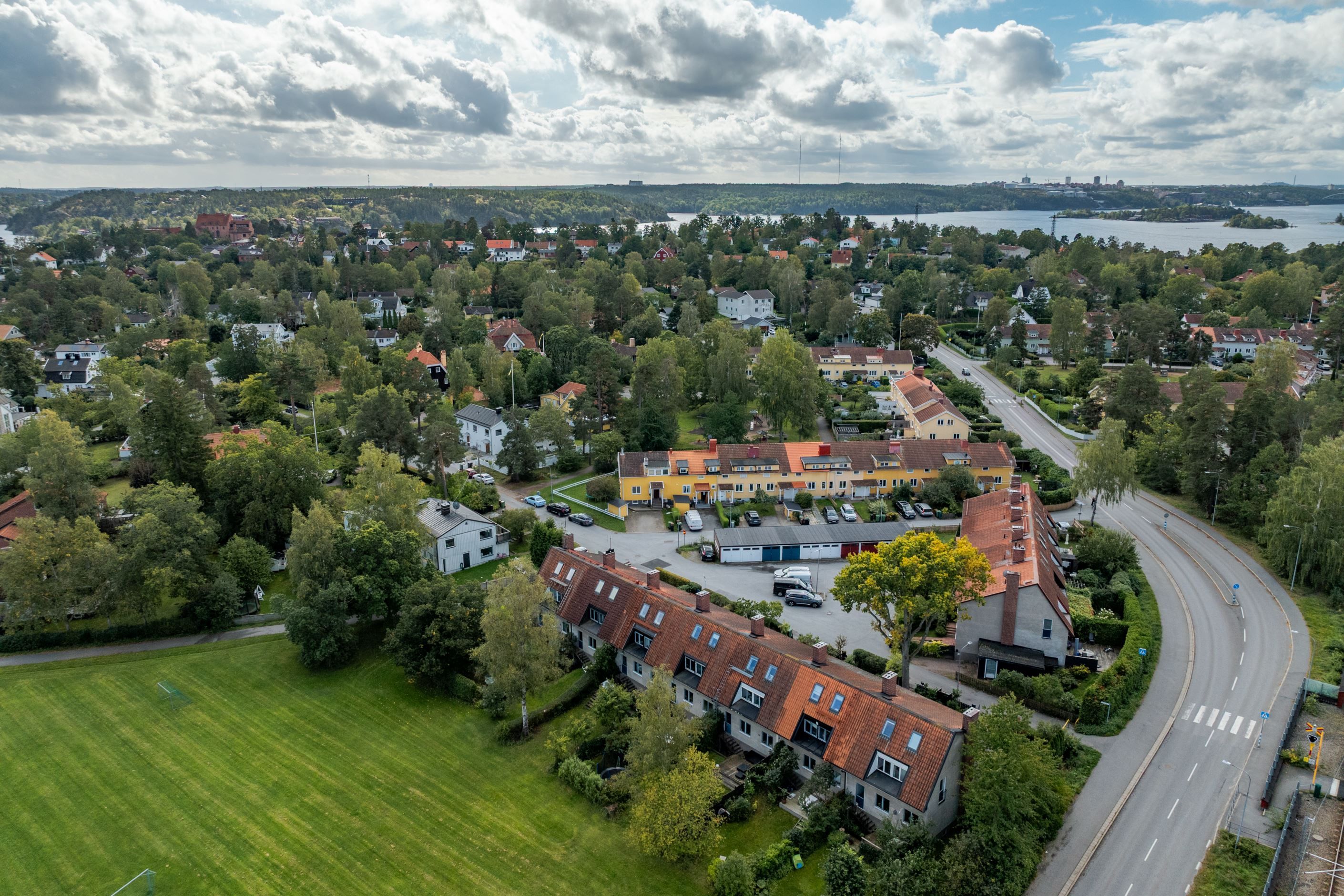 Den charmiga radhuslängan ligger i det riktigt rofyllda området Brevik, en lummig och uppvuxen idyll på östra delen av södra Lidingön. Breviks Båtsällskap ligger 700 meter bort, här är det nära till vatten, bad och vackra promenadstråk längs strandpromenader och utsiktsplatser. Här finns också gott om lekplatser, fotbollsplaner och tennisbanor. I direkt närhet finns också ett mindre centrum med mataffär, café, bageri och restaurang. Från huset är det gångavstånd till fantastiska Kottlasjön med mysiga vattenverket och härliga Breviksbadet intill. På Lidingöns västra sida ligger Millesgården med en gedigen utställningsverksamhet, och ön huserar också Nyckelviksskolan som har årliga konstutställningar. Området har bra kommunikationer med Lidingöbanan ett par minuter bort, och därmed snabb förbindelse med tunnelbana i Ropsten. Härifrån tar du dig enkelt vidare kollektivt också med många bussförbindelser mot stan.