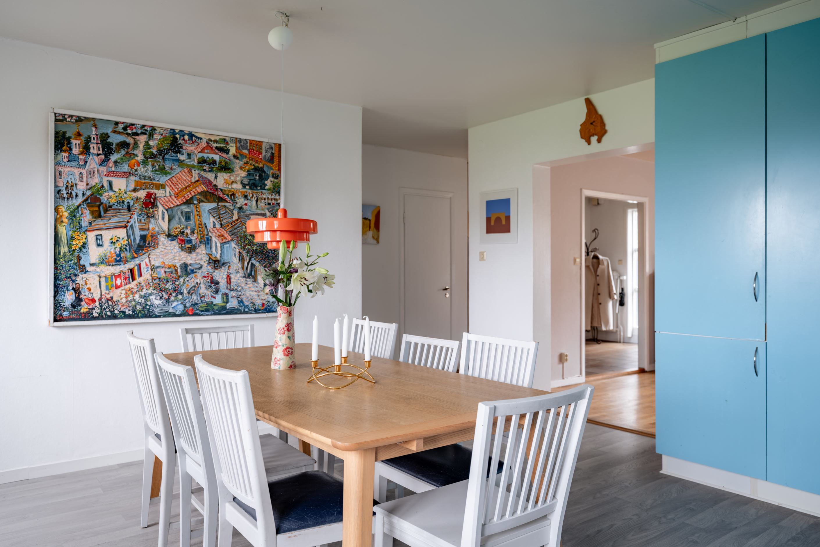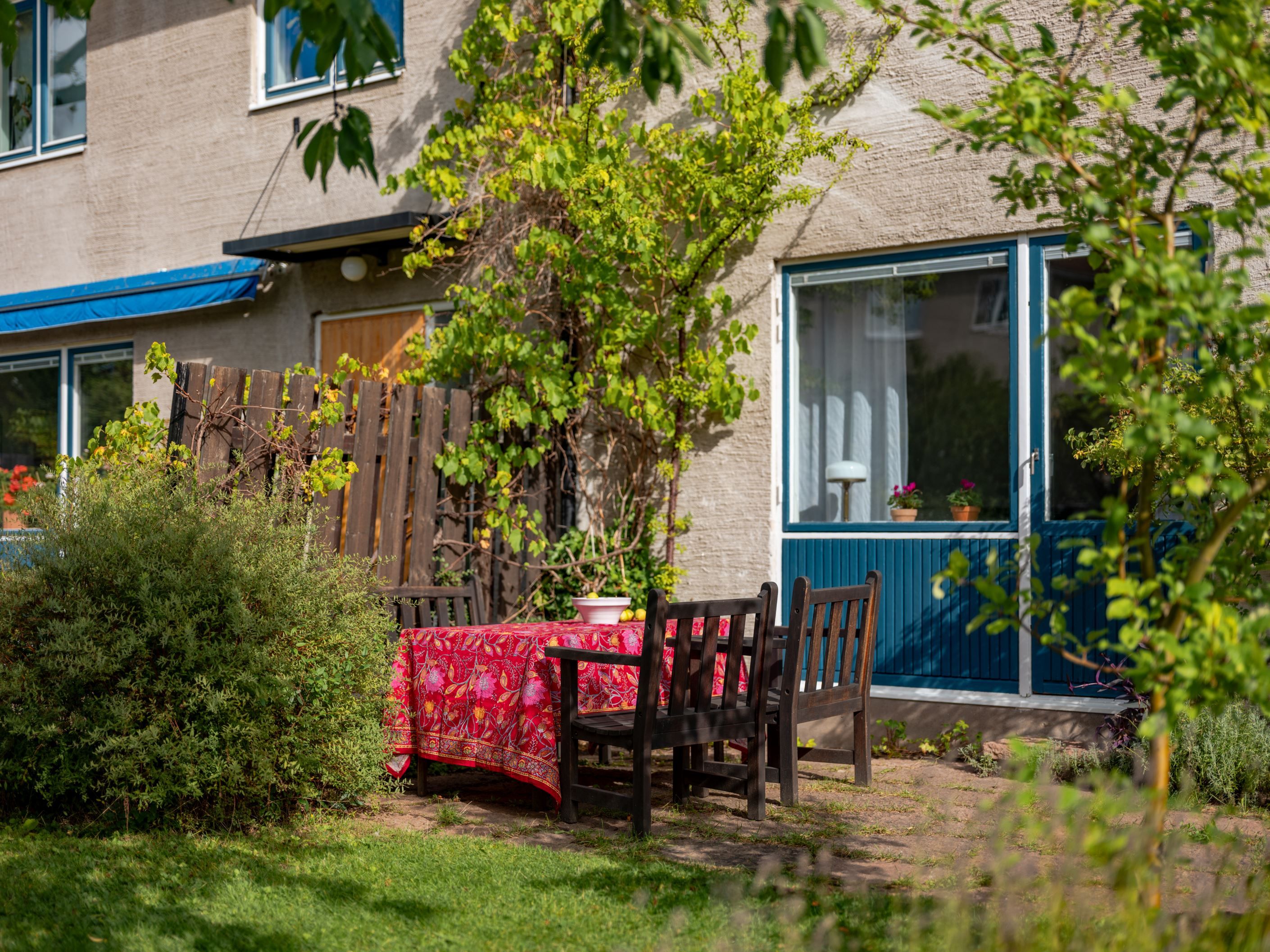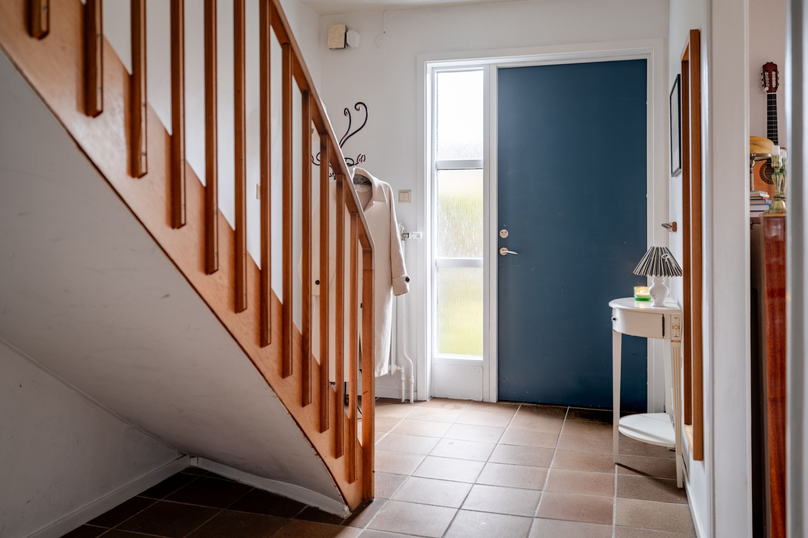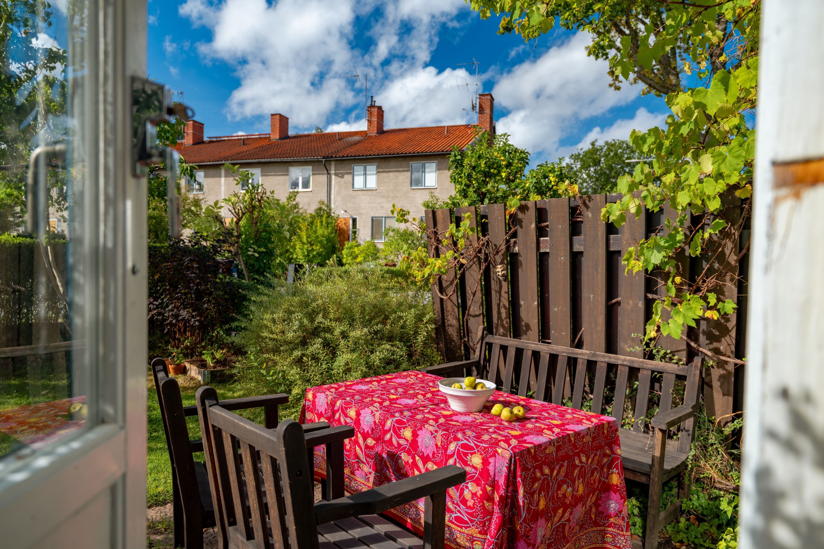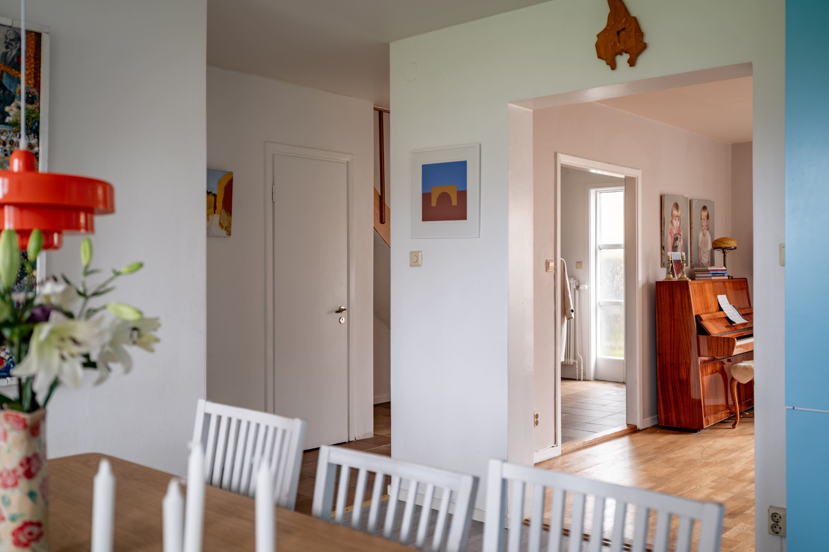 Interiört finner vi trivsamma bostäder med stora sällskapsytor och detaljer som öppen spis, parkett och en funktionell trappa mellan våningsplanen.