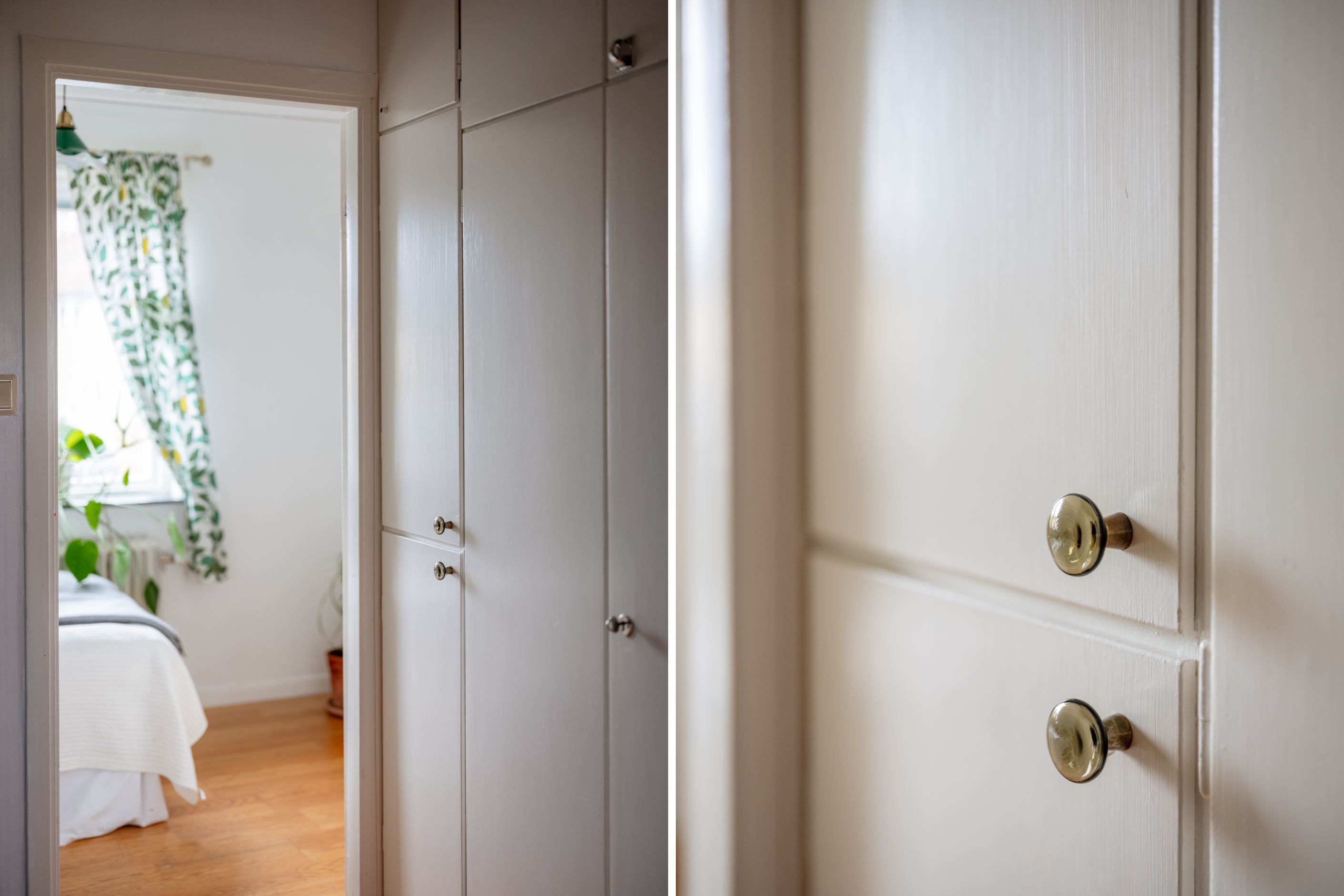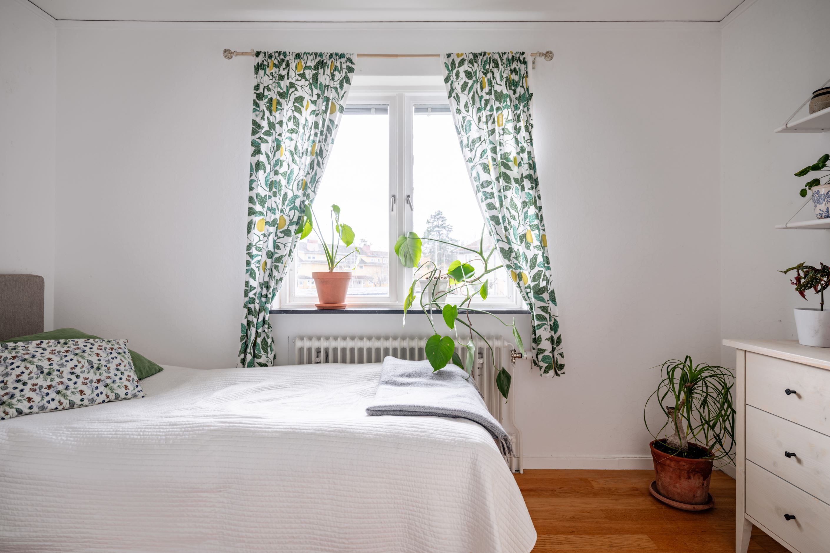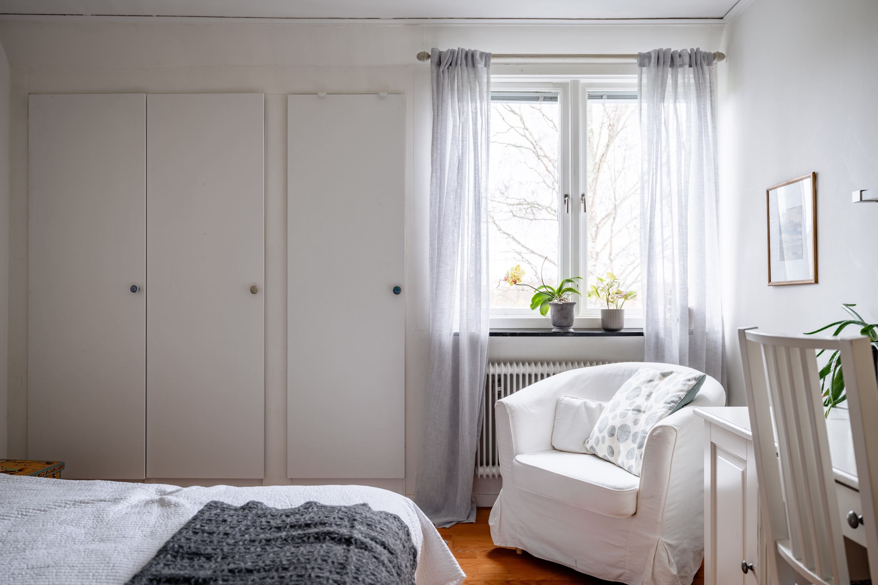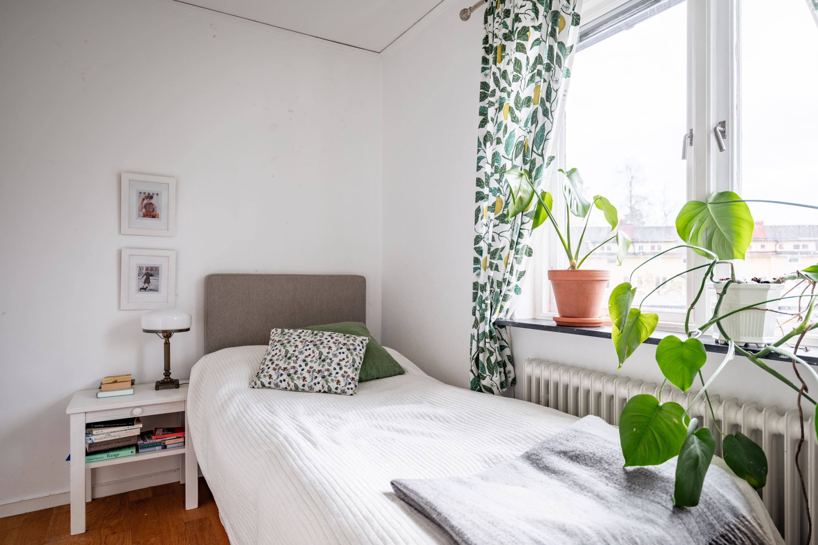 En trappa upp inreddes fyra sovrum samt ett förhållandevis rymligt badrum med badkar. I många av radhusen intill har man öppnat upp planlösningen även på övervåningen men på Sälgstigen 12 finns de fyra sovrummen kvar med gott om inbyggda skåp och garderober. Det finns ytterligare inbyggda skåp och garderober liksom ett vindsutrymme högst upp.