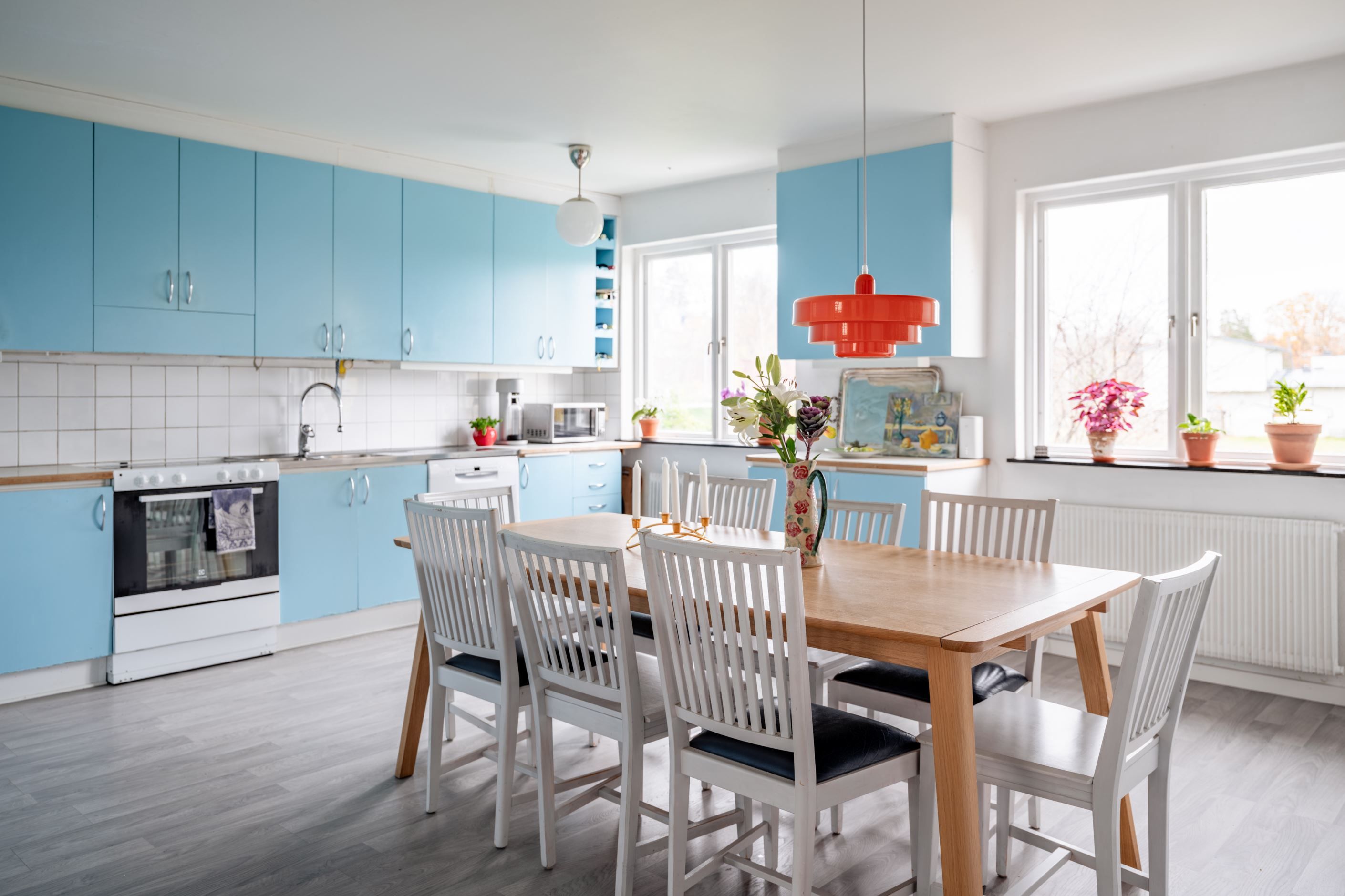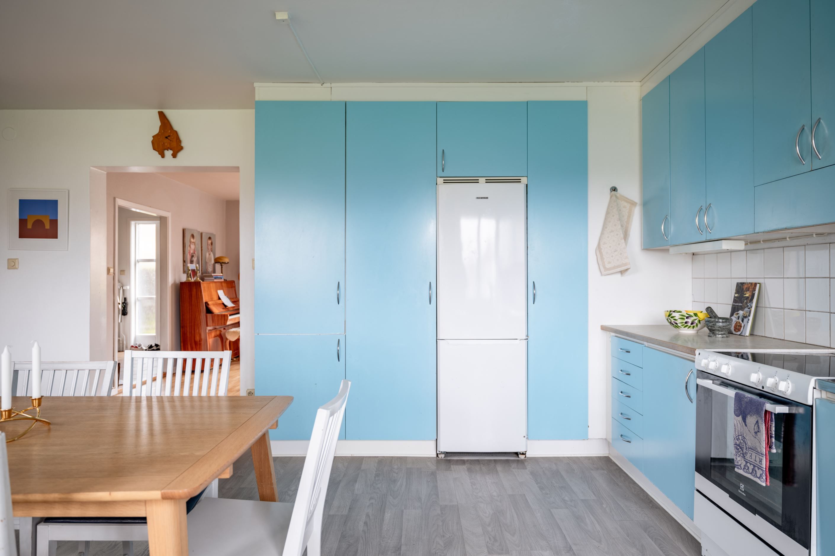 Köken disponerades som rena arbetskök med stora arbetsytor och både skafferi och kylskåp samt en mängd förvaringsskåp. Idag har många kök slagits samman med det intilliggande allrummet för att få en öppnare planlösning - och så även på Sälgstigen 12.