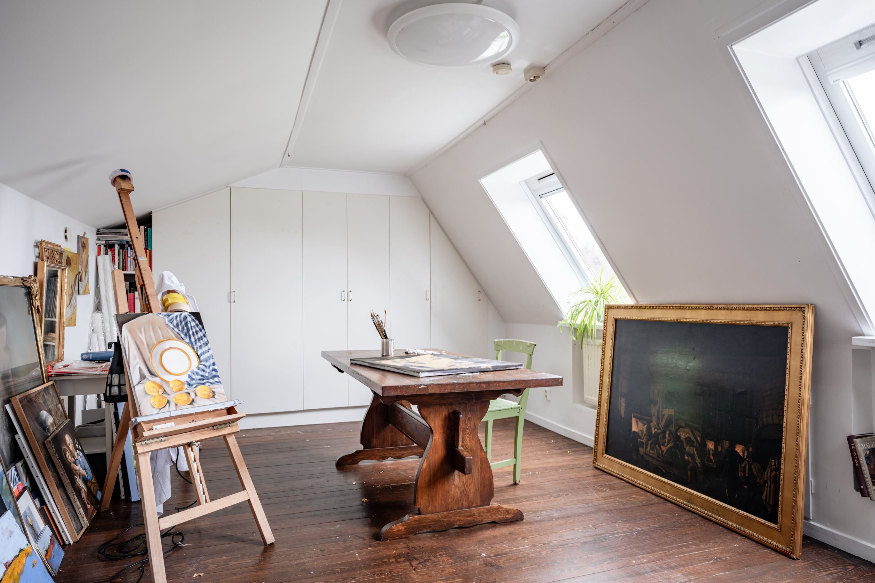 På vindsplanet finns idag en ateljé som även går att använda som allrum/sovrum.