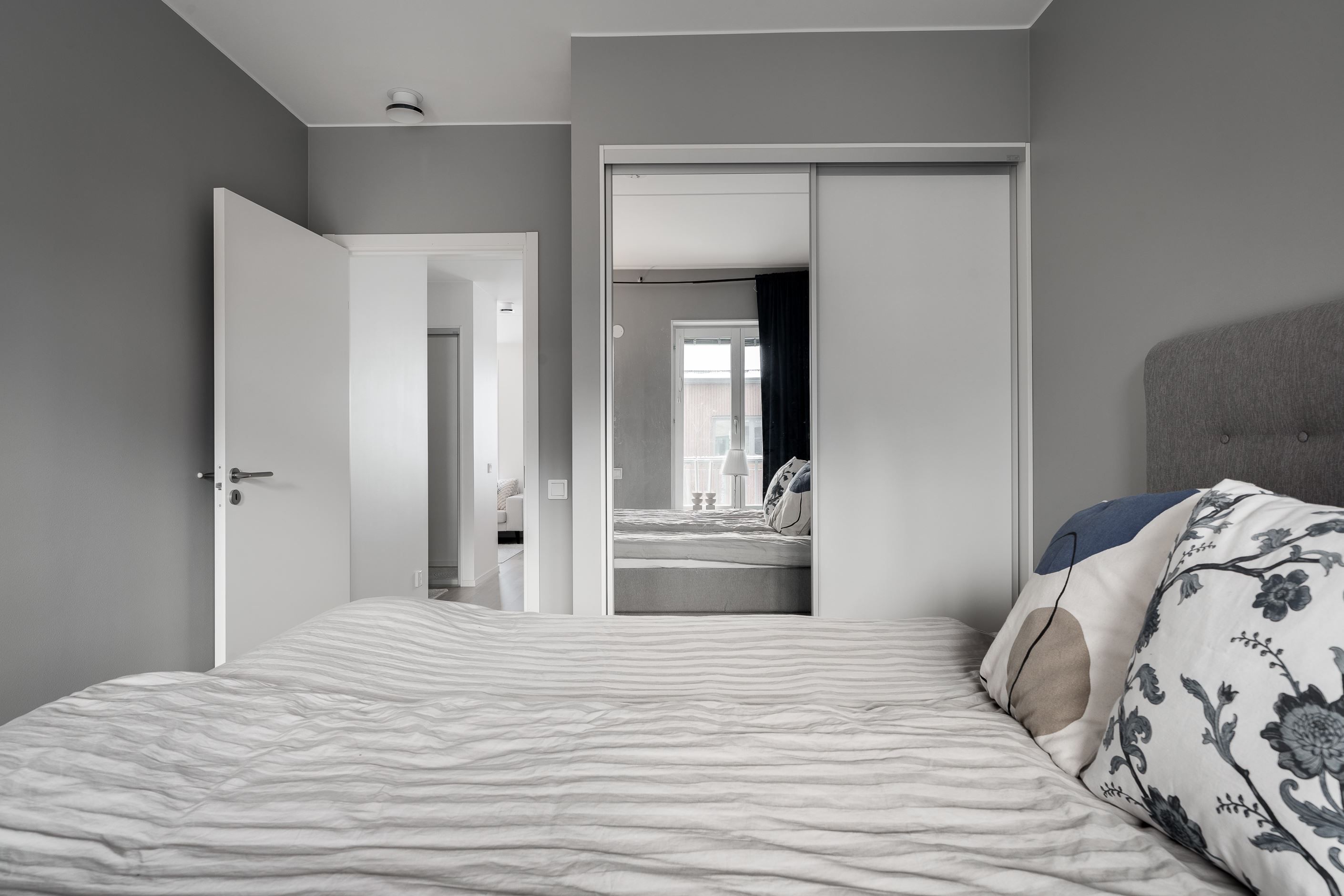 Det rymliga sovrummet erbjuder plats för dubbelsäng och kompletteras av garderobslösning som ger god förvaring. Från sovrummet nås även bostadens balkong, en härlig förlängning av hemmet där du kan njuta av lugna stunder utomhus.