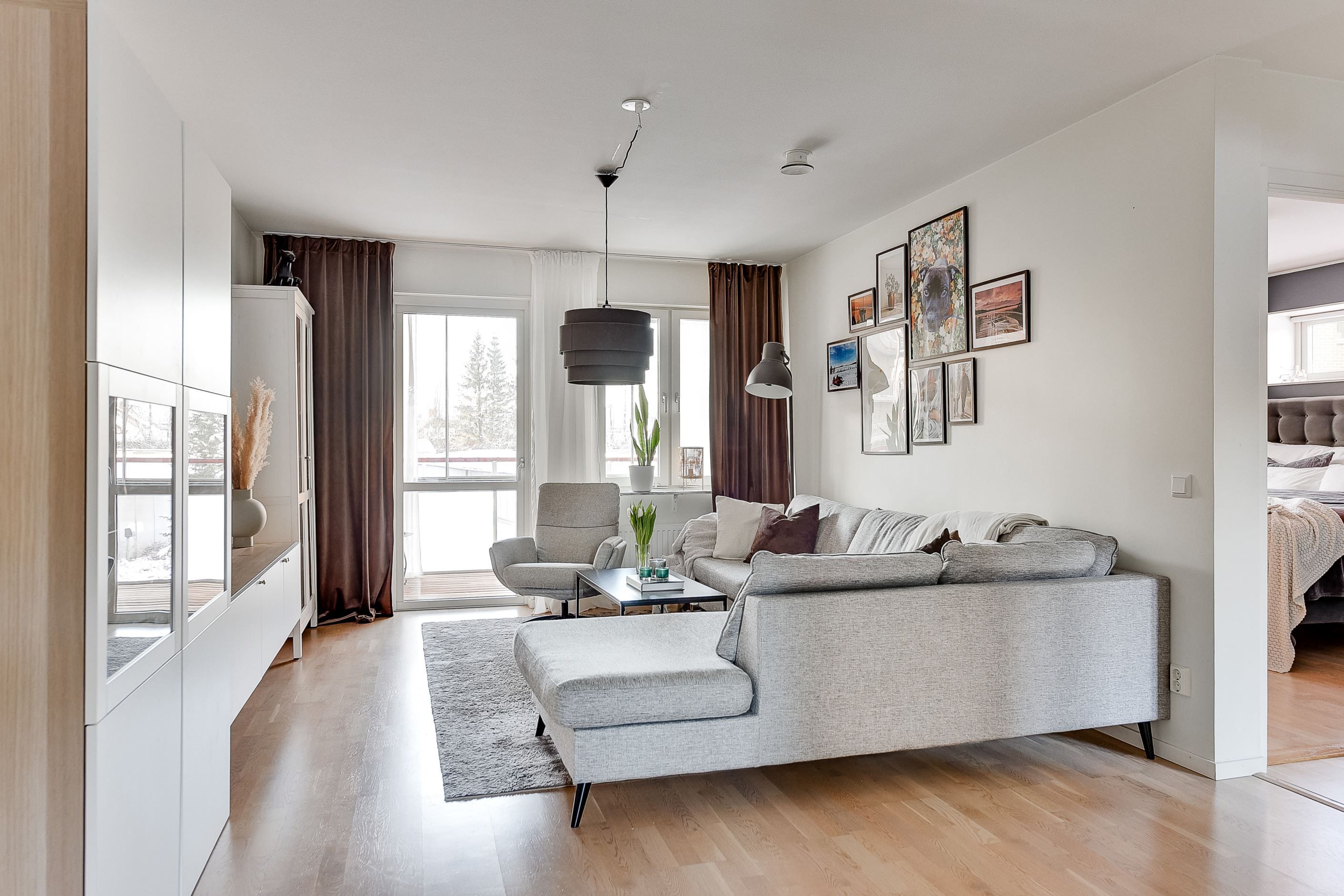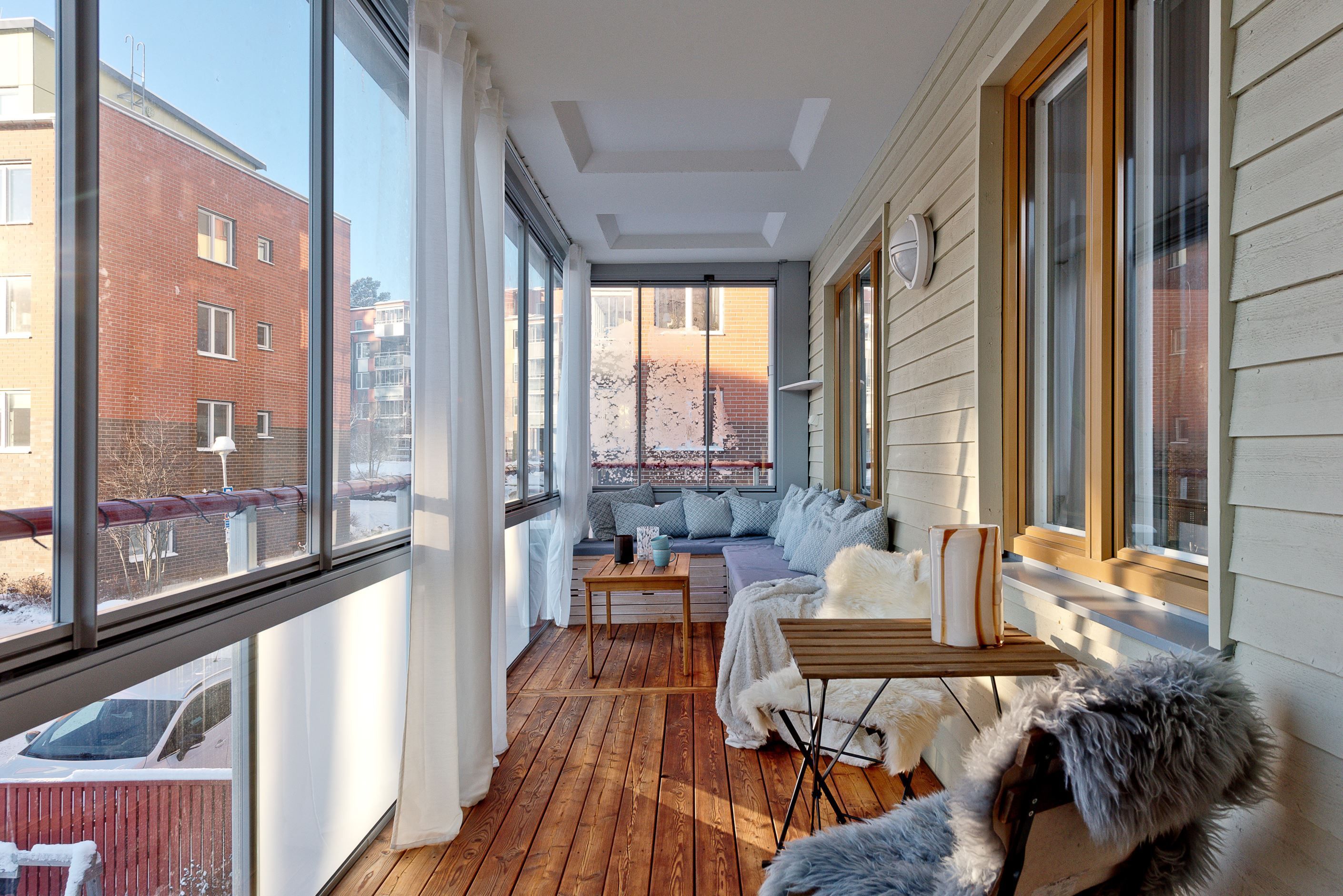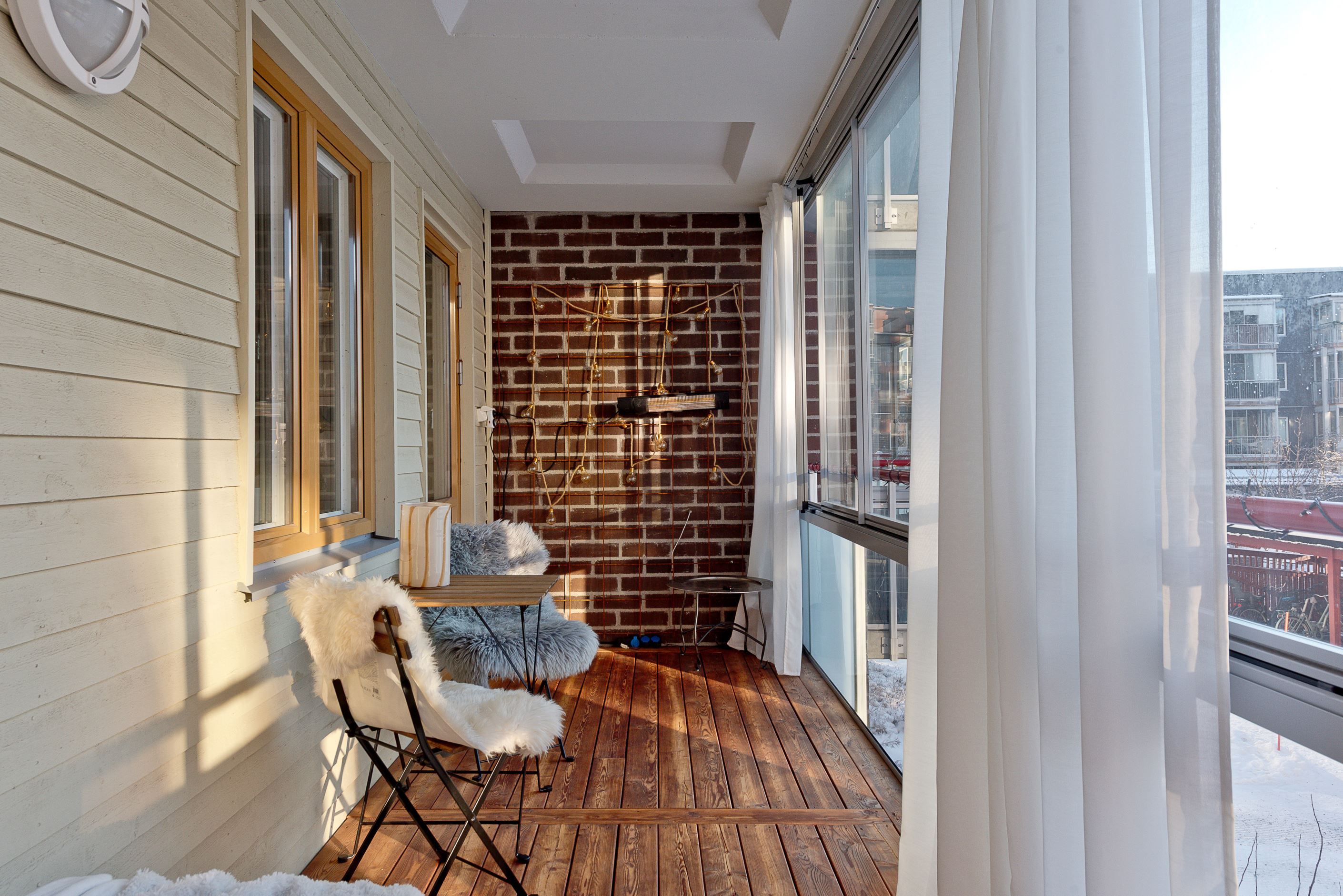 Bostaden upplevs som ljus och trevlig tack vare planlösningen samt de stora fönsterpartierna som släpper in generöst med ljus från två väderstreck. Lägenheten har en genomtänkt och väldisponerad planlösning med ett stilfullt kök och ett rymligt vardagsrum. Här finns också två sovrum, förvaringsmöjligheter i hall och separat klädkammare samt ett helkaklat duschrum med både tvättmaskin och torktumlare. Pricken över i:et är den rymliga inglasade balkongen, belägen i bästa solläge, som utgör ett extra rum och förlänger vår och höst!