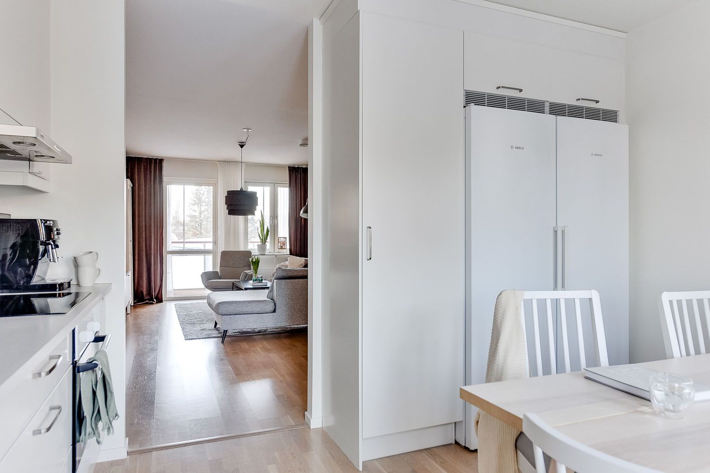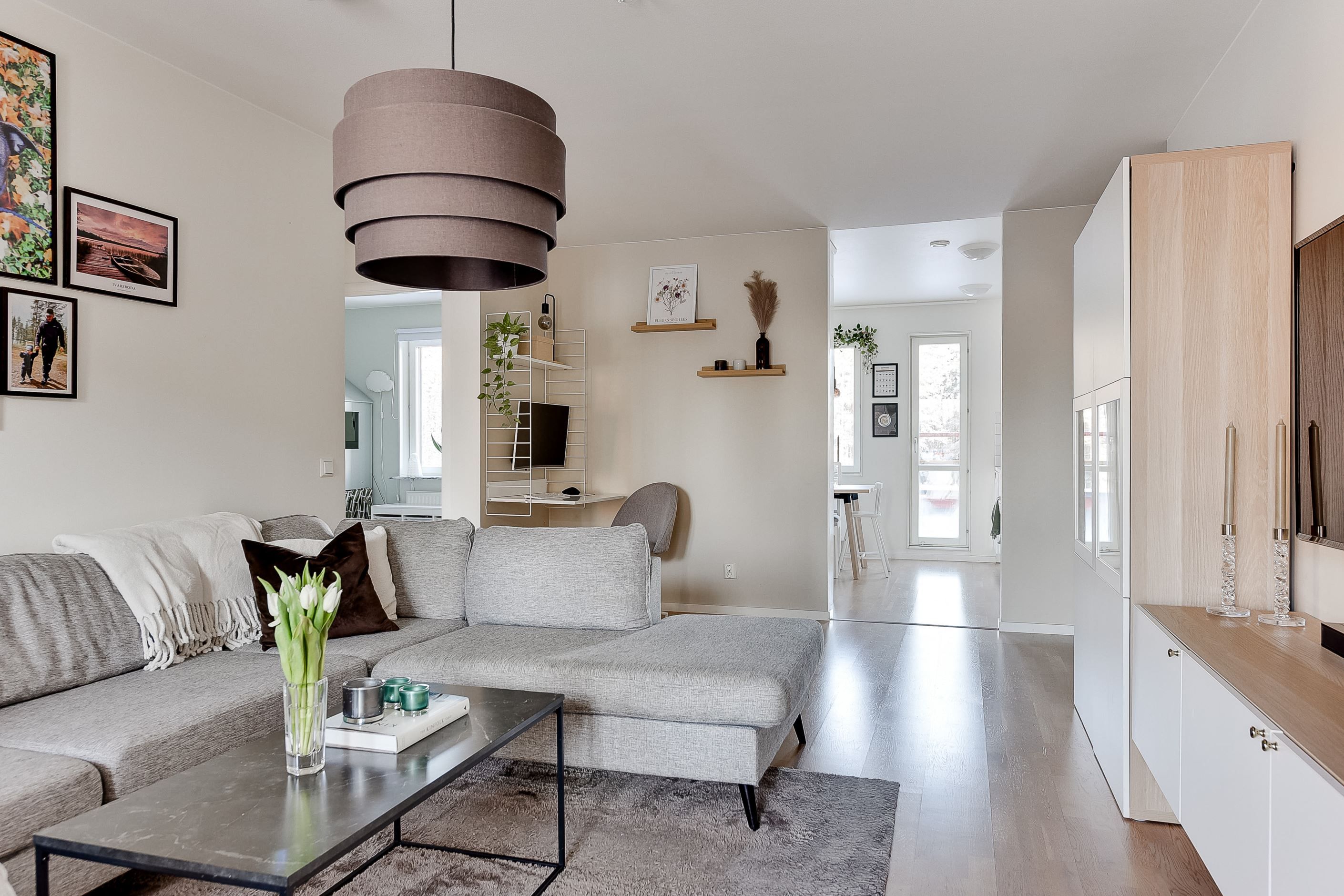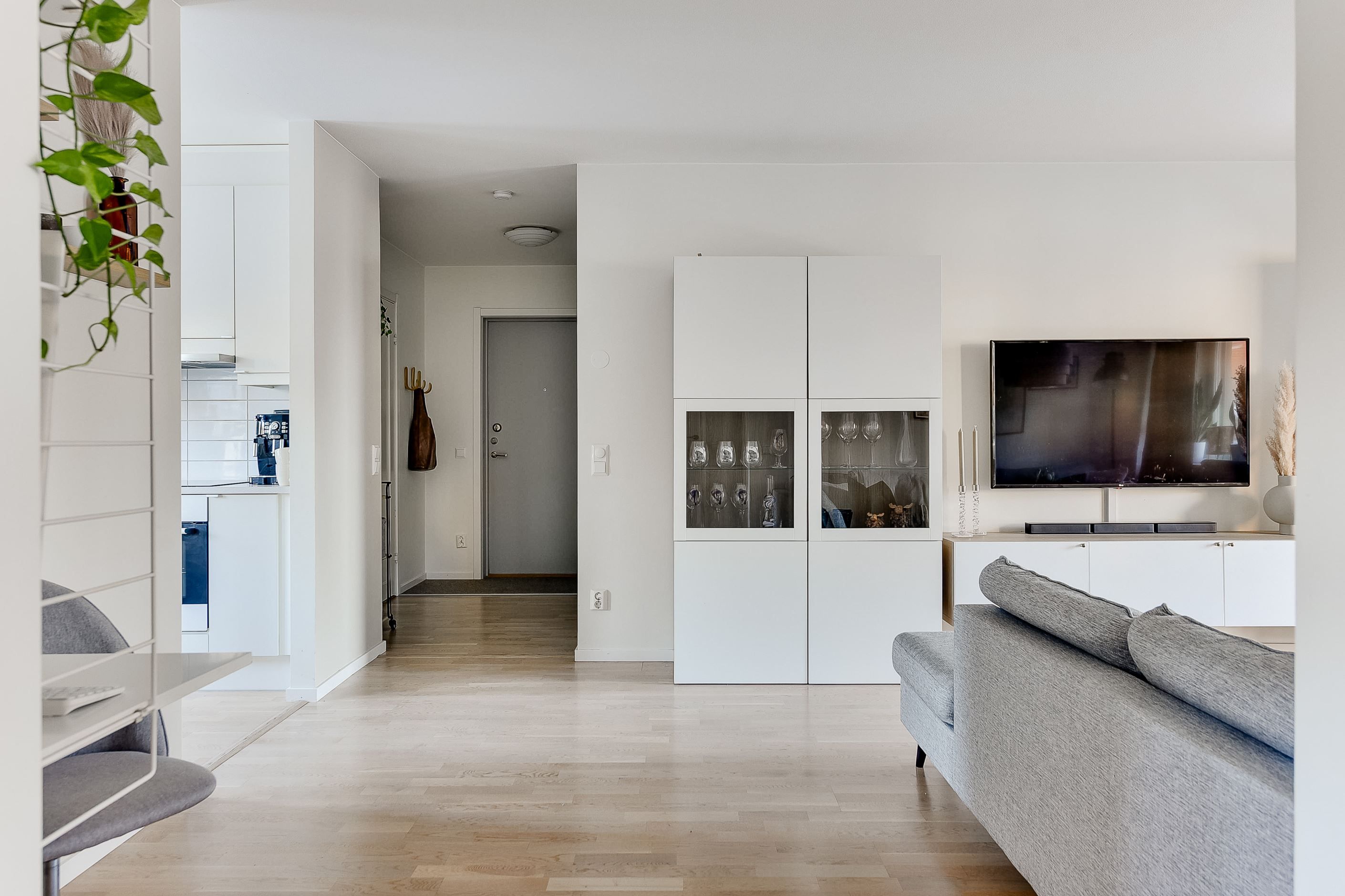 Bostaden upplevs som ljus och trevlig tack vare planlösningen samt de stora fönsterpartierna som släpper in generöst med ljus från två väderstreck. Lägenheten har en genomtänkt och väldisponerad planlösning med ett stilfullt kök och ett rymligt vardagsrum. Här finns också två sovrum, förvaringsmöjligheter i hall och separat klädkammare samt ett helkaklat duschrum med både tvättmaskin och torktumlare. Pricken över i:et är den rymliga inglasade balkongen, belägen i bästa solläge, som utgör ett extra rum och förlänger vår och höst!