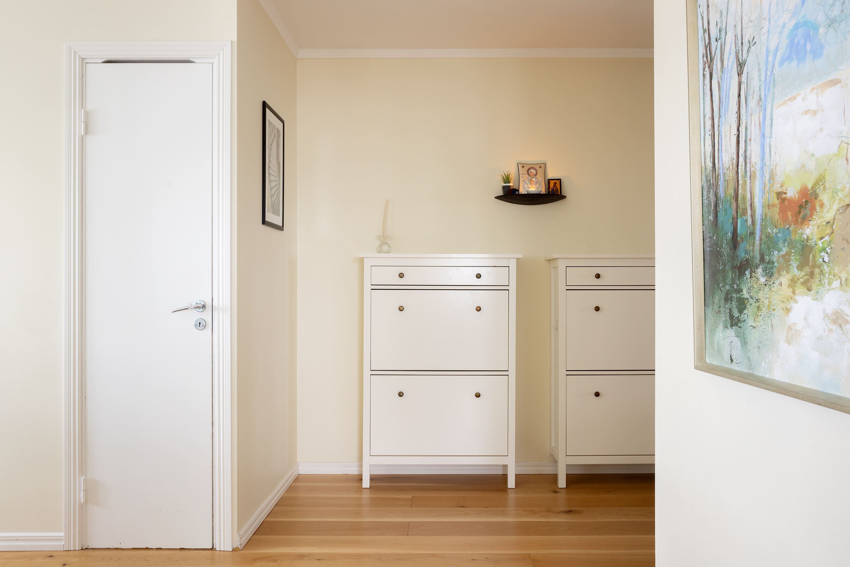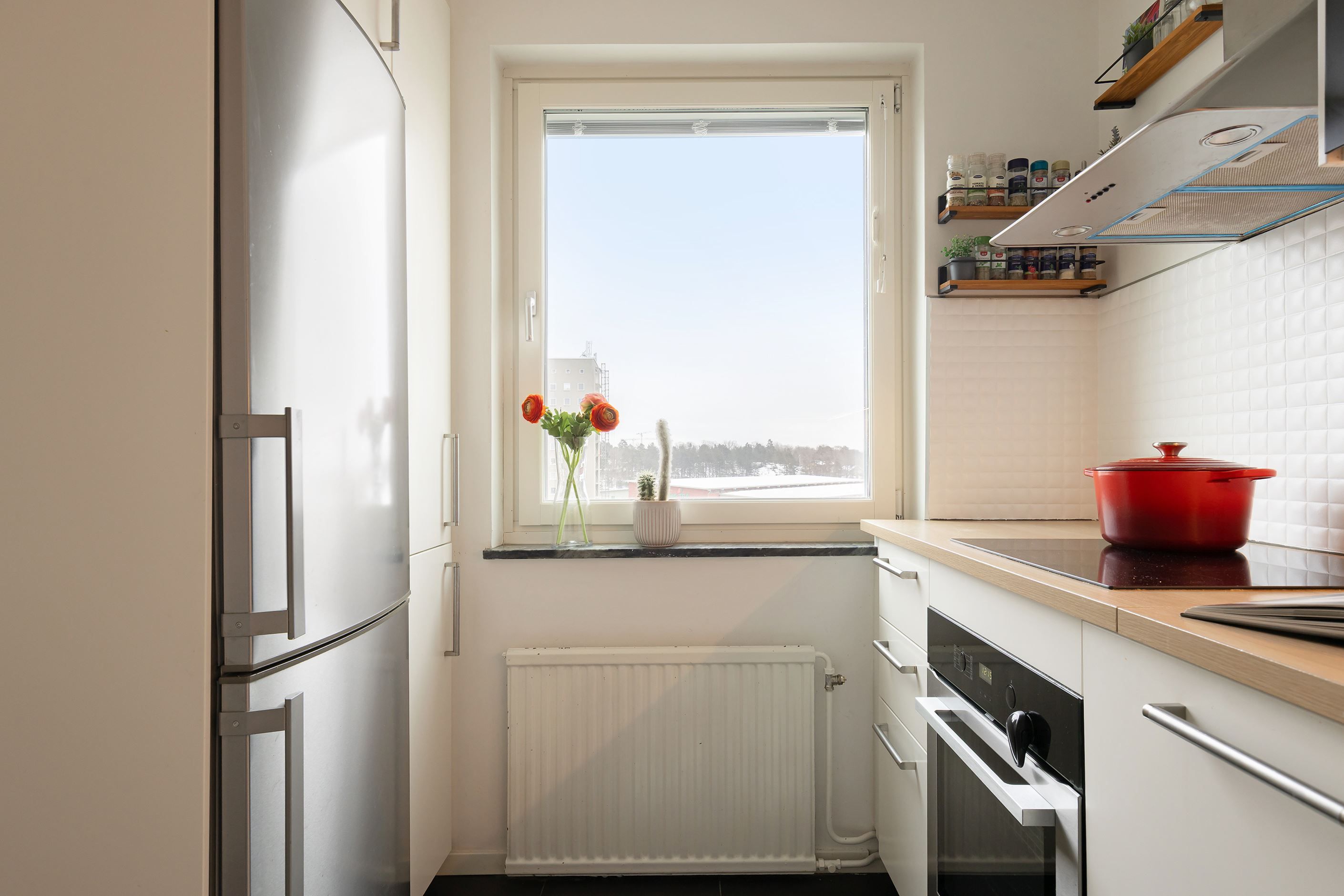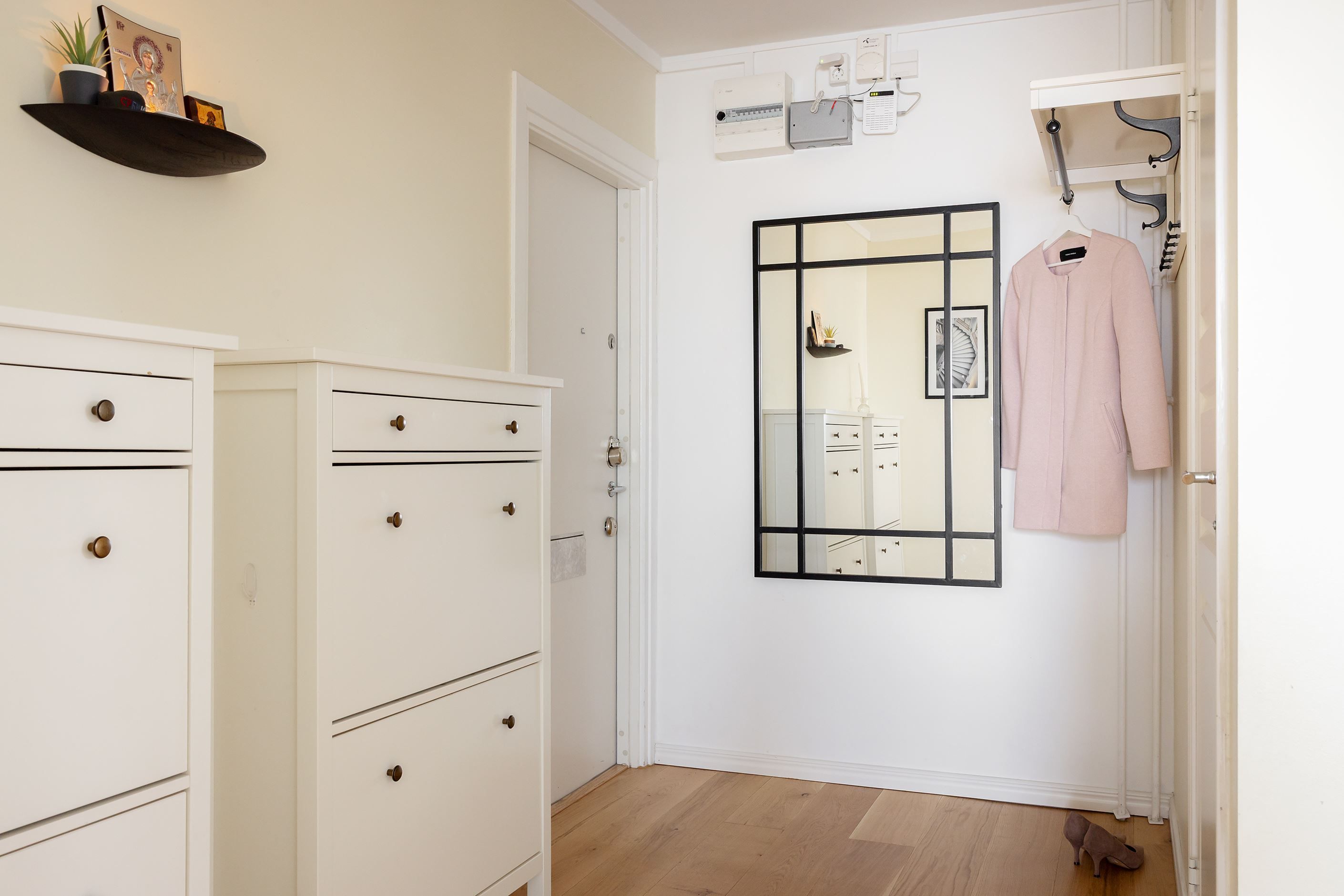 Hallen är välkomnande med naturlig plats för ytterkläder och skor, god yta för förvaringsmöbler samt en rymlig klädkammare som tillsammans ger ypperliga förvaringsmöjligheter. På Sandfjärdsgatan 120 erbjuds ett bekvämt boende med hiss i huset nära bra kommunikationer, närservice, levande Årsta torg, parker, grönområden samt Årstaskogen och Årstaviken.