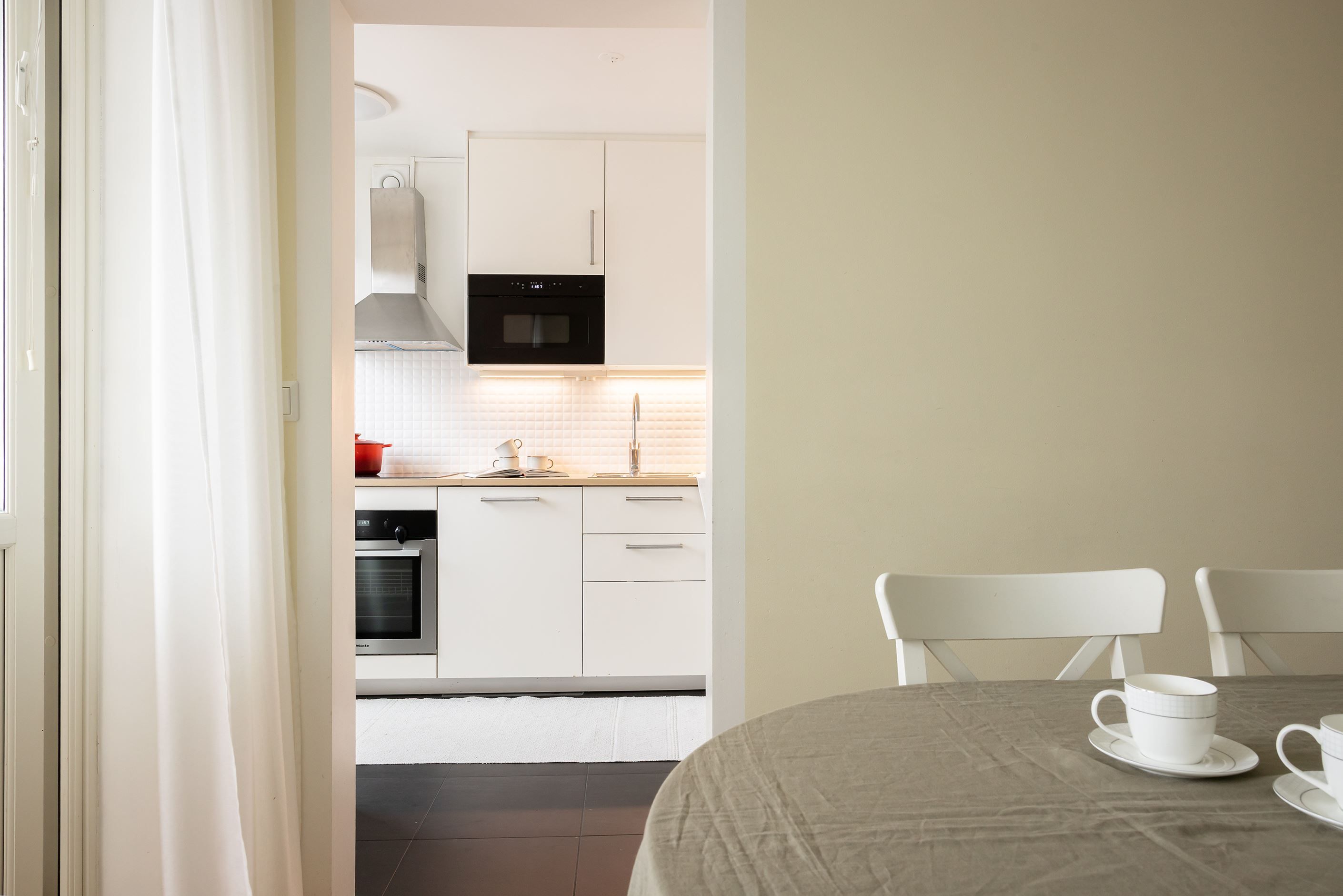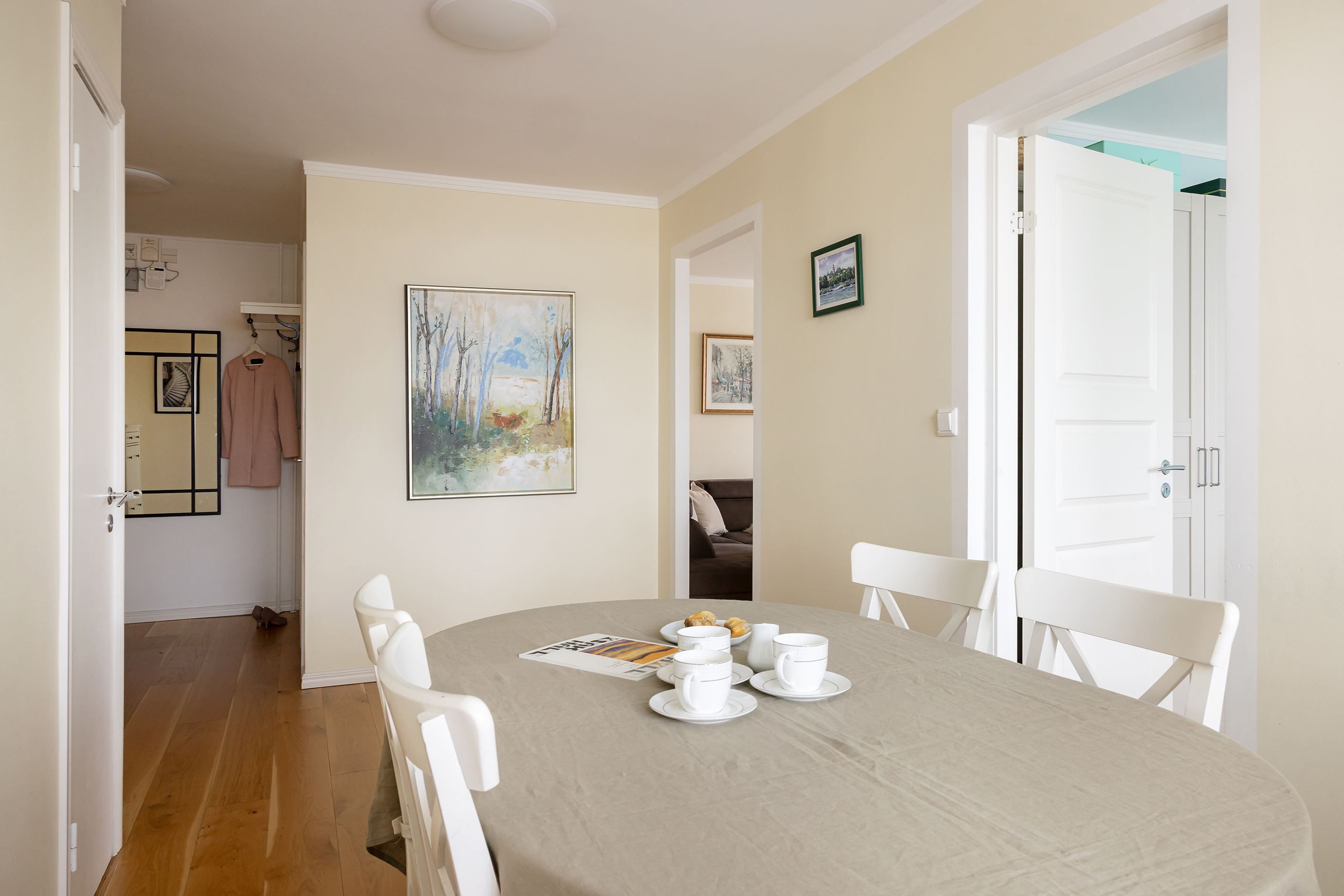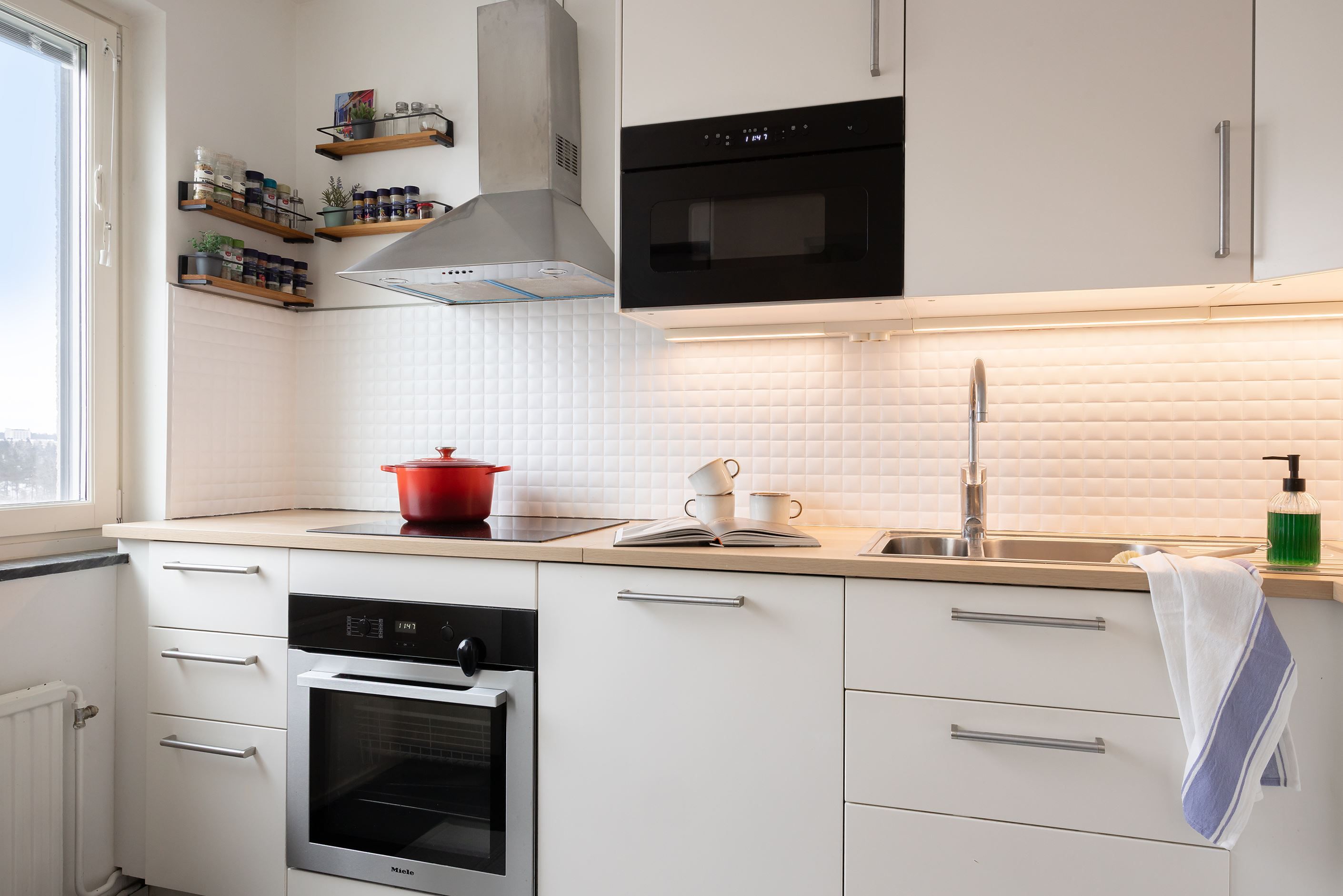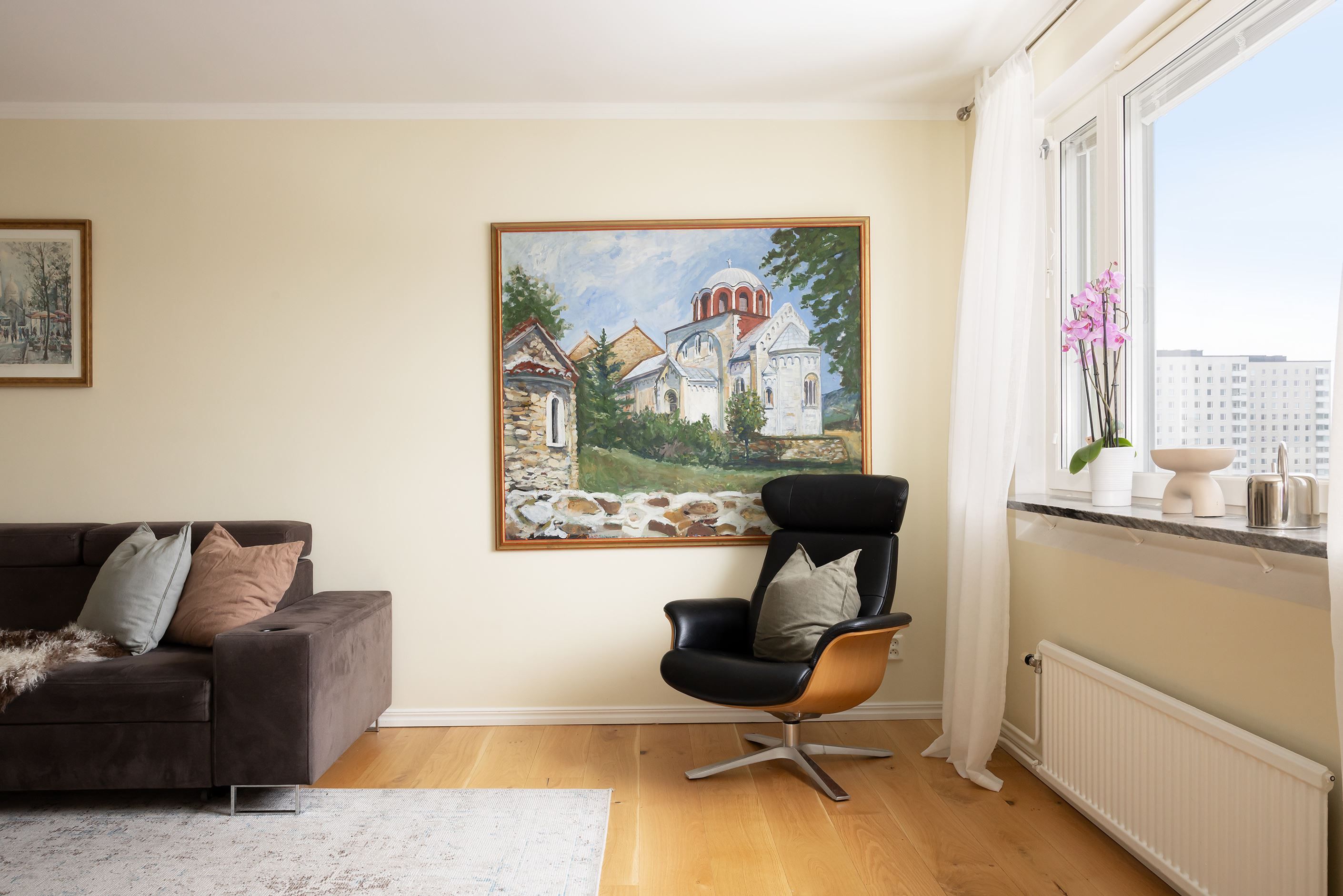 Planlösningen är genomtänkt där vardagsrummets stora yta möjliggör både socialt umgänge och mysiga hemmakvällar med familj och vänner. Köket är stilrent och välplanerat med full maskinell utrustning, gott om förvaring och bra arbetsytor. Intill köket ligger en ljus matplats vid fönster och balkongdörr som ger en öppen och luftig känsla.
