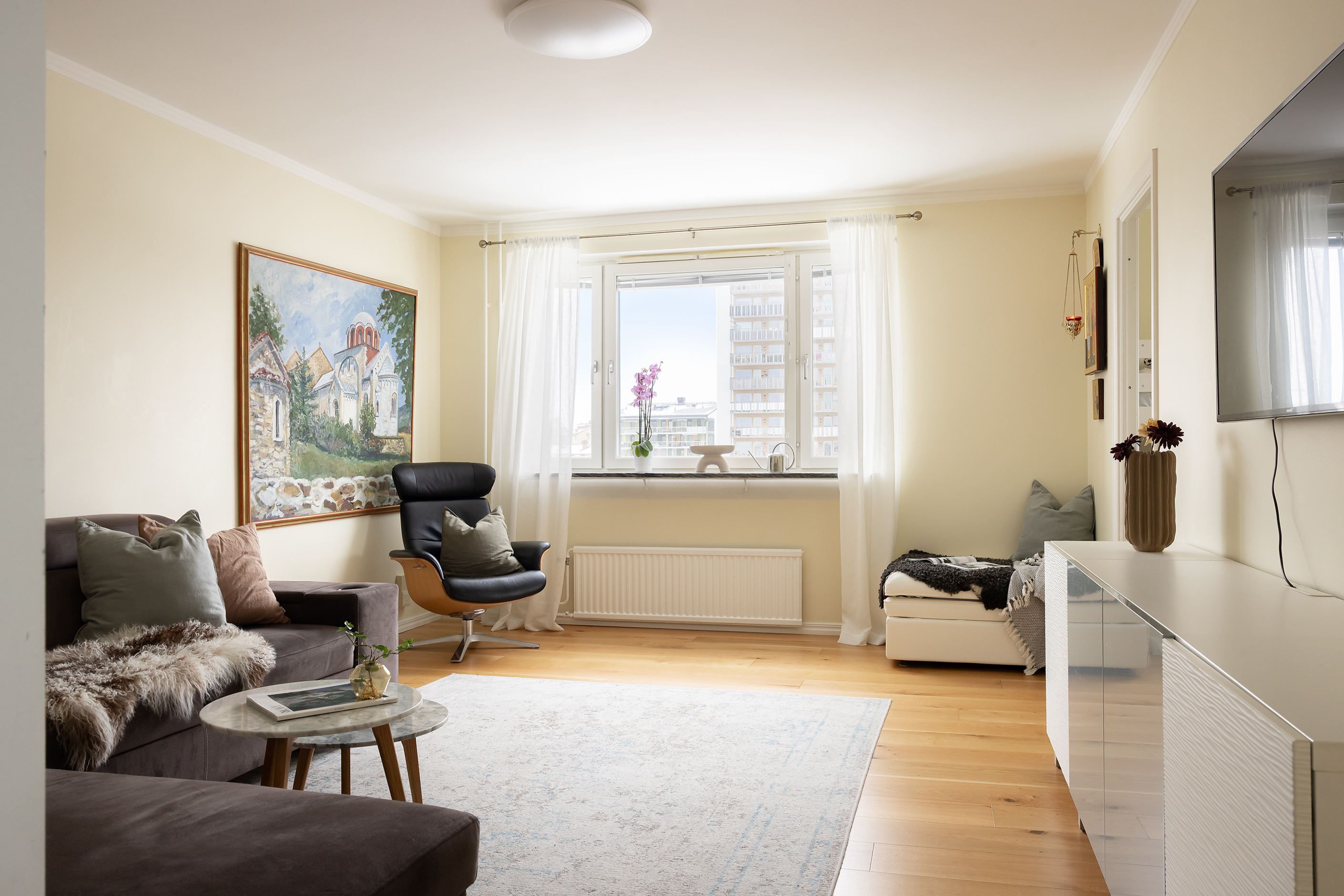 Nu förbereder vi försäljningen av denna härliga gaveltrea på våning 7 med ett högt och fritt läge, vidsträckt utsikt och inglasad balkong. Möjlighet finns att disponera om planlösningen till en kvadratsmart familjefyra. Lägenhetens 75,5 kvm bjuder på ljusa och fräscha ytskikt, härliga ljusinsläpp från två väderstreck samt renoverat kök och badrum.