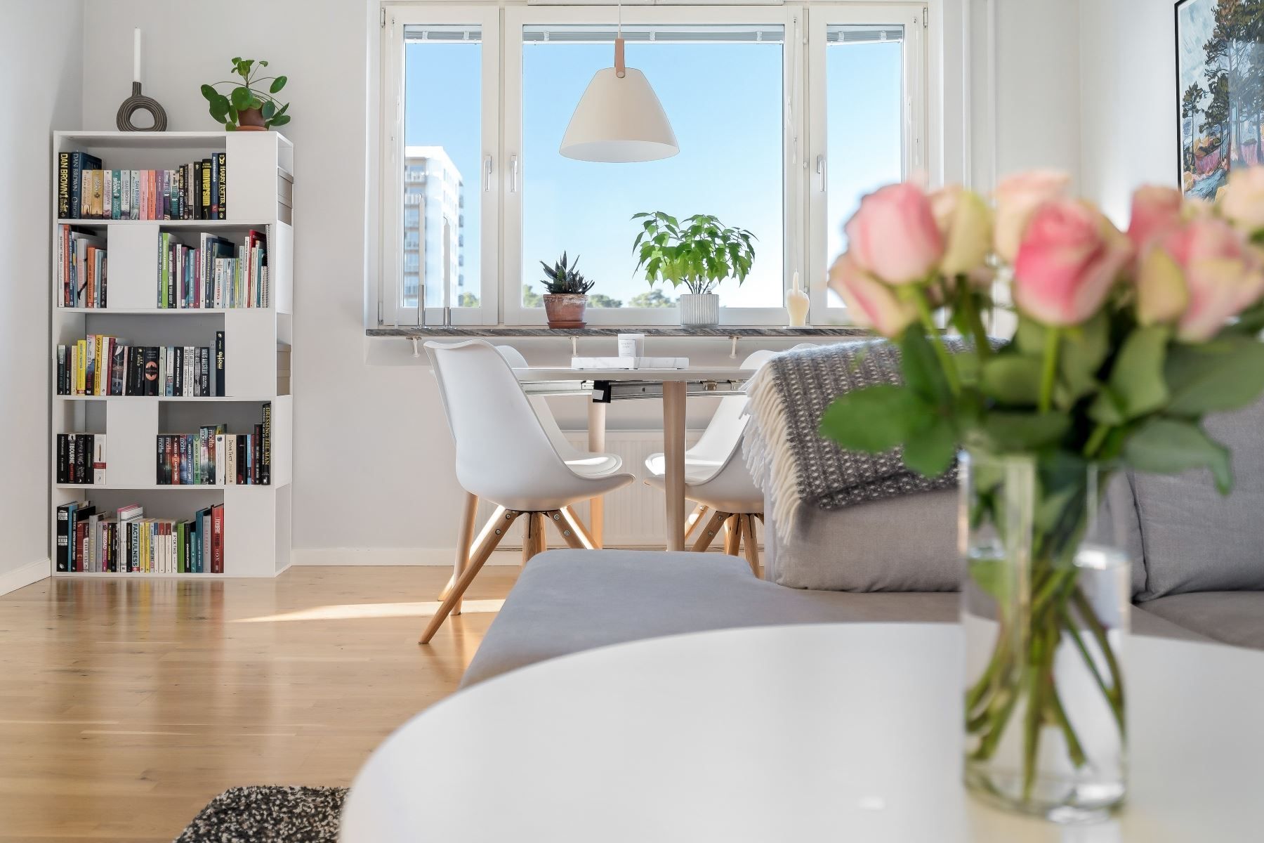 Hjärtligt välkommen upp till denna välplanerade fyra, högt belägen på våning 5 fritt från insyn med generösa ljusinsläpp!