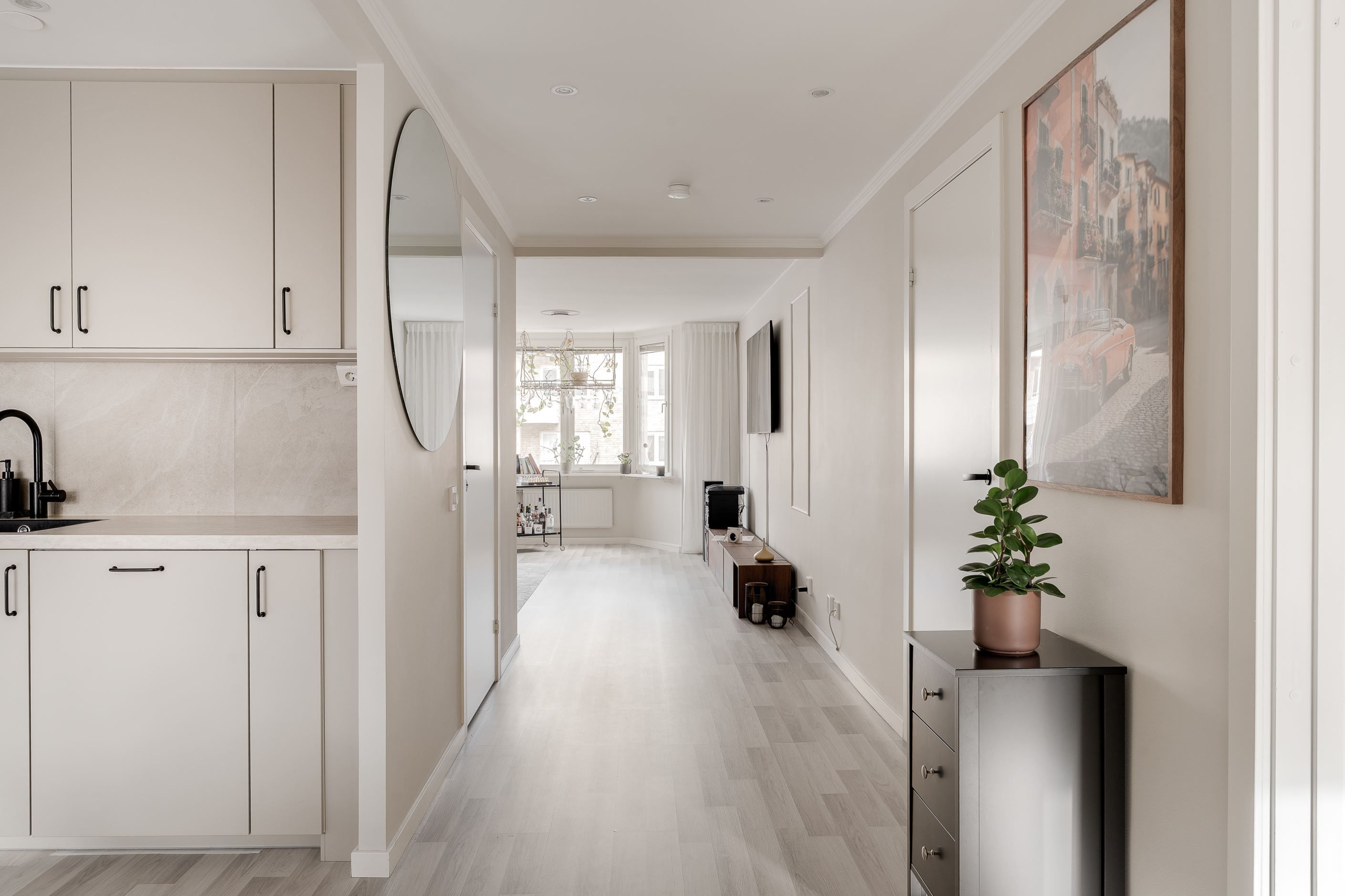 Den genomtänkta renoveringen gör att lägenheten känns både fräsch och inbjudande, vilket skapar en perfekt balans mellan stil och funktionalitet. Bostaden har ett rymligt kök som går i vinkel med matplats. Luftigt vardagsrum med plats för soffmöblemang. Rymligt sovrum. Renoverat stilfullt badrum samt en praktisk klädkammare.