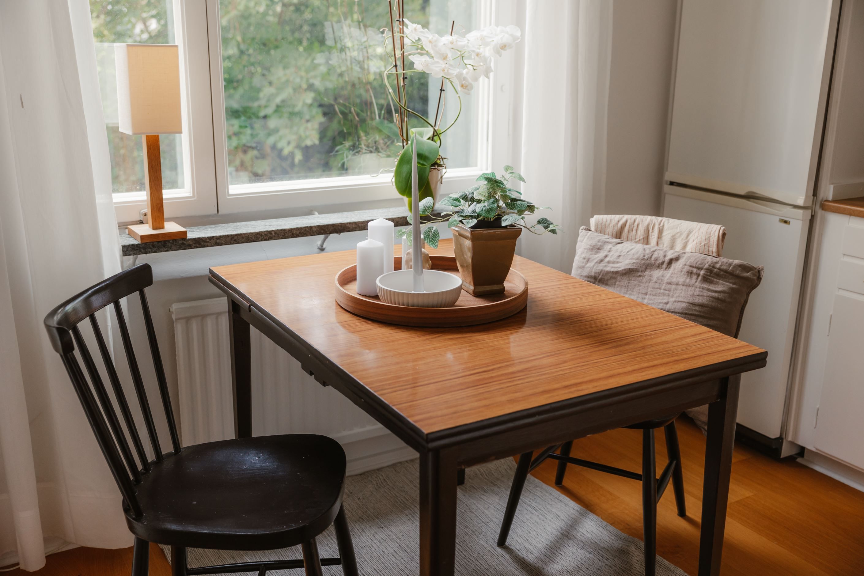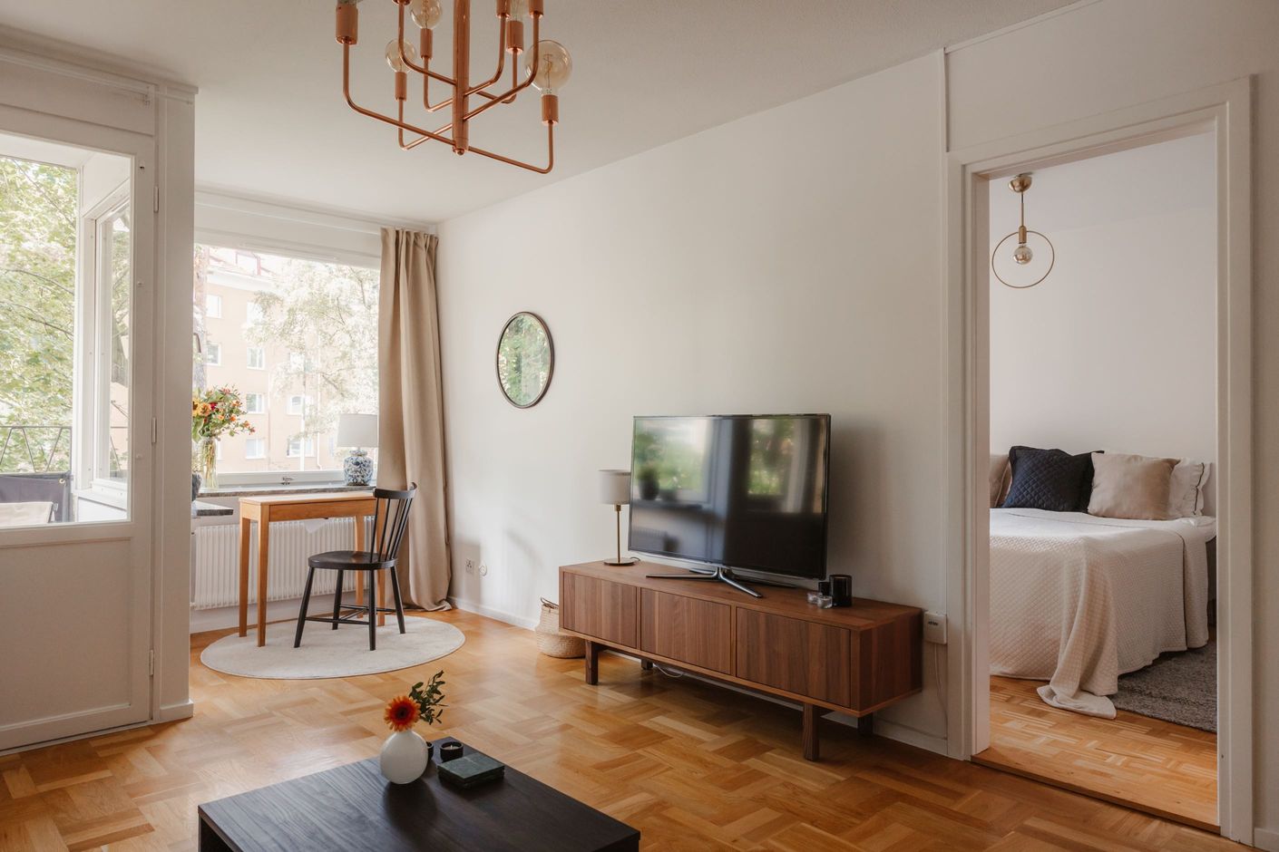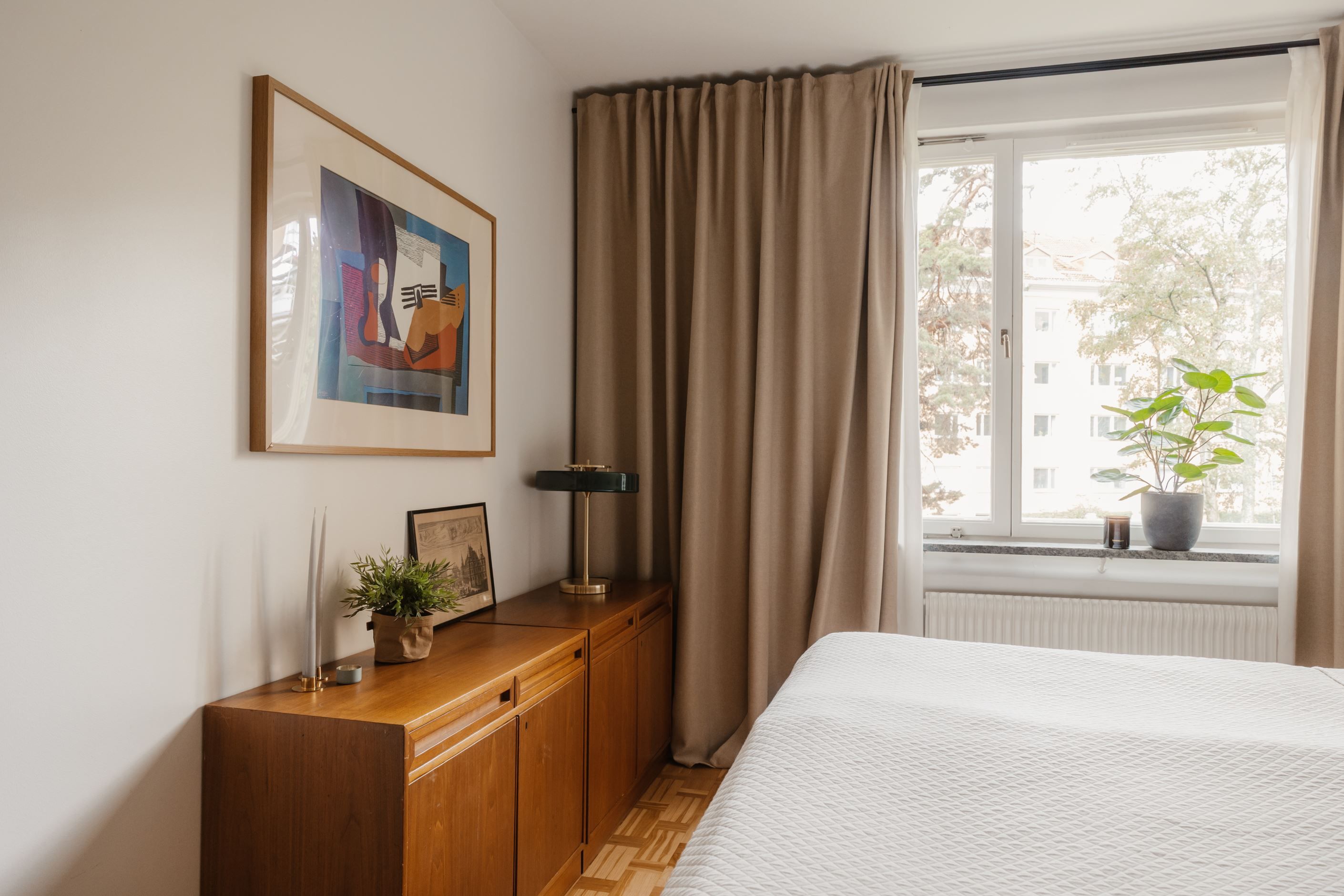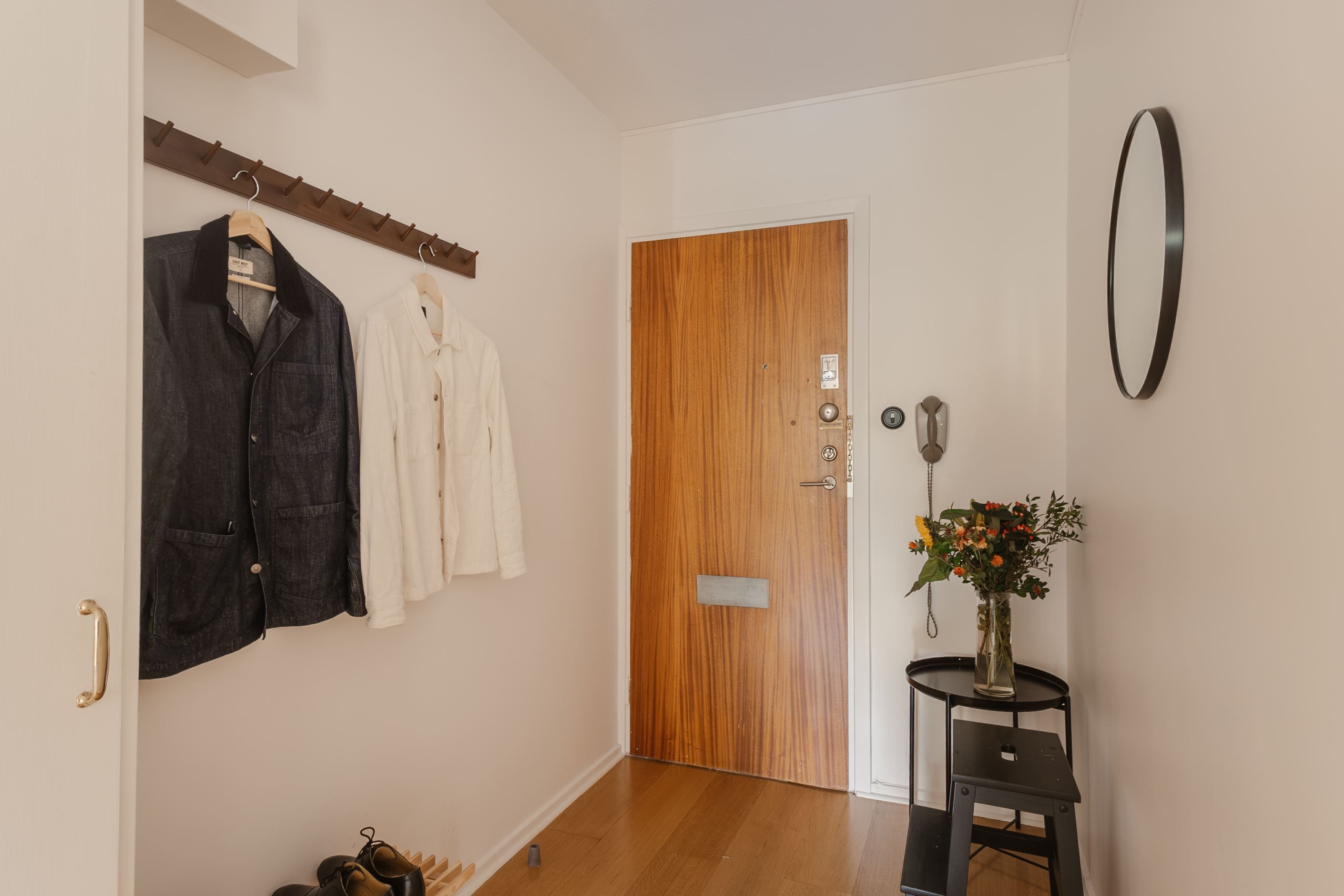 Det trivsamma köket har plats för matbord och skapar en inbjudande miljö för både vardag och middagar med vänner. Det rymliga sovrummet är lugnt beläget och rymmer både dubbelsäng och förvaring i garderob. Utöver detta finns en stor klädkammare, vilket ger mycket goda förvaringsmöjligheter.