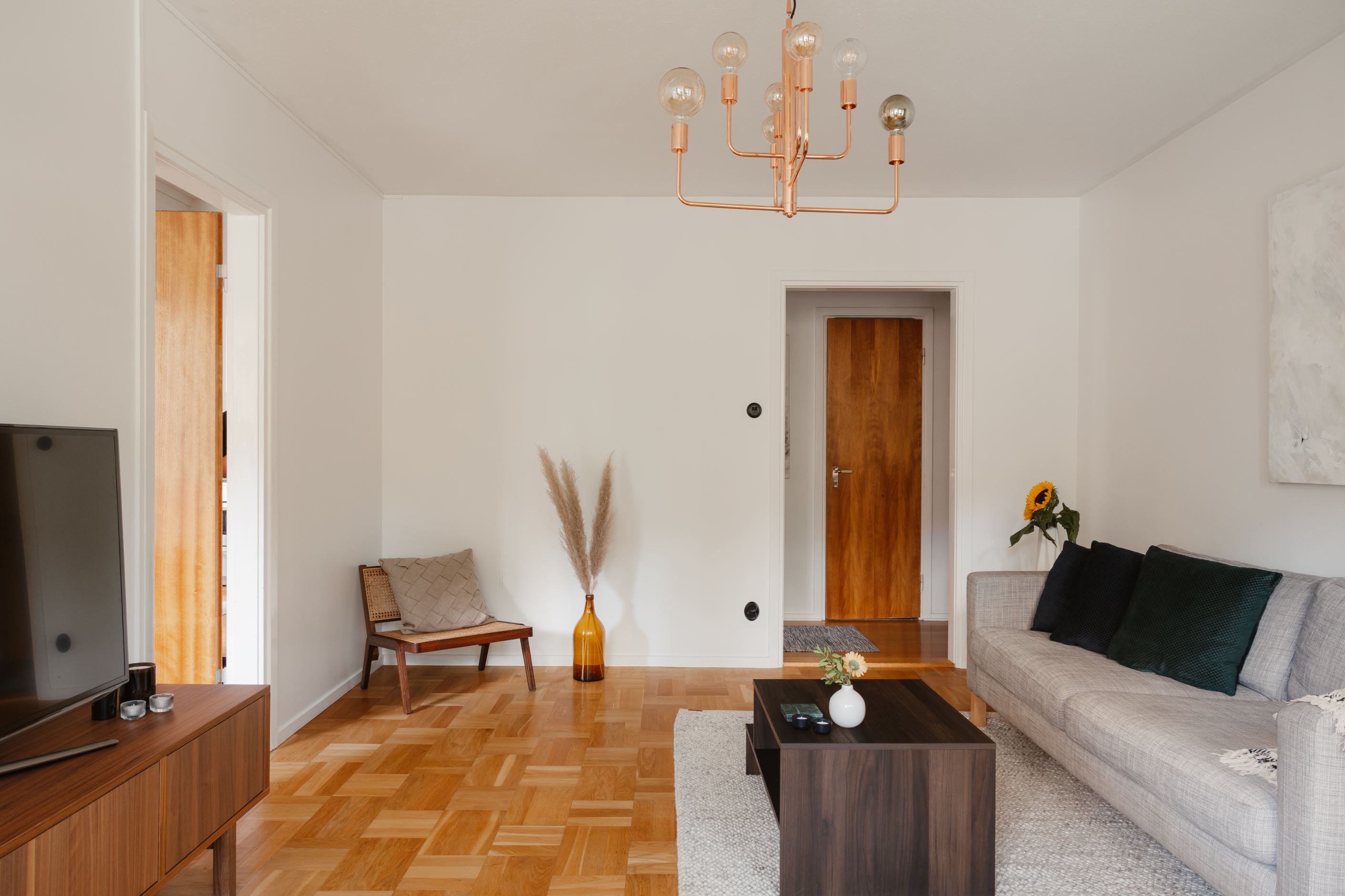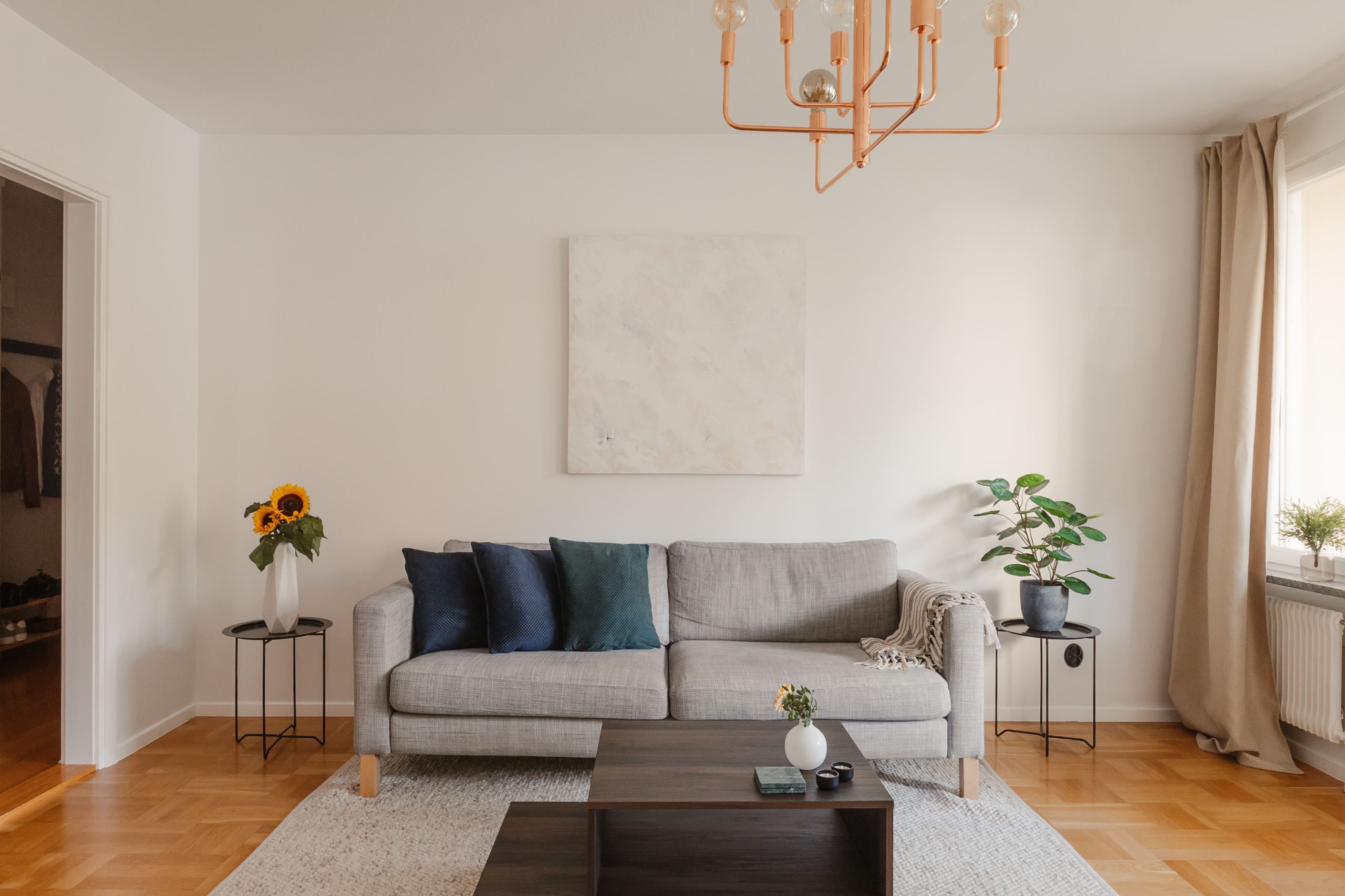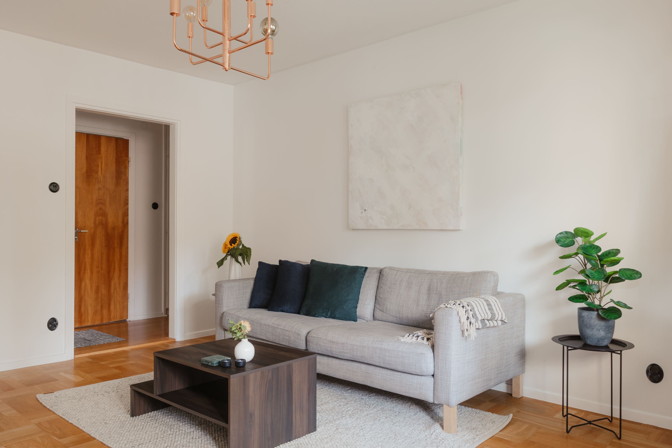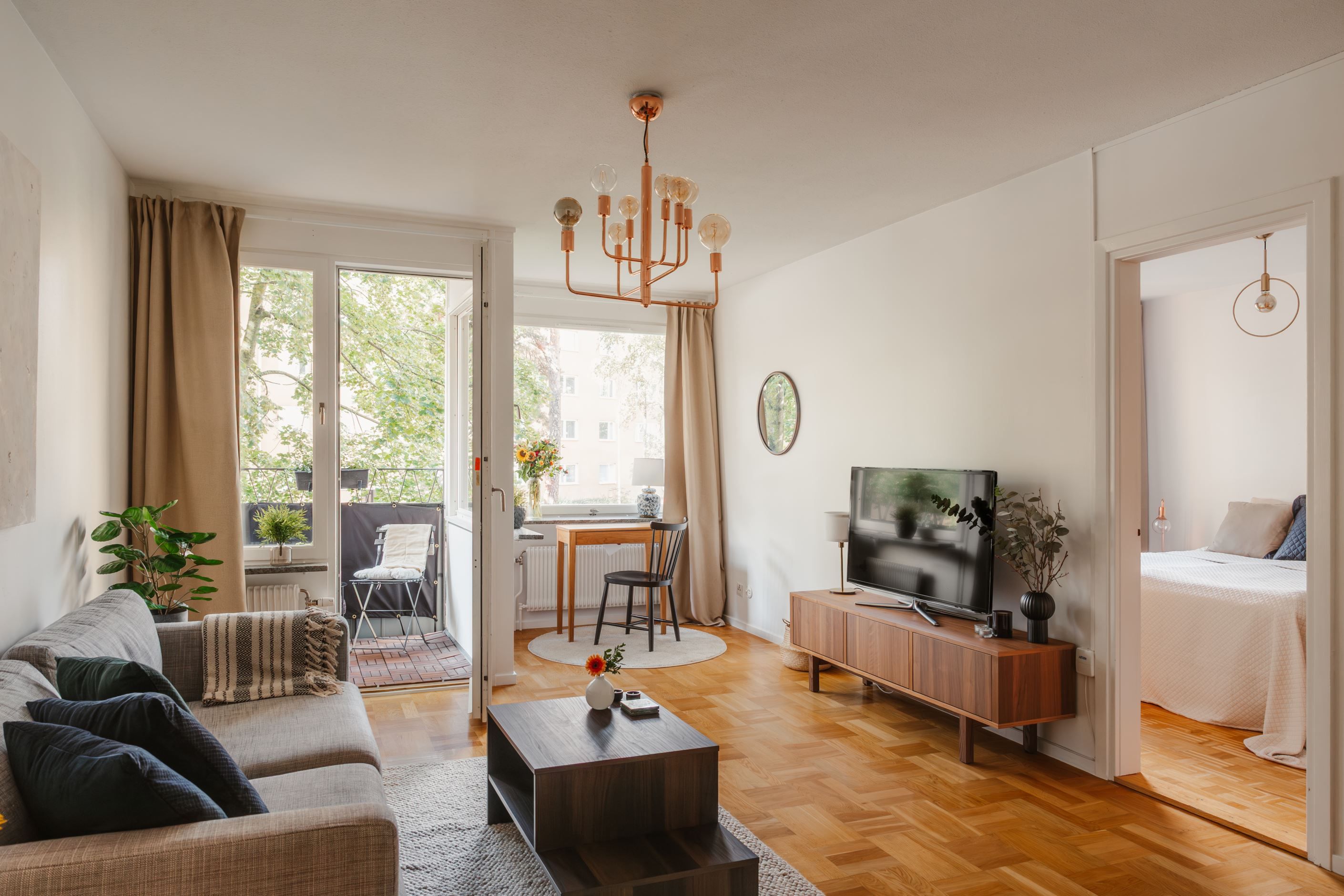 Bostaden erbjuder ett stort och socialt vardagsrum med generöst ljusinsläpp och gott om plats för både soffgrupp och övrigt möblemang. Härifrån nås även den härliga balkongen, som blir en naturlig förlängning av vardagsrummet under årets varmare månader.