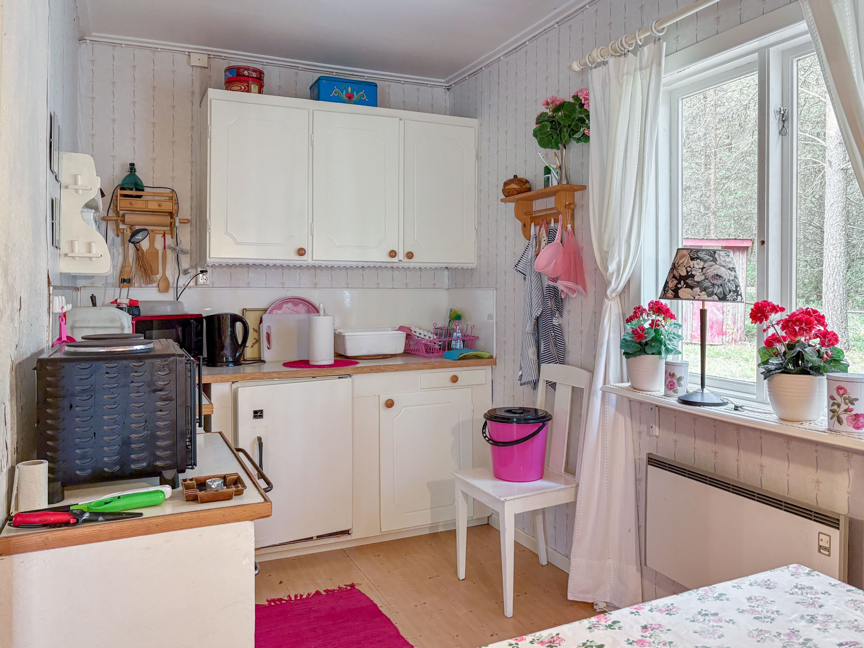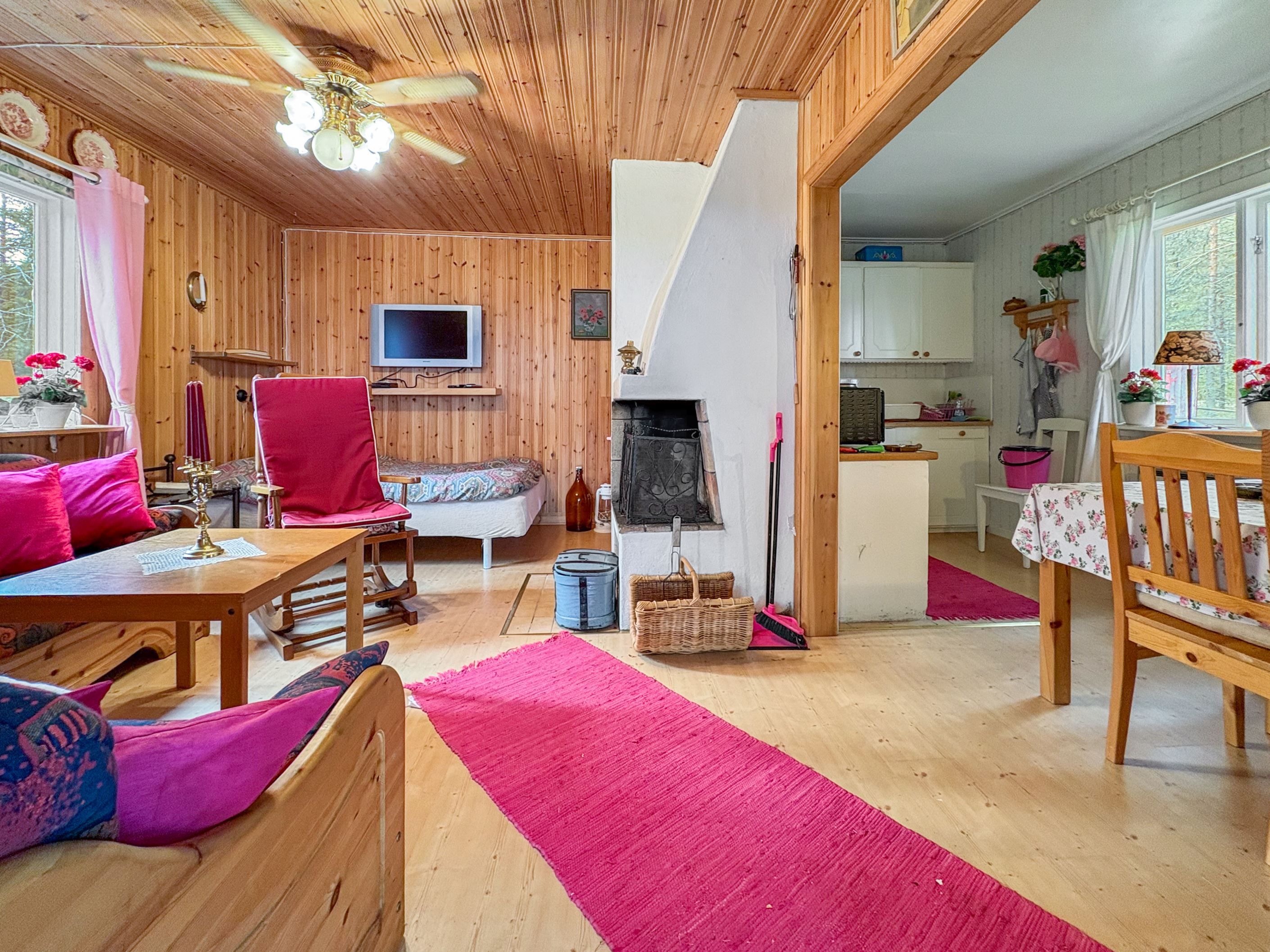 Huvudstugan byggdes 1957 och har renoverats under 2000 talet. Öppen spis som ger hög mysfaktor.