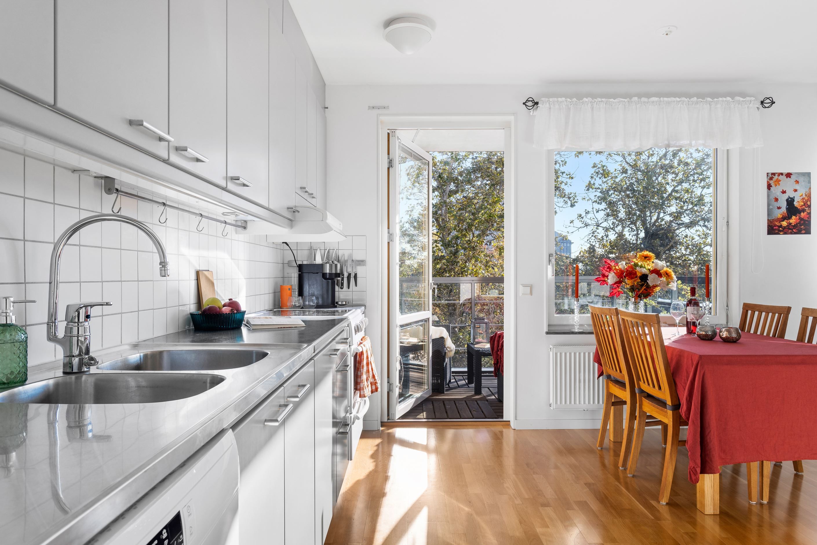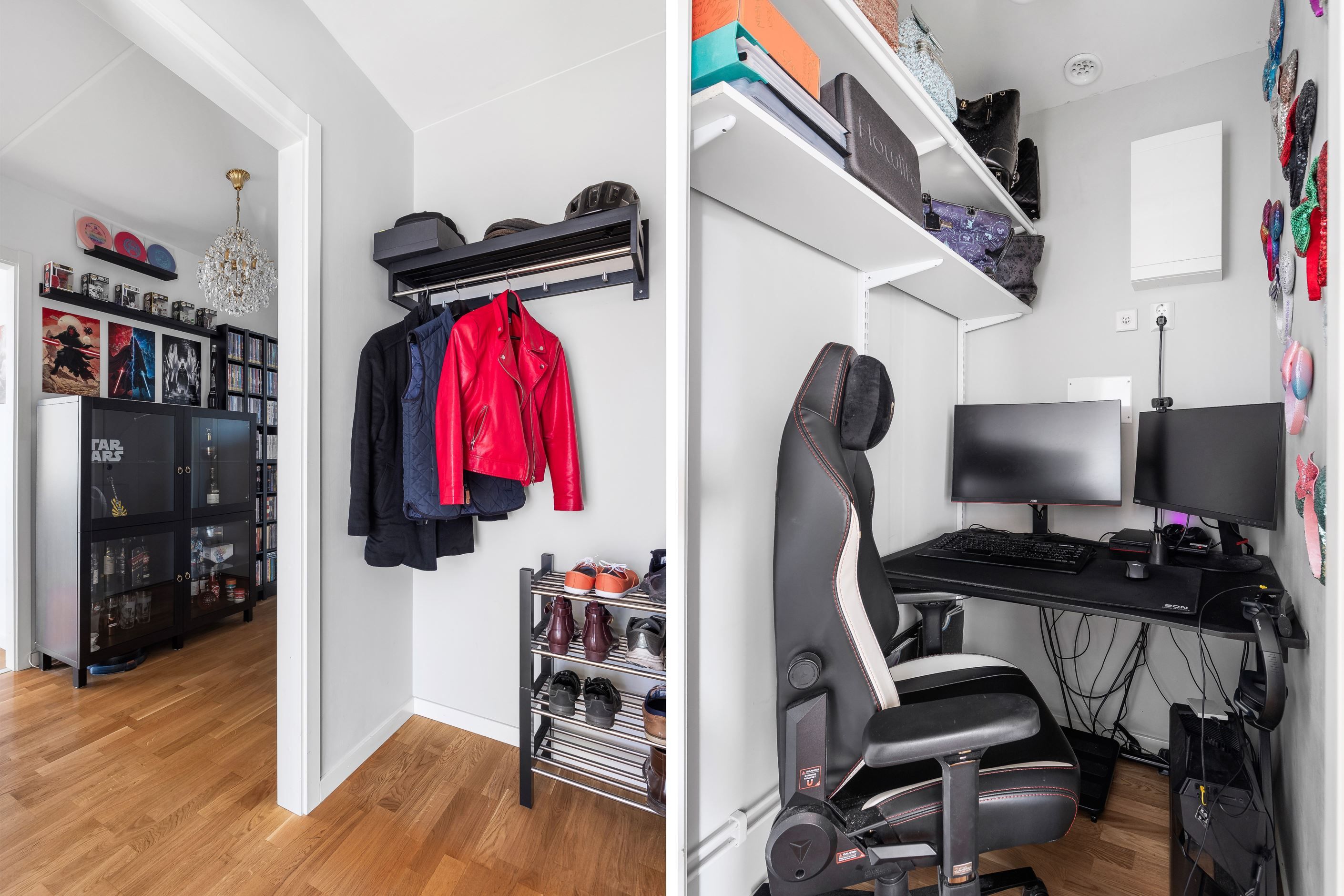 Vidare i bostaden finner ni ett rymligt sovrum med inbyggd förvaring och vy över föreningens härliga innegård. Sist men inte minst erbjuder bostaden ett helkaklat badrum med tvätt del som underlättar vardagens bestyr. Intill badrummet finner ni en klädkammare som enkelt går att disponera som kontorsrum.
