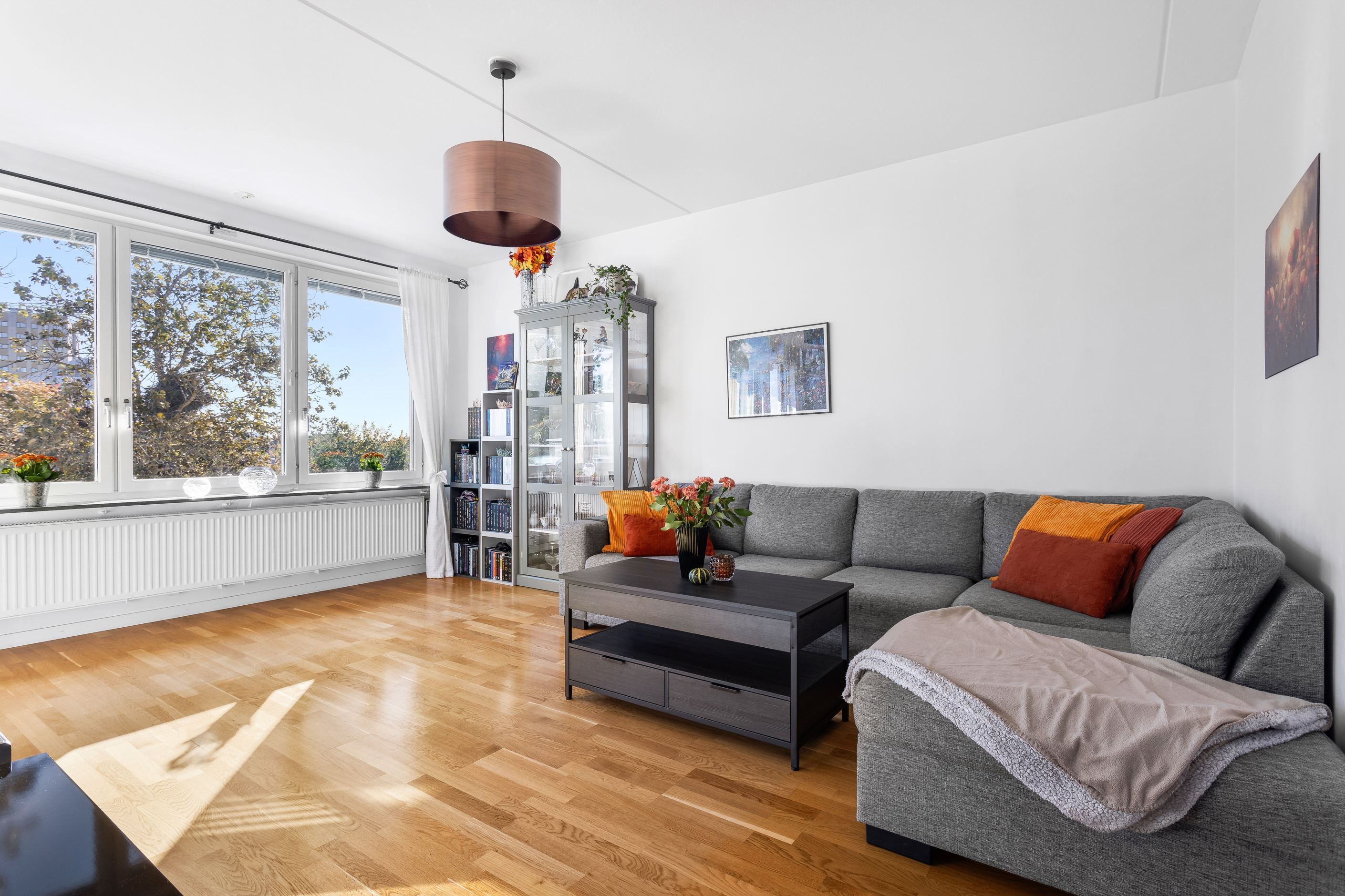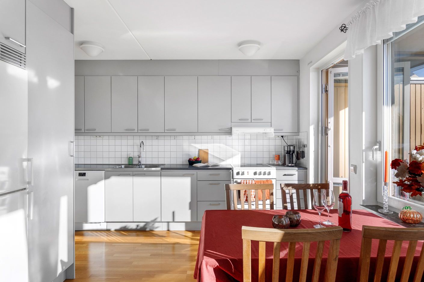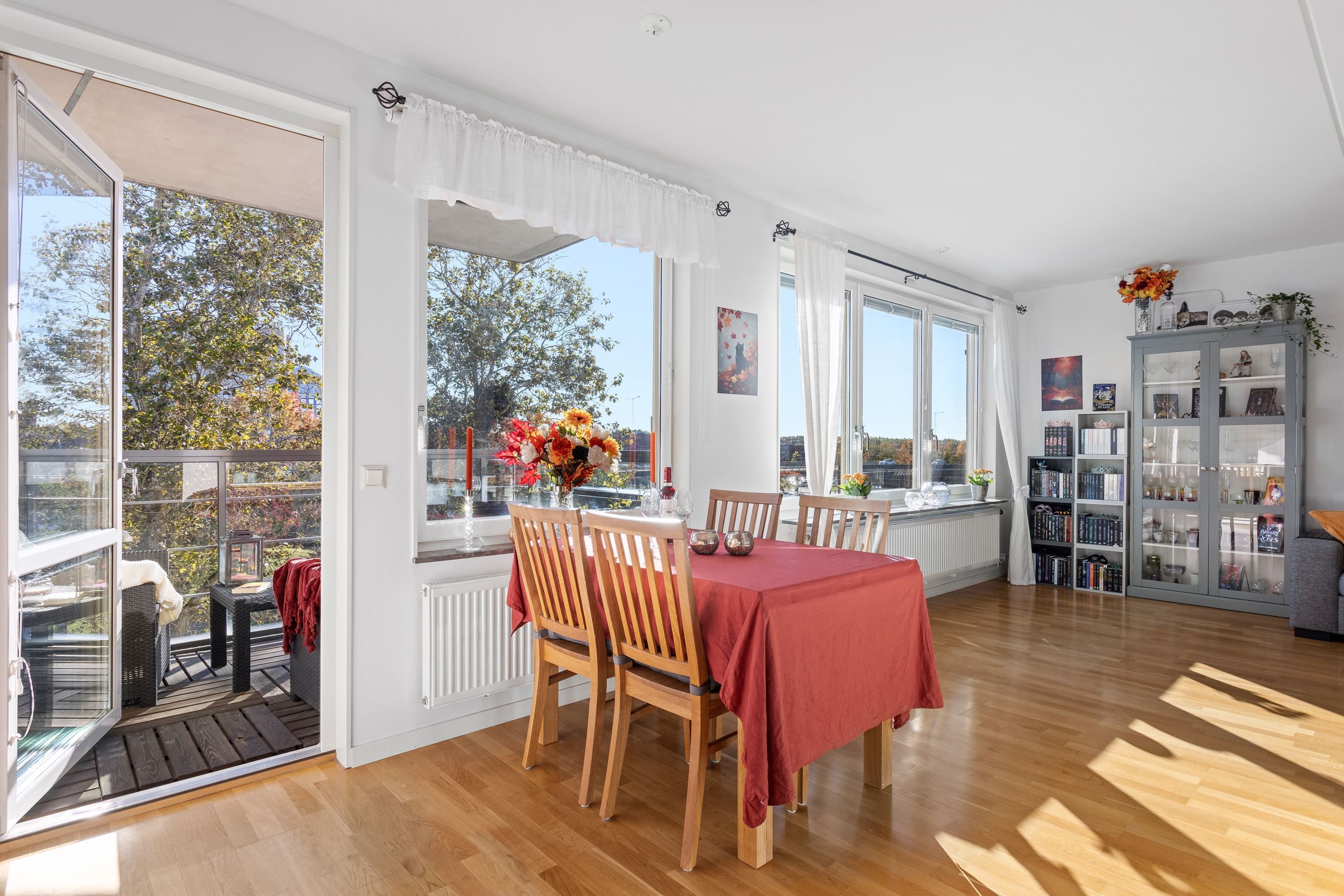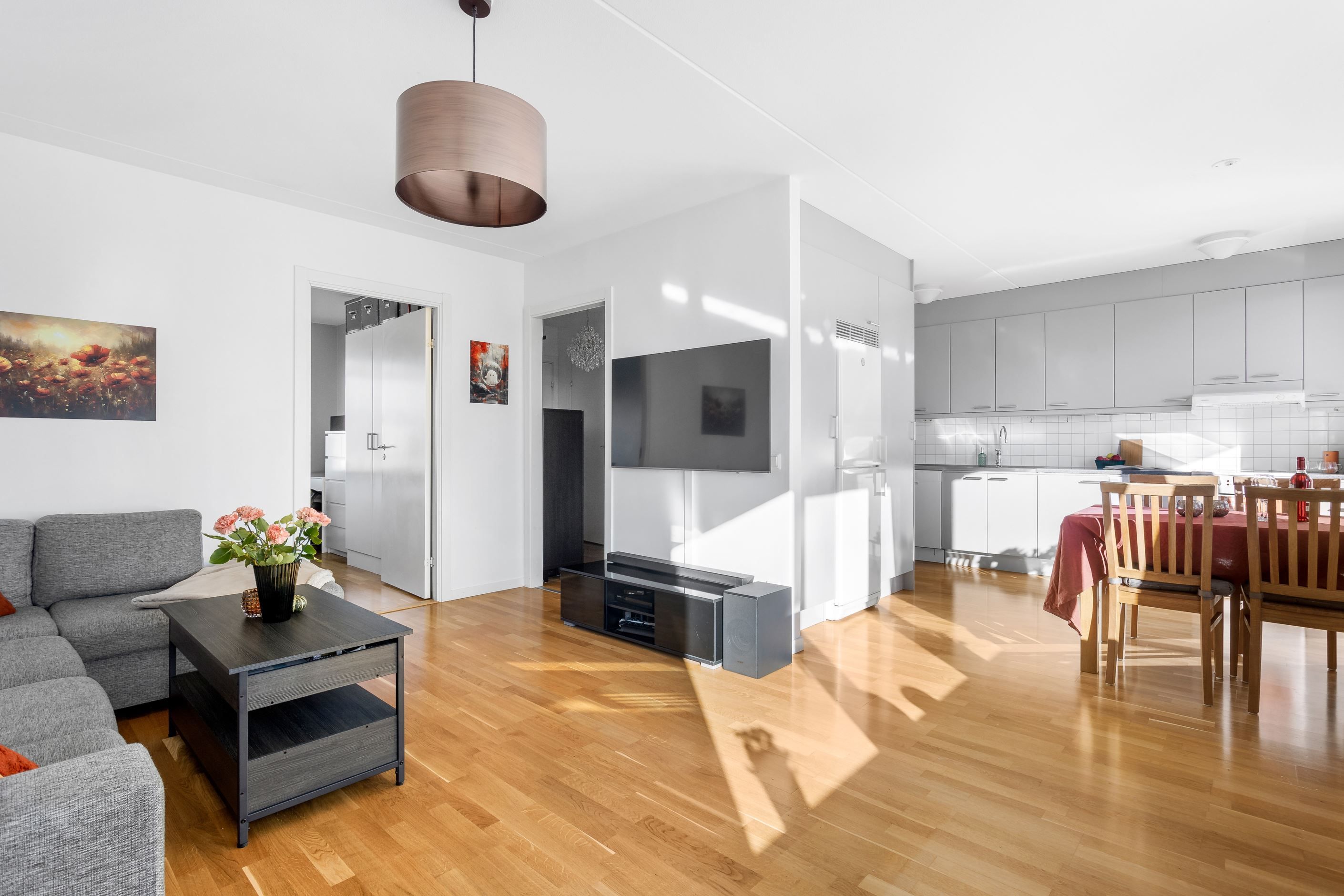 Vardagsrummet blir den perfekta platsen att spendera härliga hemma kvällar med familjen. Intill vardagsrummet finner ni ett hemtrevligt kök med matplats för ca 4 personer. Från köket nås den härliga balkong i soligt söderläge, perfekt plats att njuta av solens ljuvliga soltimmar året runt.