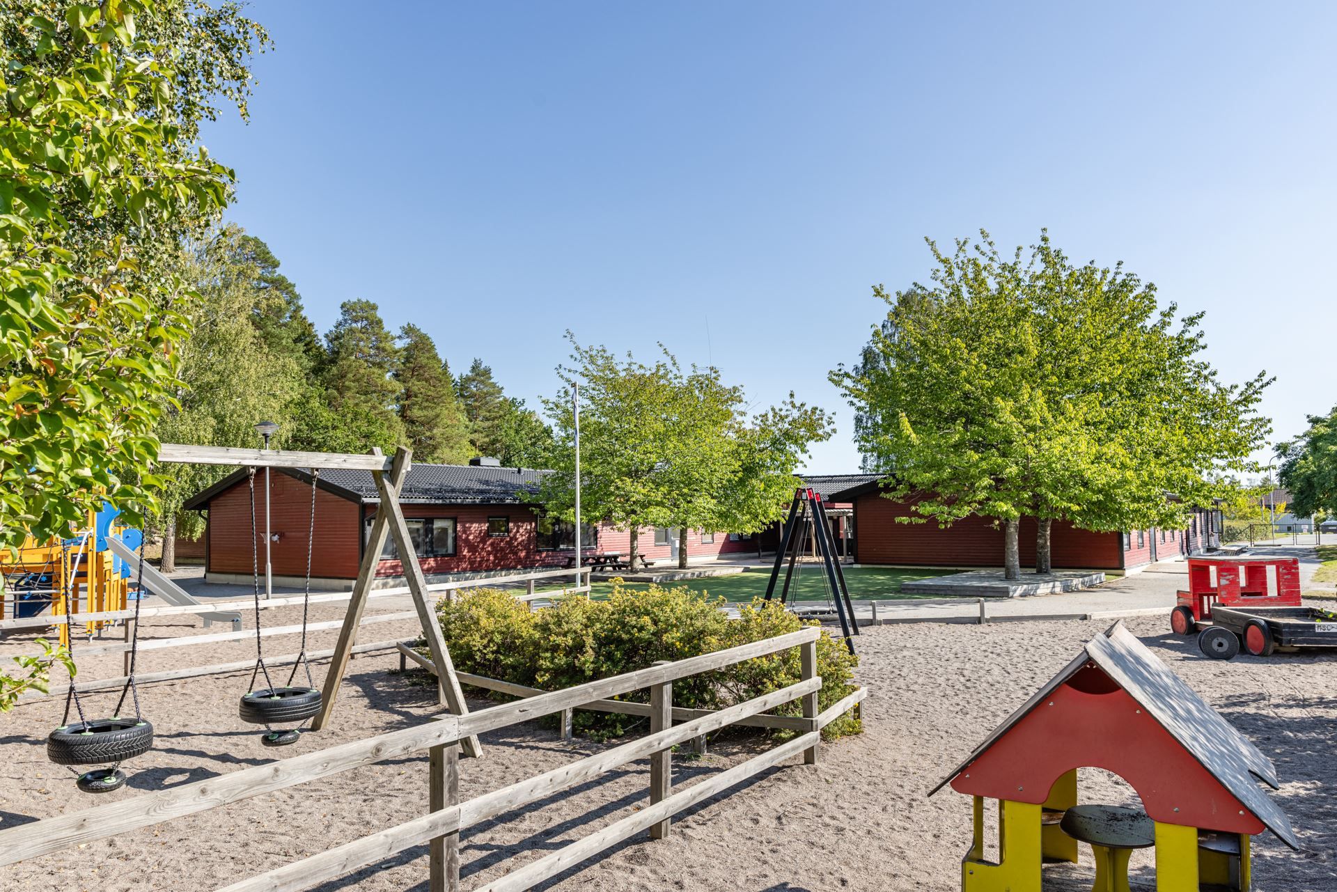 Området är byggt med barnfamiljen i åtanke. Inom området finns flertalet skolor och förskolor inom kort gångavstånd, utan att behöva korsa några bilvägar. Busshållsplatsen är bara några minuter från huset. Här är är det också bekvämt gång/cykelavstånd till badplatser och Mälaren. Det finns löparspår, Sandviksspåret, med tillhörande utegym och att bo här ger precis den mixen som ofta efterfrågas av barnfamilj med skogen och grönområden runt knuten men ändå med mycket bra tillgång till närservice i Viksjö Centrum bara en kort promend bort. Här finns välrenommerad ICA-butik, apotek, vårdcentral, frisör, flertalet restauranger, café, systembolag mm. I närheten av området ligger Viksjö Golfklubb med trevlig lunchrestaurang, som vintertid har spårade längdspår och uppskattad pulkabacke. Längre bort i Görvälns naturreservat finns Brukets skidbacke, boutiquehotell med högklassig restaurang och ytterligare badplats med kanotuthyrning samt båtklubbar.