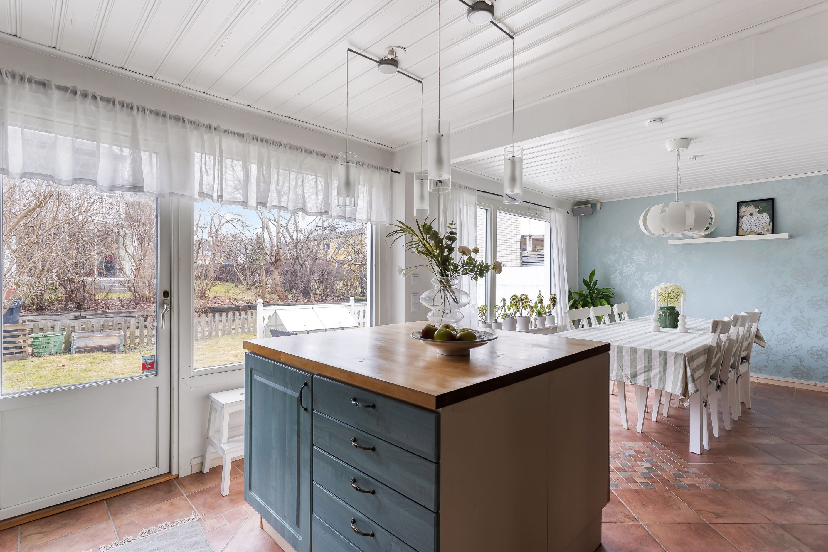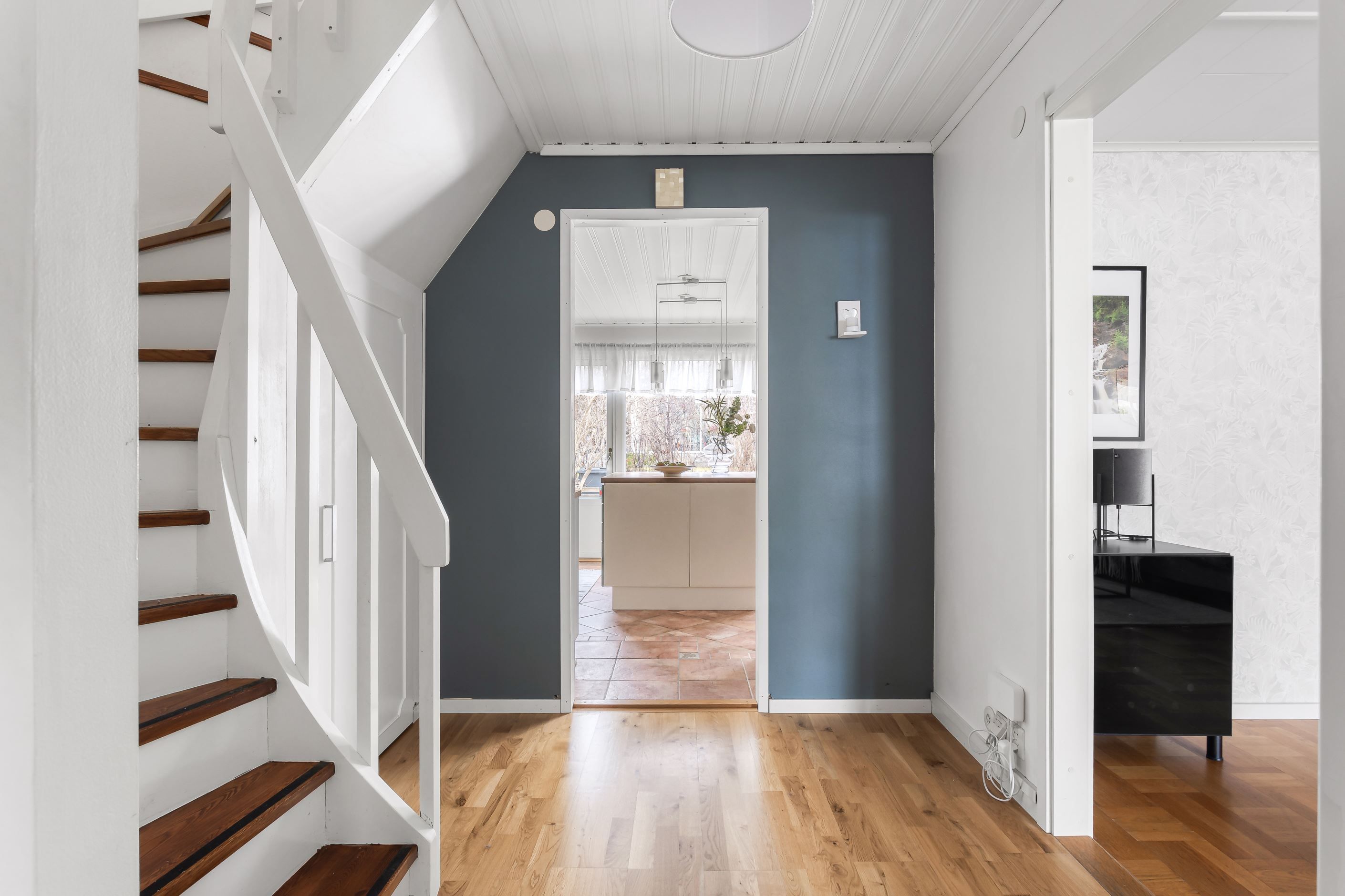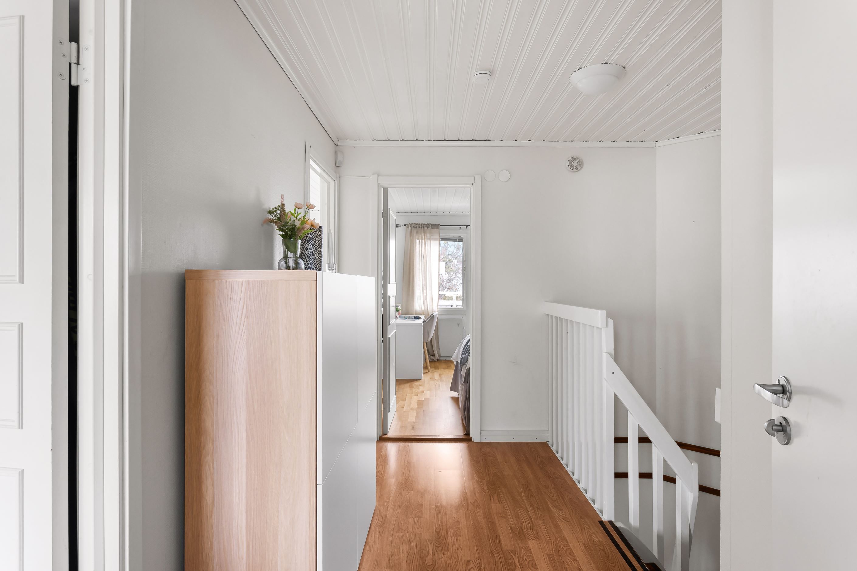 Invändigt erbjuds en flexibel planlösning, som idag består av wc, tvättstuga, vardagsrum, matsal och kök på nedre plan; samt 3 sovrum, klädkammare och badrum på övre plan. Här finns möjlighet till en annan planlösning för den som önskar. Tack vare gavelläget kan det finnas möjlighet att sätta in fönster på gaveln och få ett till sovrum/allrum på övre plan (OBS bygglov, godkännande osv krävs och ingen garanti finns). Missa inte denna unika möjlighet att få göra detta fina gavelradhus med perfekt läge till ditt nästa hem.