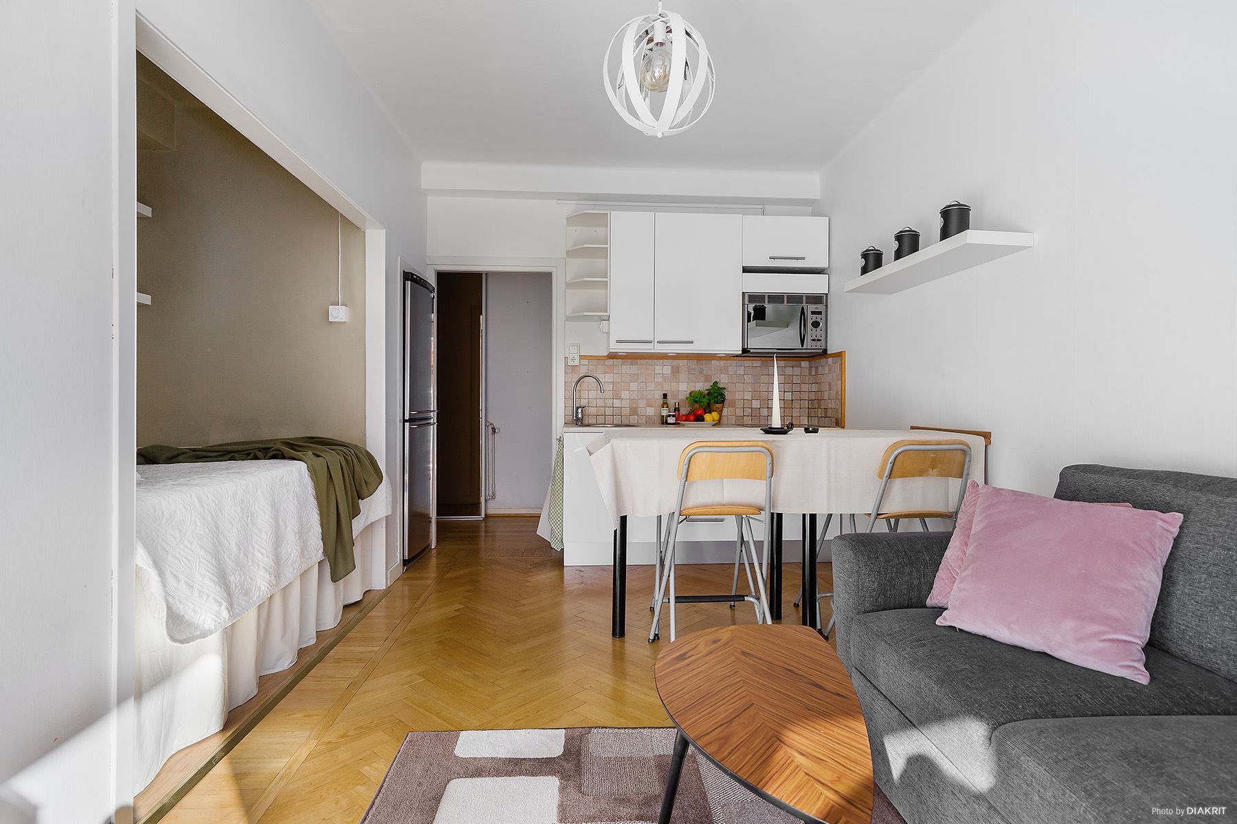 Med centralt men ändå ostört läge, mot föreningens fina innergård, ligger denna trivsamma 1:a. Mycket väldisponerad planlösning med en mysig balkong som har eftermiddag- och kvällssol. Bostaden har ett otroligt eftertraktat läge med tillgång till det bästa av två världar. Vattnet och fantastiska promenadstråk samt Fridhemsplan med all tänkbar service, restauranger, caféer och butiker. Även utmärkta kommunikationer med tunnelbanan direkt utanför porten samt ett stort antal bussar. Härifrån nås även Sankt Eriksplan inom några minuter gångavstånd.