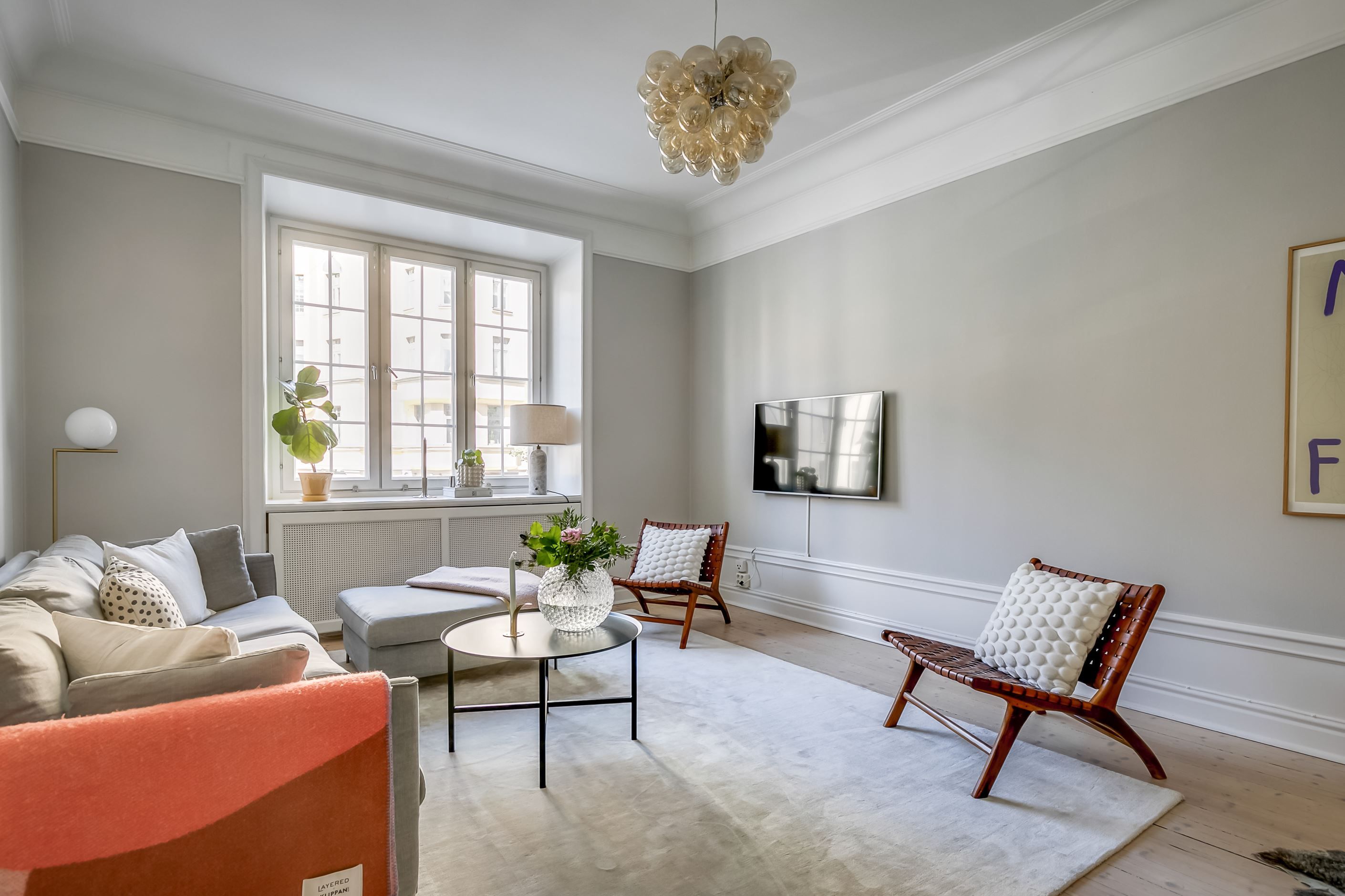 Optimal planlösning med härliga sällskapsytor, kök som erbjuder plats för matbord, två sovrum mot gården samt stort badrum med tvättmaskin och torktumlare. Alla väggar är målade i harmoniska kulörer som skapar en enhetlig känsla samt framhäver alla vackra detaljer. Bostaden är belägen i en vacker fastighet anno 1913 i en stabil och skuldfri förening. Ett toppboende precis invid Sankt Eriksplan med fenomenala kommunikationer och ett rikt restaurangutbud.
