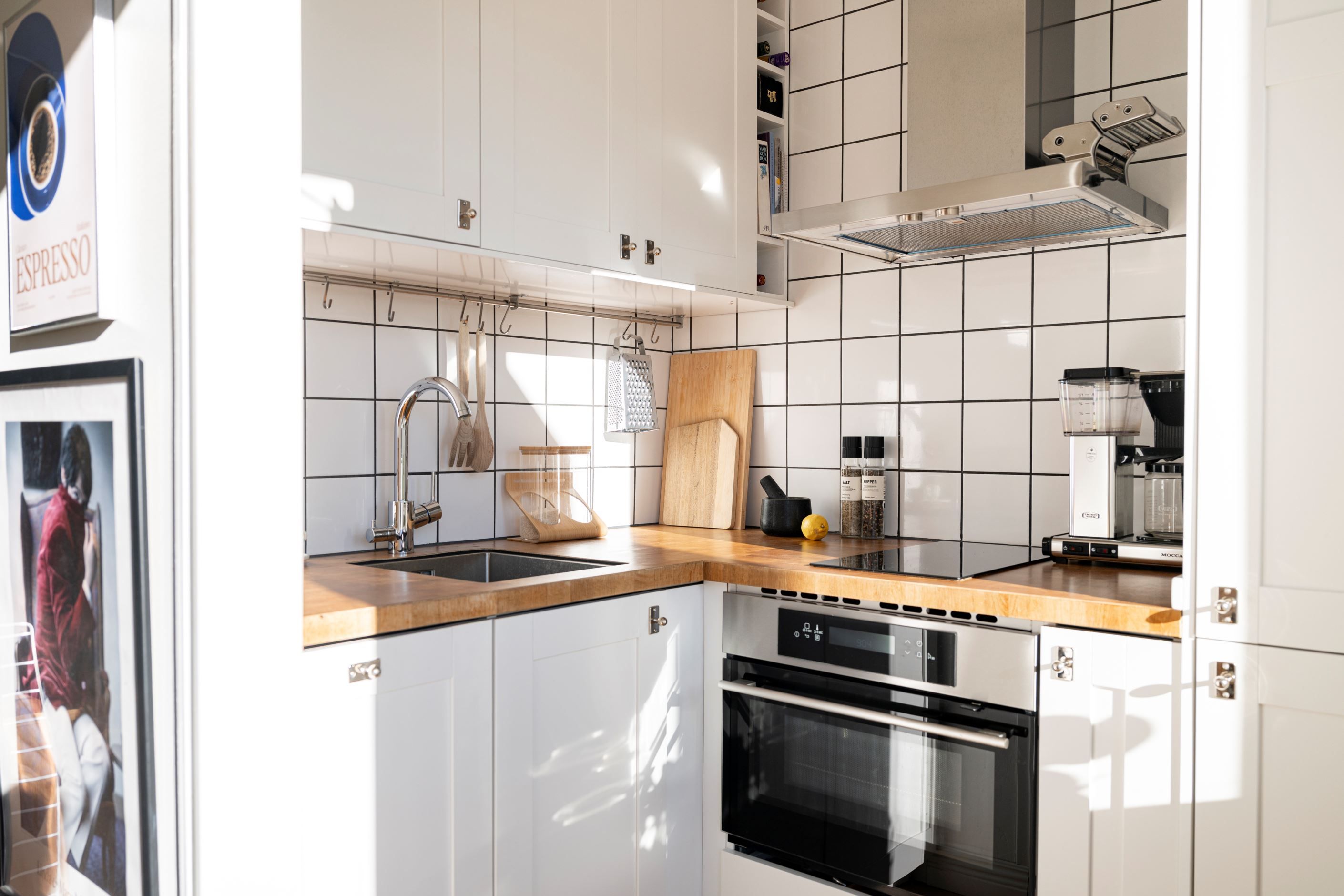 Den smarta planlösningen rymmer allt man kan önska. Här finns gott om plats för både soffgrupp och matbord, en avskild sovalkov med plats för större säng samt ett stilrent kök med vita ramluckor, bra arbetsytor och modern maskinell utrustning. Hallen är generös med bra förvaring i flera garderober och badrummet är fräscht helkaklat med marmorerat klinkergolv, vikbara duschväggar i glas och en stilren känsla. Genomgående ljusa väggar och vacker holländsk parkett skapar en trivsam atmosfär i hela bostaden.
