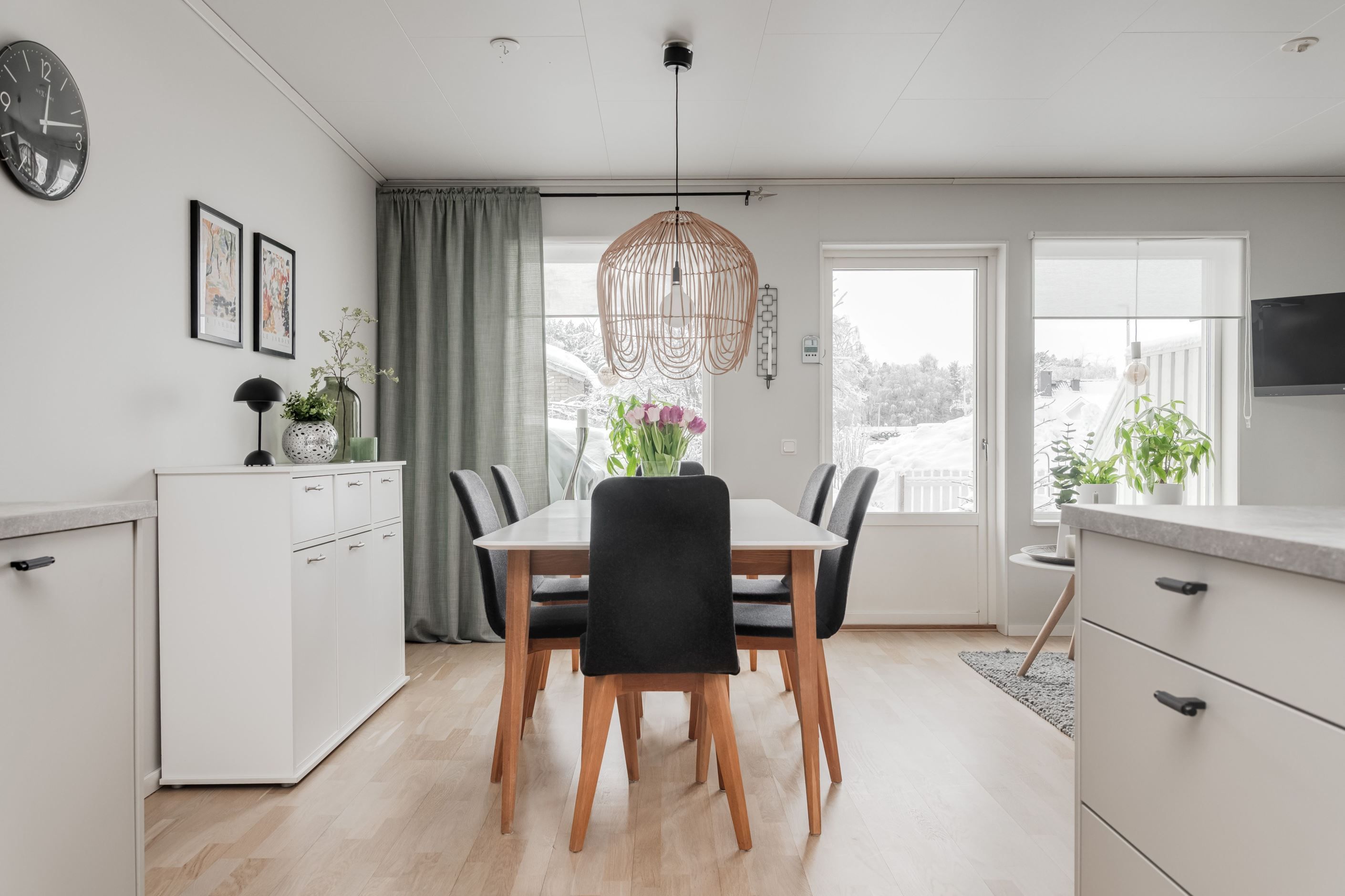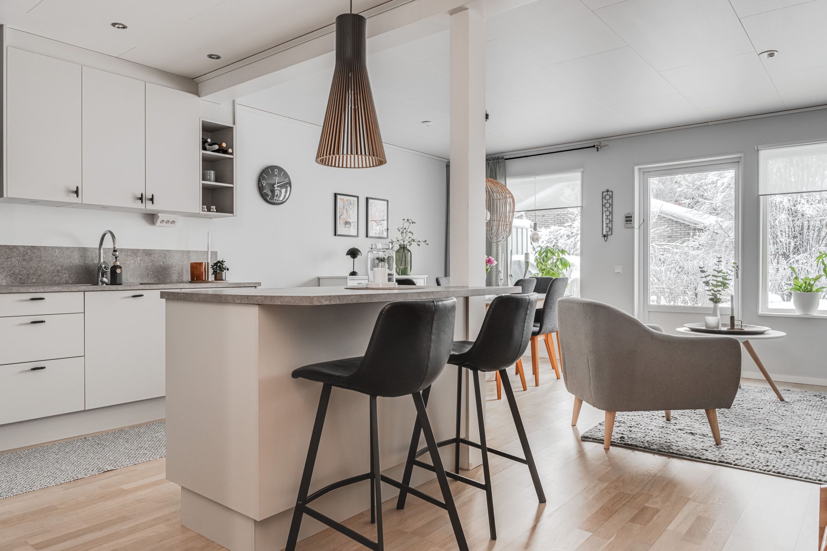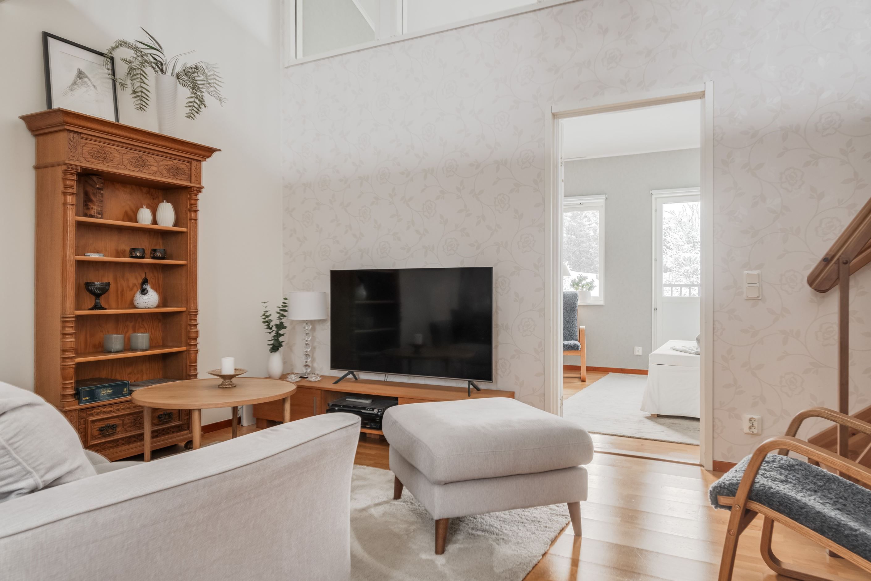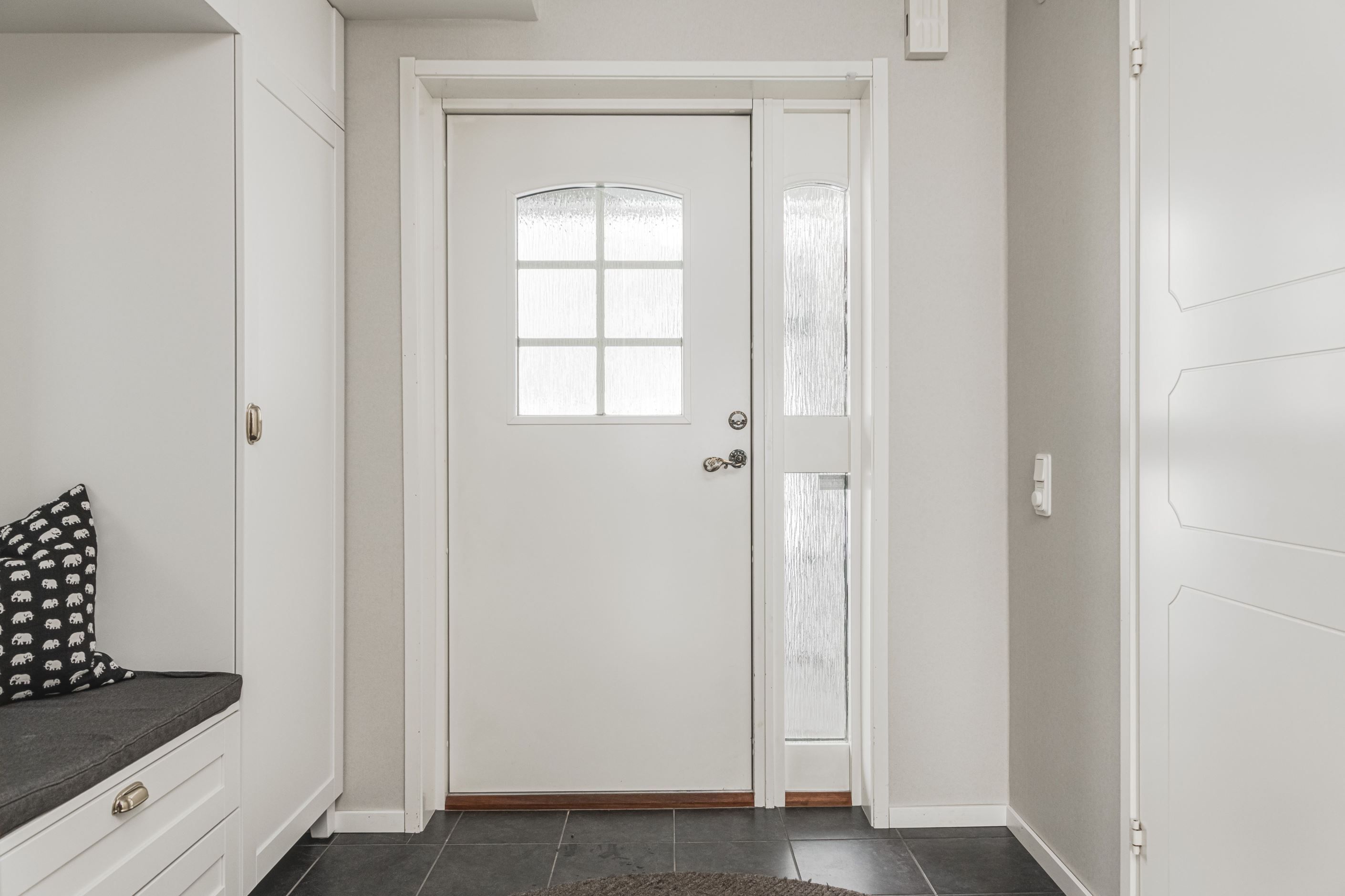 Redan vid entrén möts du av en genomtänkt planlösning och hög boendekomfort. Det renoverade köket med smakfull köksinredning från HTH erbjuder gott om arbetsytor och förvaring. På entréplanet finns även ett helkaklat badrum med klinkergolv bastu.