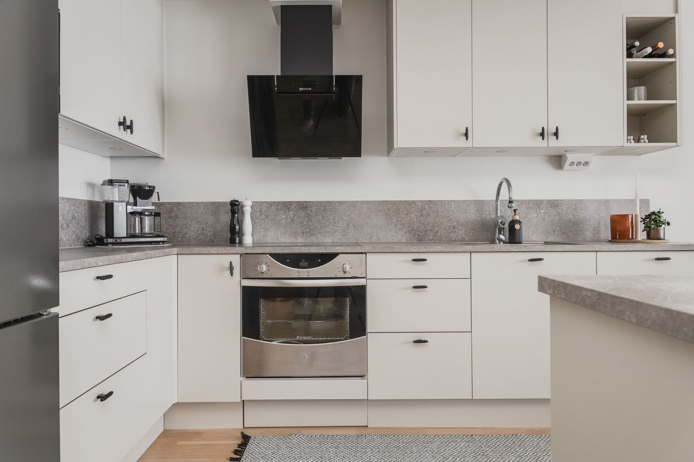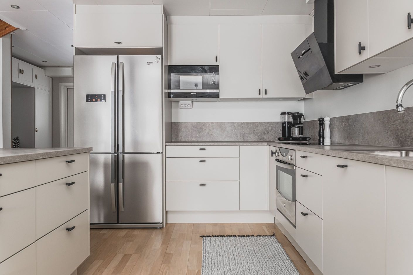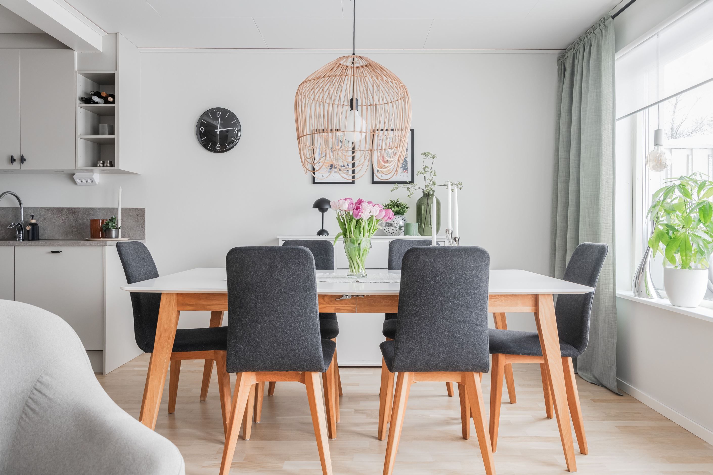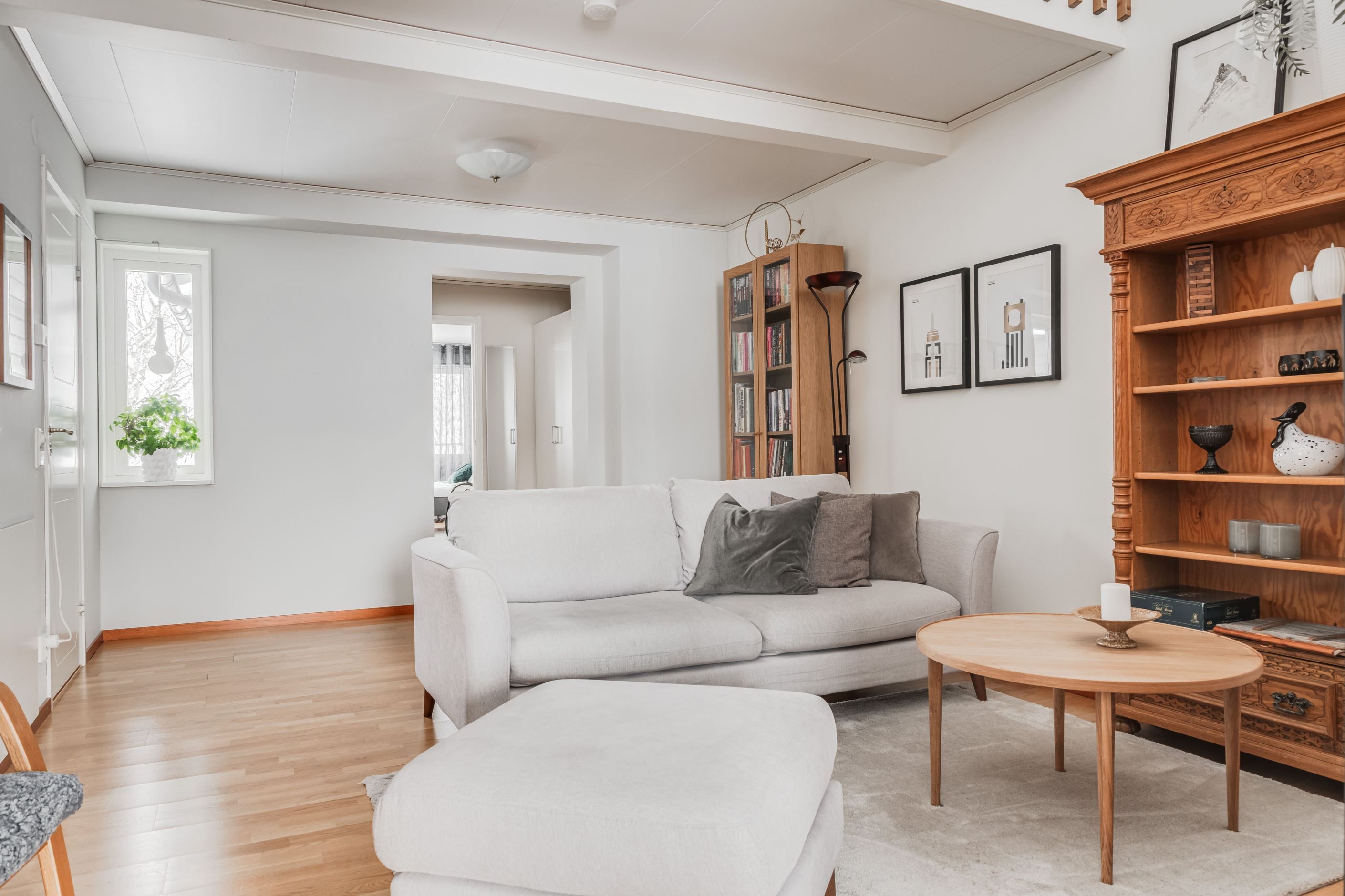 Redan vid entrén möts du av en genomtänkt planlösning och hög boendekomfort. Det renoverade köket med smakfull köksinredning från HTH erbjuder gott om arbetsytor och förvaring. På entréplanet finns även ett helkaklat badrum med klinkergolv bastu.
