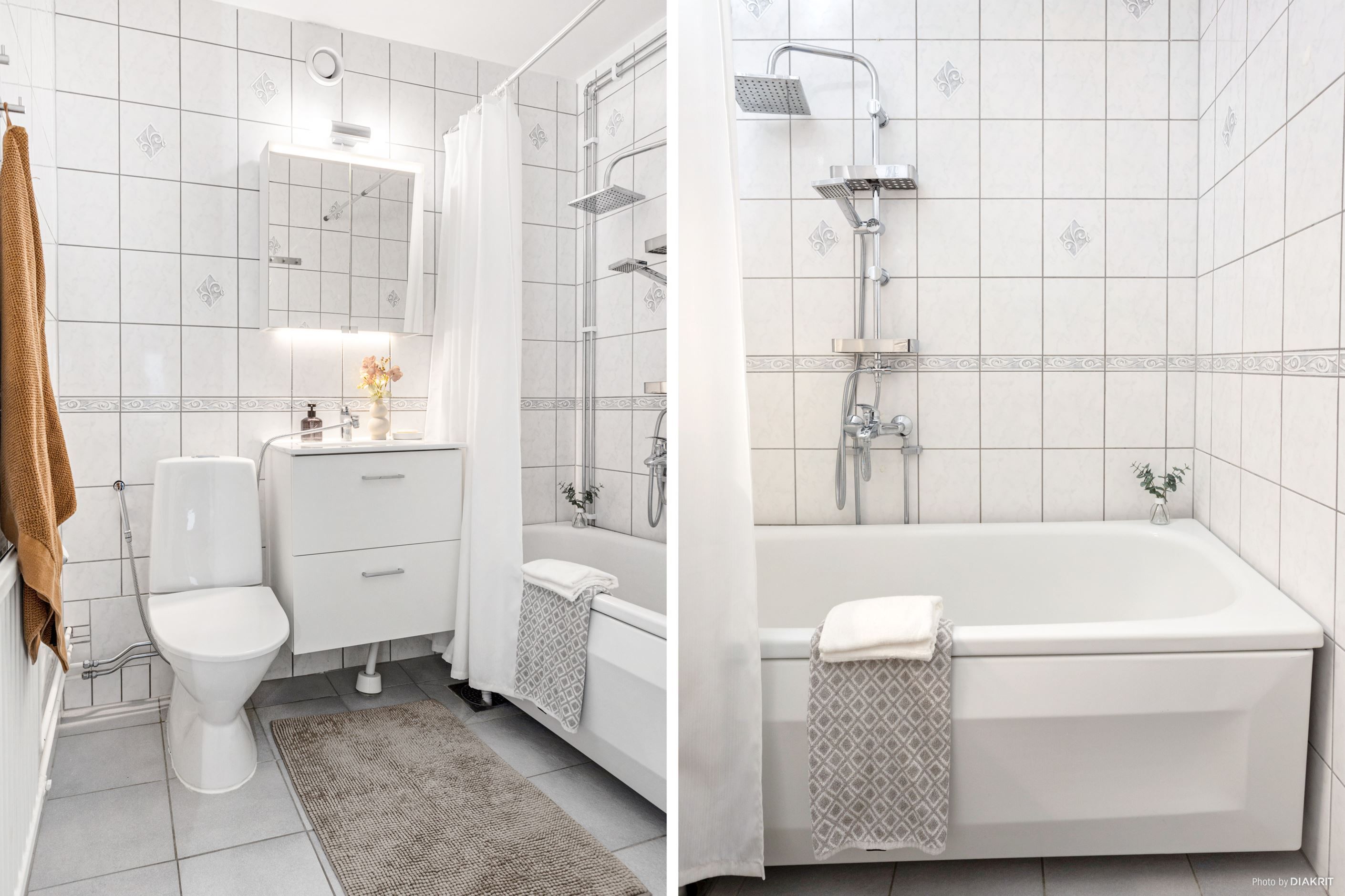 Vardagsrummet har nytt laminatgolv och en mysig atmosfär för sociala stunder. Från rummet når du den inglasade balkongen som ger ett extra rum större delen av året. Intill finns ett av sovrummen, även det med nytt laminatgolv, och längre in i lägenheten hittar du ett större sovrum som passar utmärkt som master bedroom. Vid entrén finns dessutom en praktisk walk in closet som ger gott om förvaring. Badrummet är helkaklat och utrustat med dusch.
