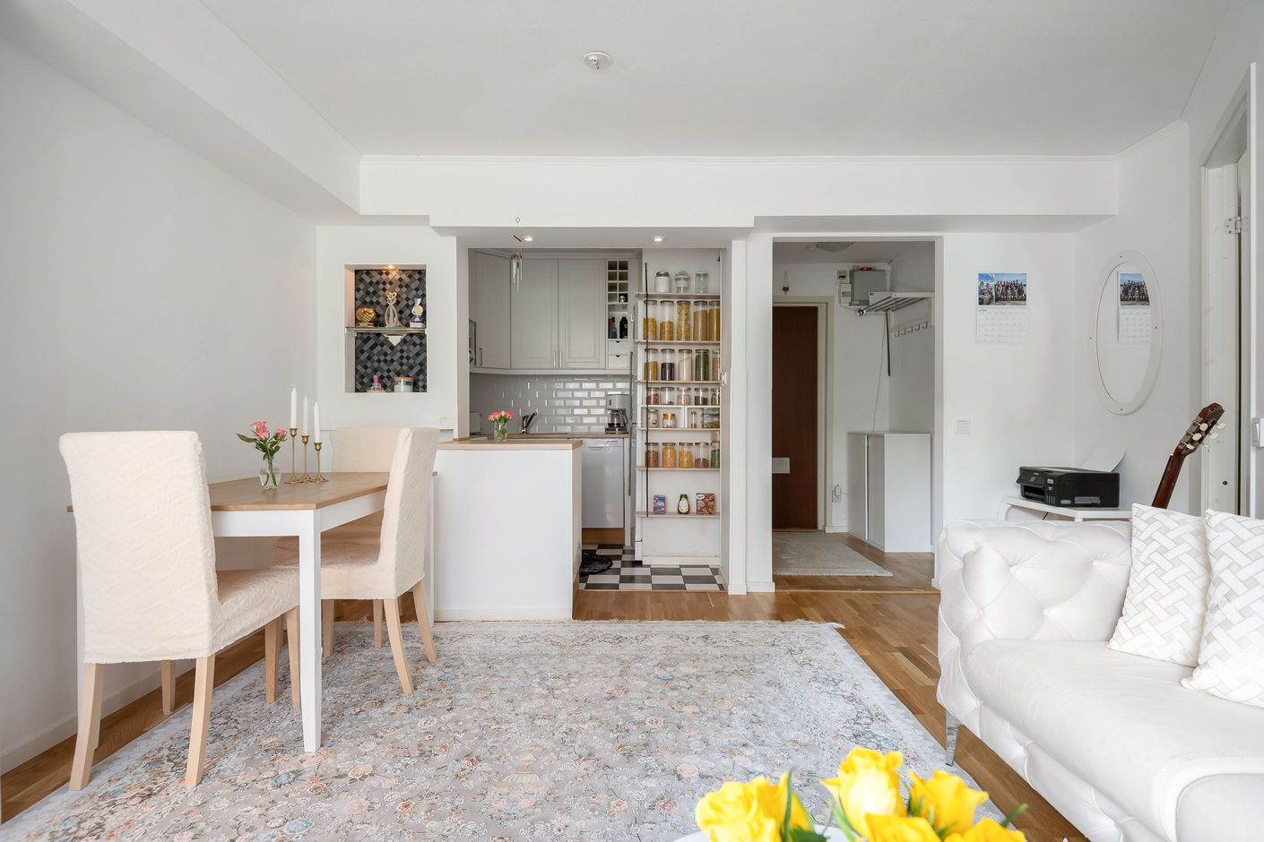 - Låg avgift där det mesta ingår! Vitt kök från 2019 med diskmaskin samt varmluftsugn och spishäll. Stilrent badrum med svart klinkergolv och vita helkaklade väggar samt tvättmaskin och torktumlare från kvalitétsmärke. Utbyggt badrum som är betydligt större än standard, vilket ger utrymme för egen tvättstuga samt stor duschplats med möjlighet att installera badkar eller jacuzzi. Vardagsrum med gavelfönster och öppen planlösning mot matplats och kök. Sovrum med plats för dubbelsäng samt hemmakontor och en praktisk garderobsvägg. Moderna parkettgolv samt vitmålade väggar i kök, vardagsrum och sovrum från 2019. Hall med fint parkettgolv och säkerhetsdörr samt hatthylla.
