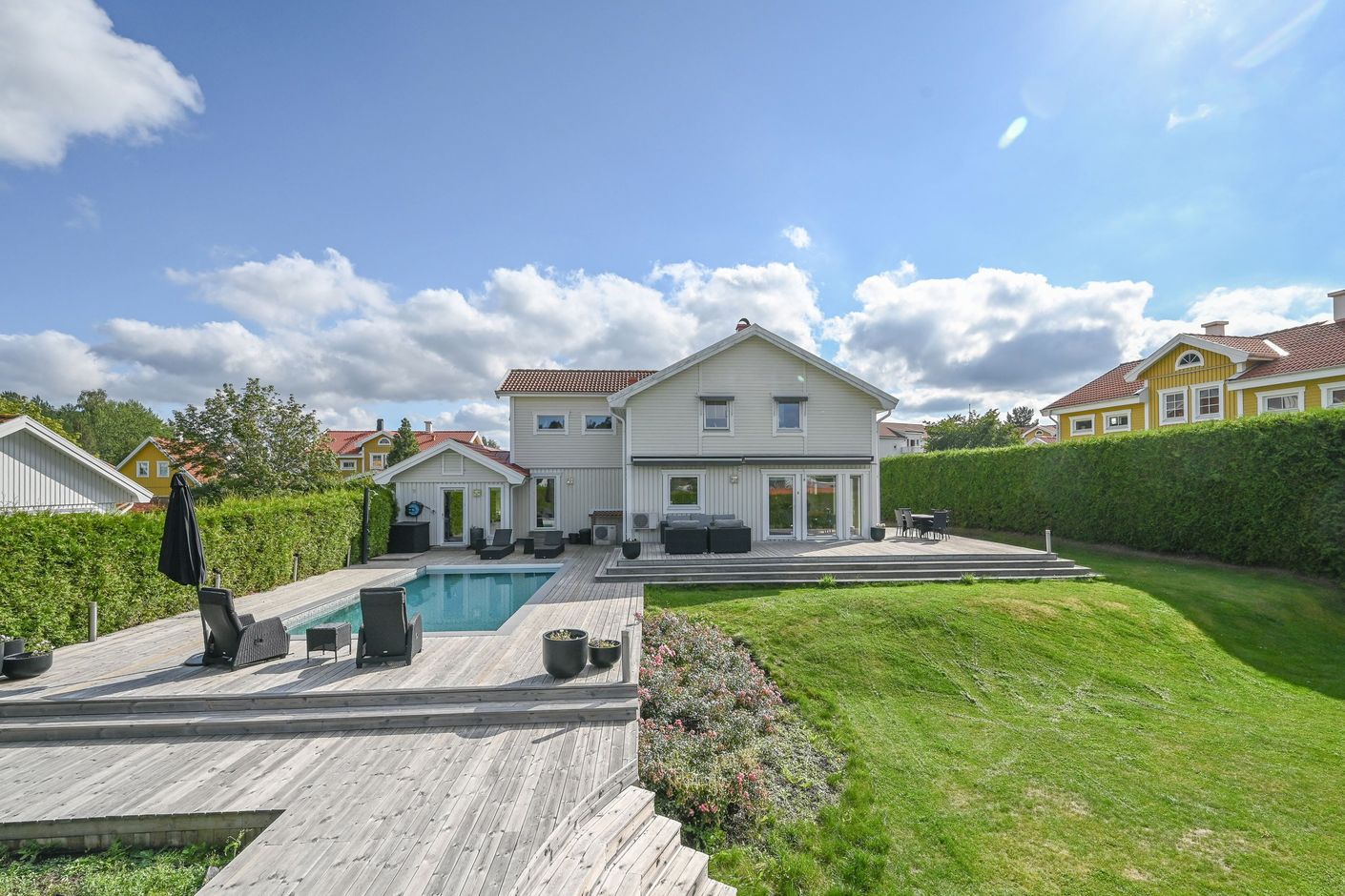- Lyxig och rymlig altan med plats för både middagar och poolhäng