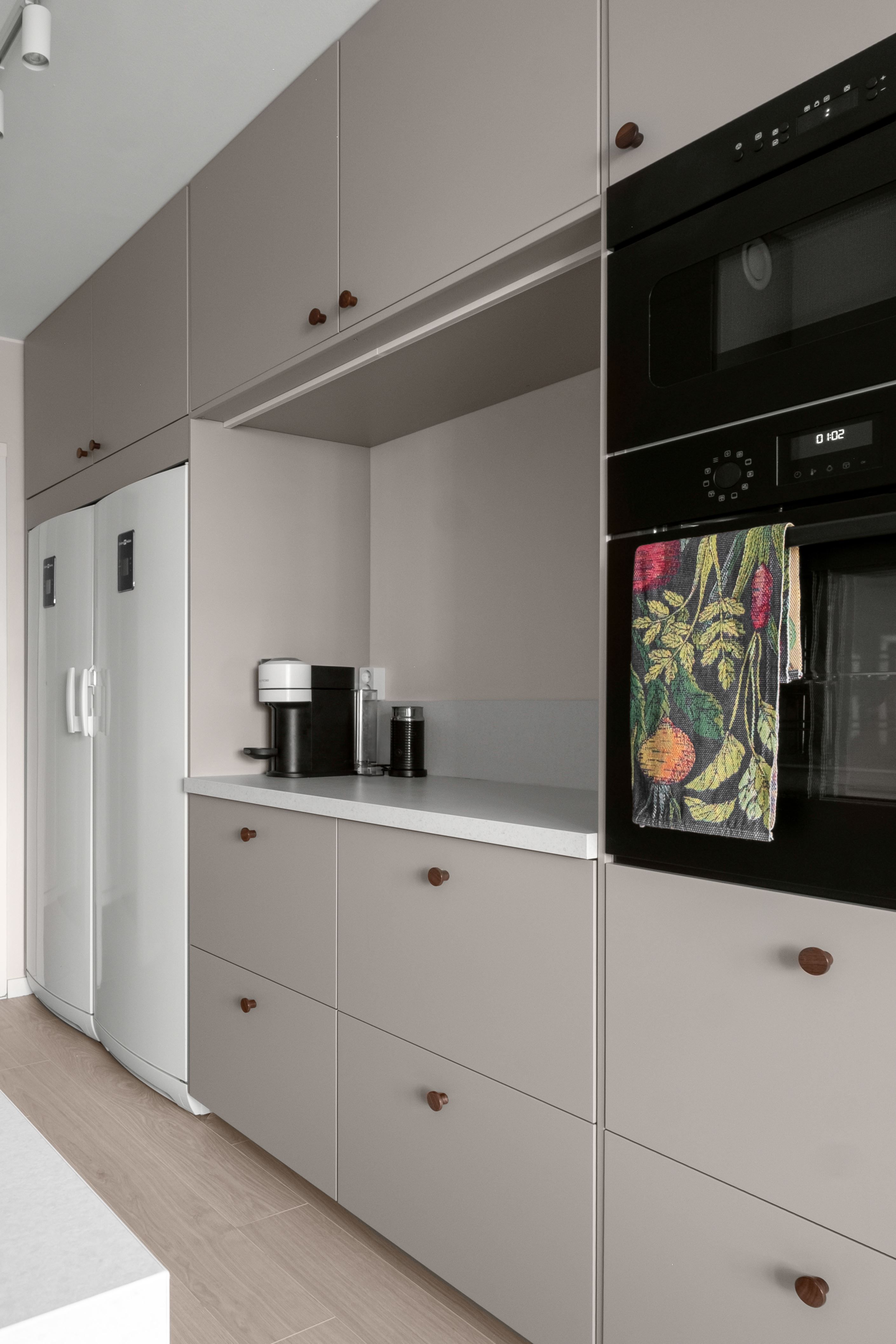 Köket är en dröm för matentusiaster, utrustat med praktisk design och generösa förvaringsutrymmen samt arbetsytor. Här kan du enkelt skapa minnesvärda middagar för vänner och familj. Vardagsrummet bjuder på ljus och rymd, tack vare fönster i två väderstreck, vilket förstärker den inbjudande atmosfären.
