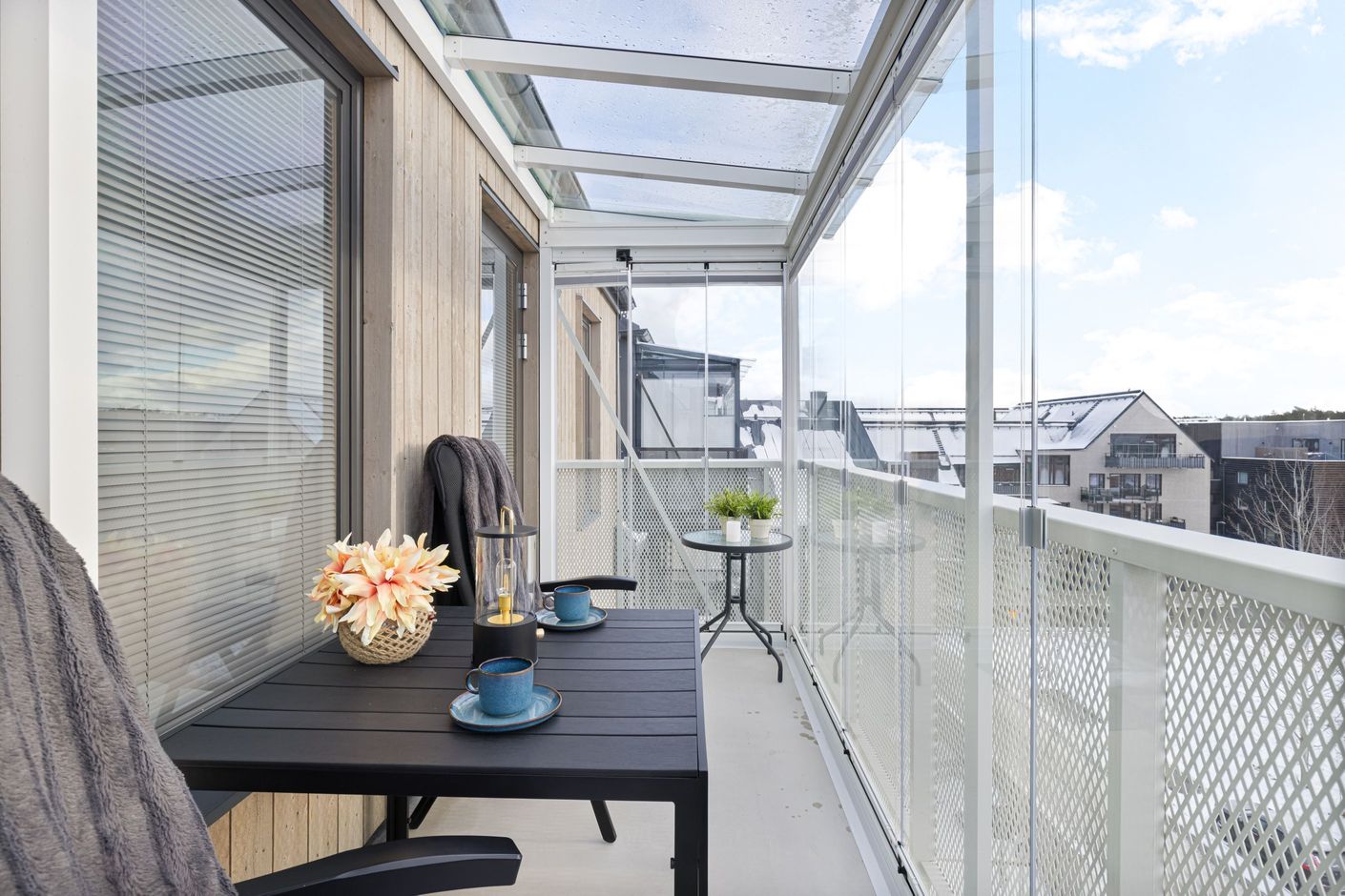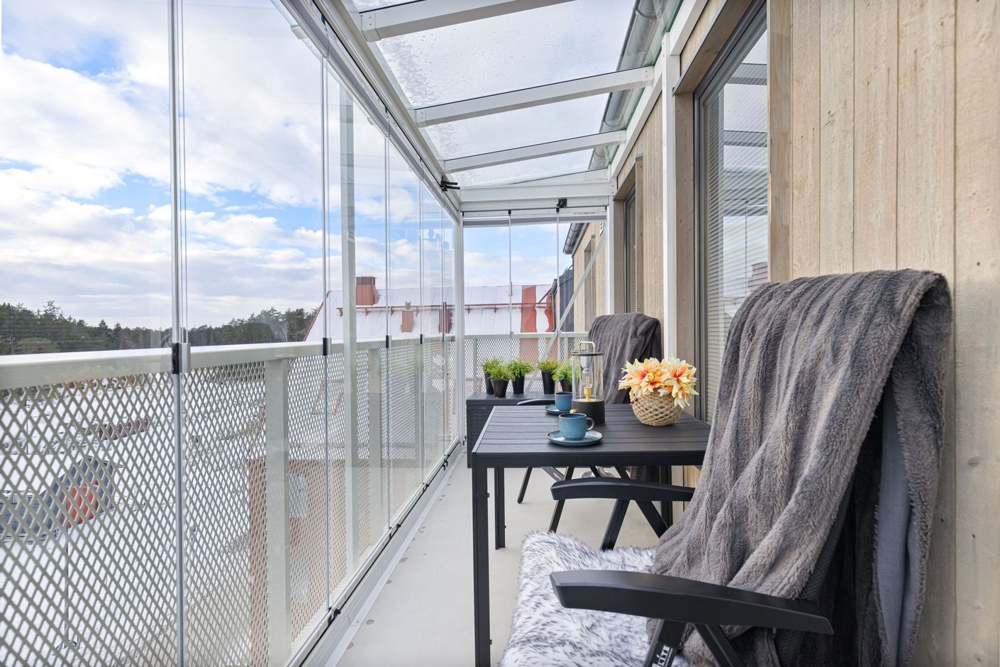 Med en imponerande takhöjd om över fyra meter i bostadens högsta punkt och en generös inglasad balkong i fritt, insynsskyddat läge erbjuds här en ljus och luftig atmosfär som är svår att hitta i en tvåa. Det rika ljusinsläppet tillsammans med den öppna känslan skapar ett hem som verkligen sticker ut. Den moderna öppna planlösningen bjuder in till socialt umgänge och ger ett naturligt och harmoniskt flöde mellan kök, matplats och vardagsrum – perfekt för både vardag och fest. Smakfulla och genomtänkta materialval genomsyrar bostaden och bidrar till ett stilrent varmt och välkomnande intryck där det är lätt att känna sig hemma från första stund. Den stora inglasade balkongen i soligt och fritt läge blir en självklar förlängning av bostaden och erbjuder en flexibel yta för avkoppling, middagar eller umgänge med familj och vänner – oavsett årstid.