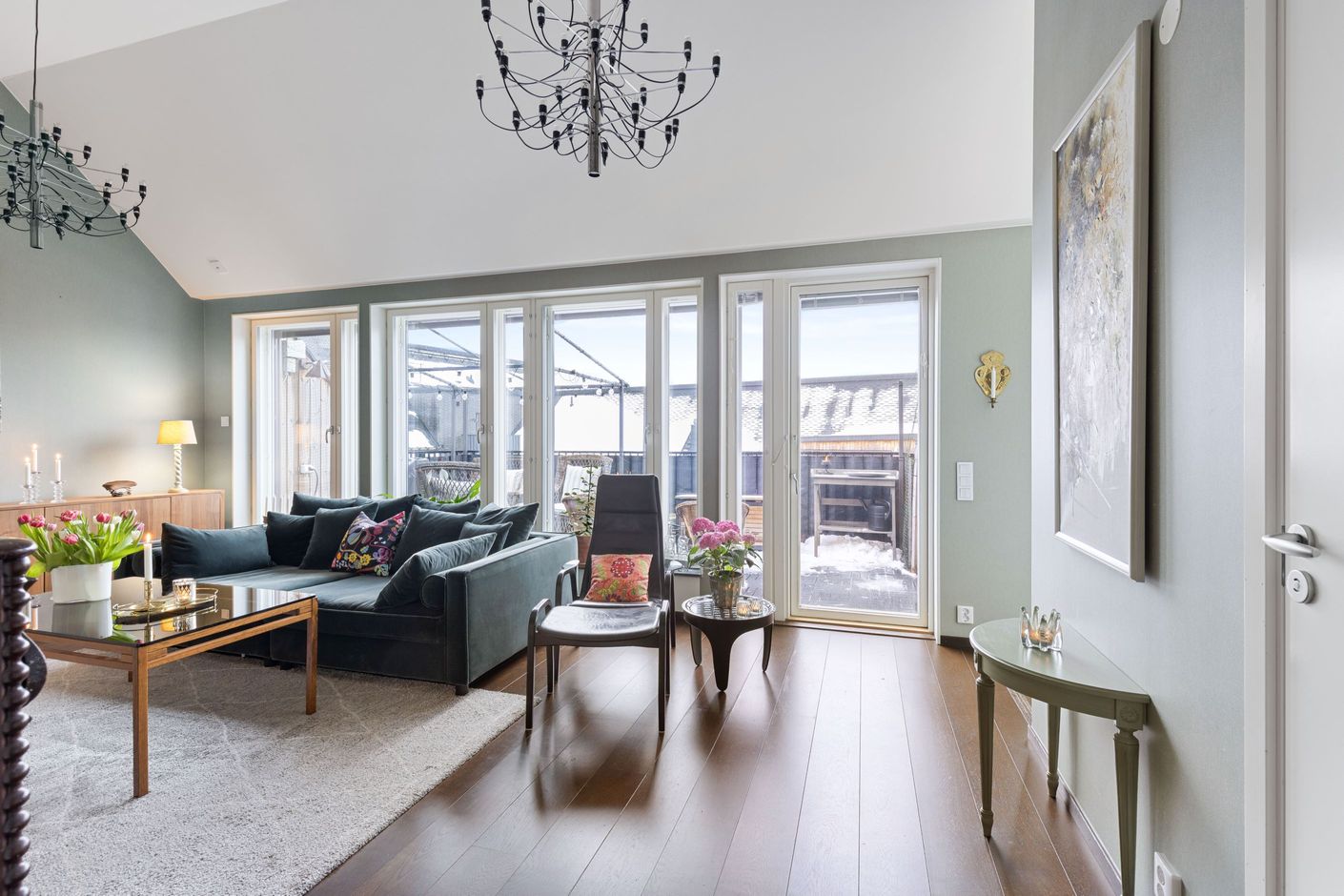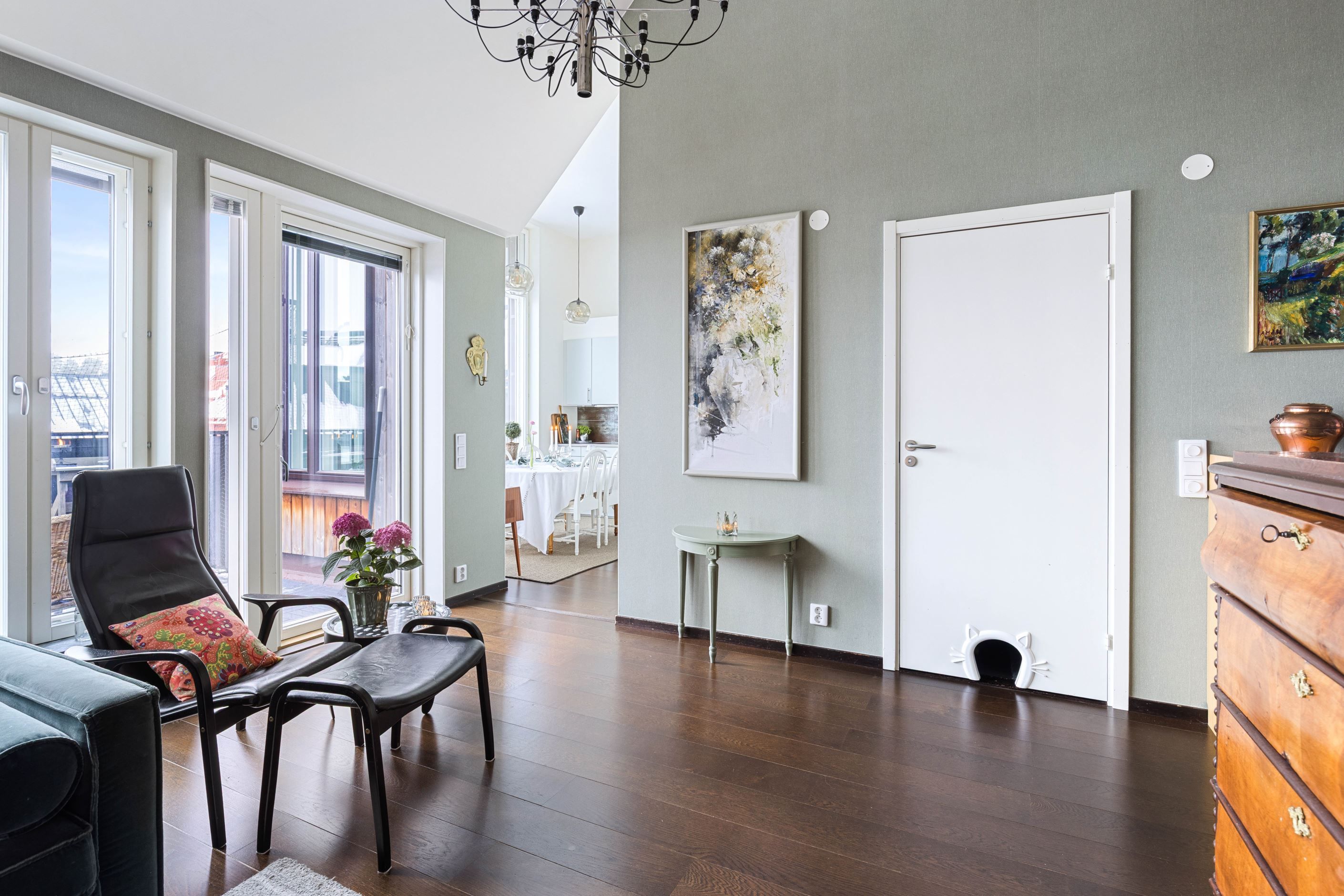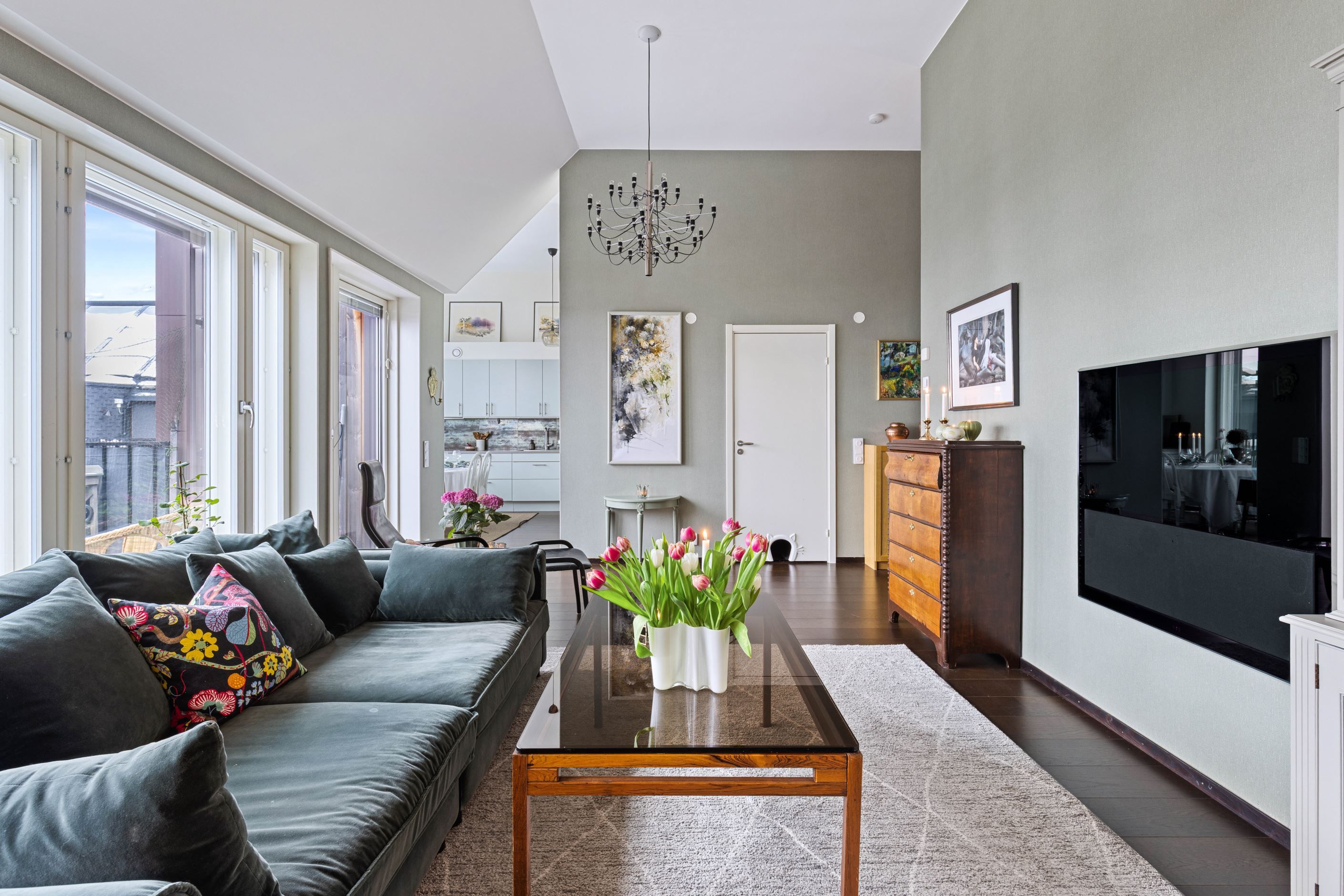 En fantastisk takvåning med rymlig solterrass – ett exklusivt och smakfullt hem utöver det vanliga.