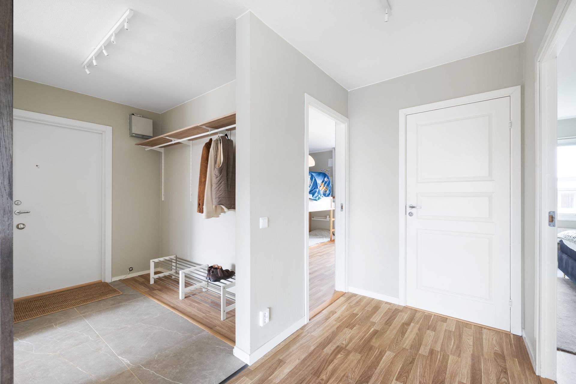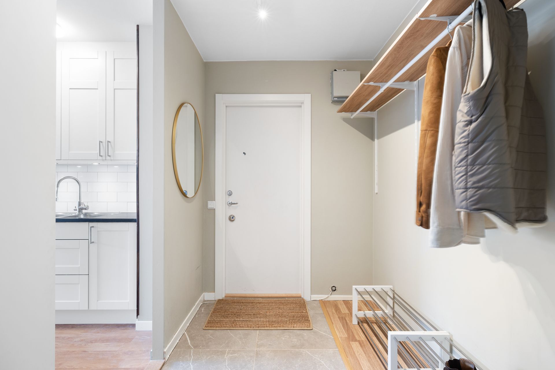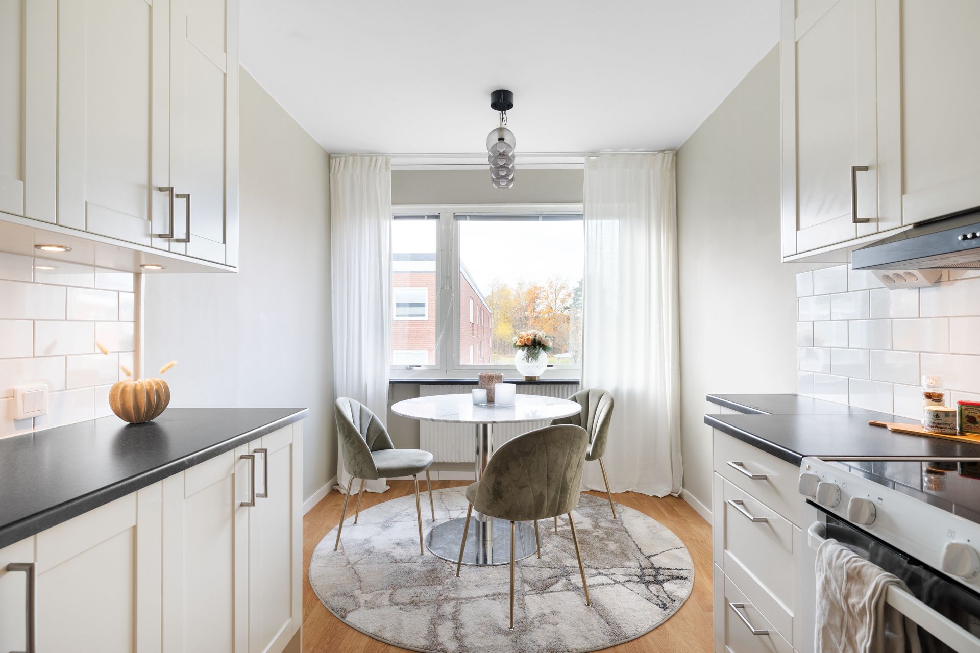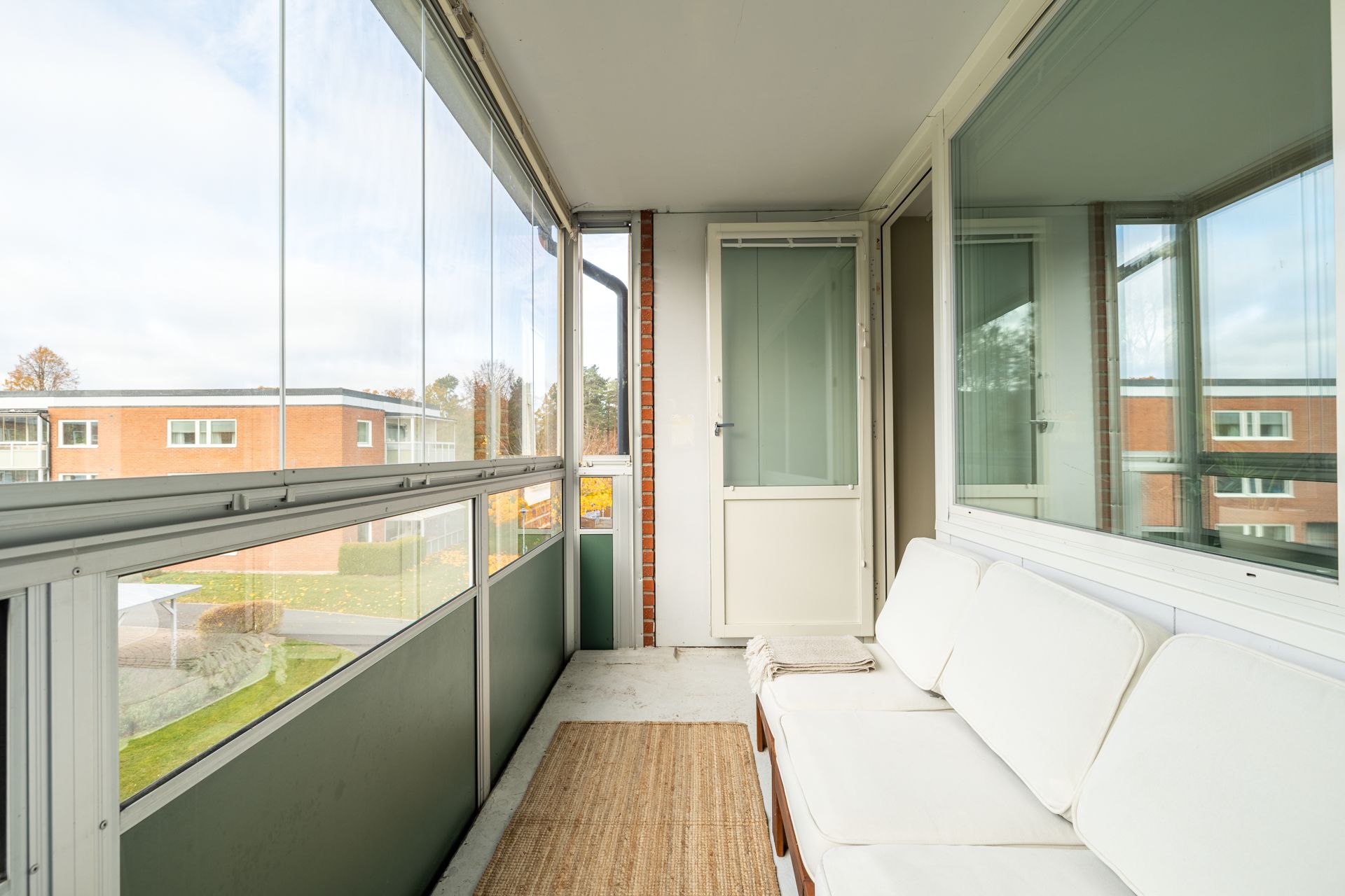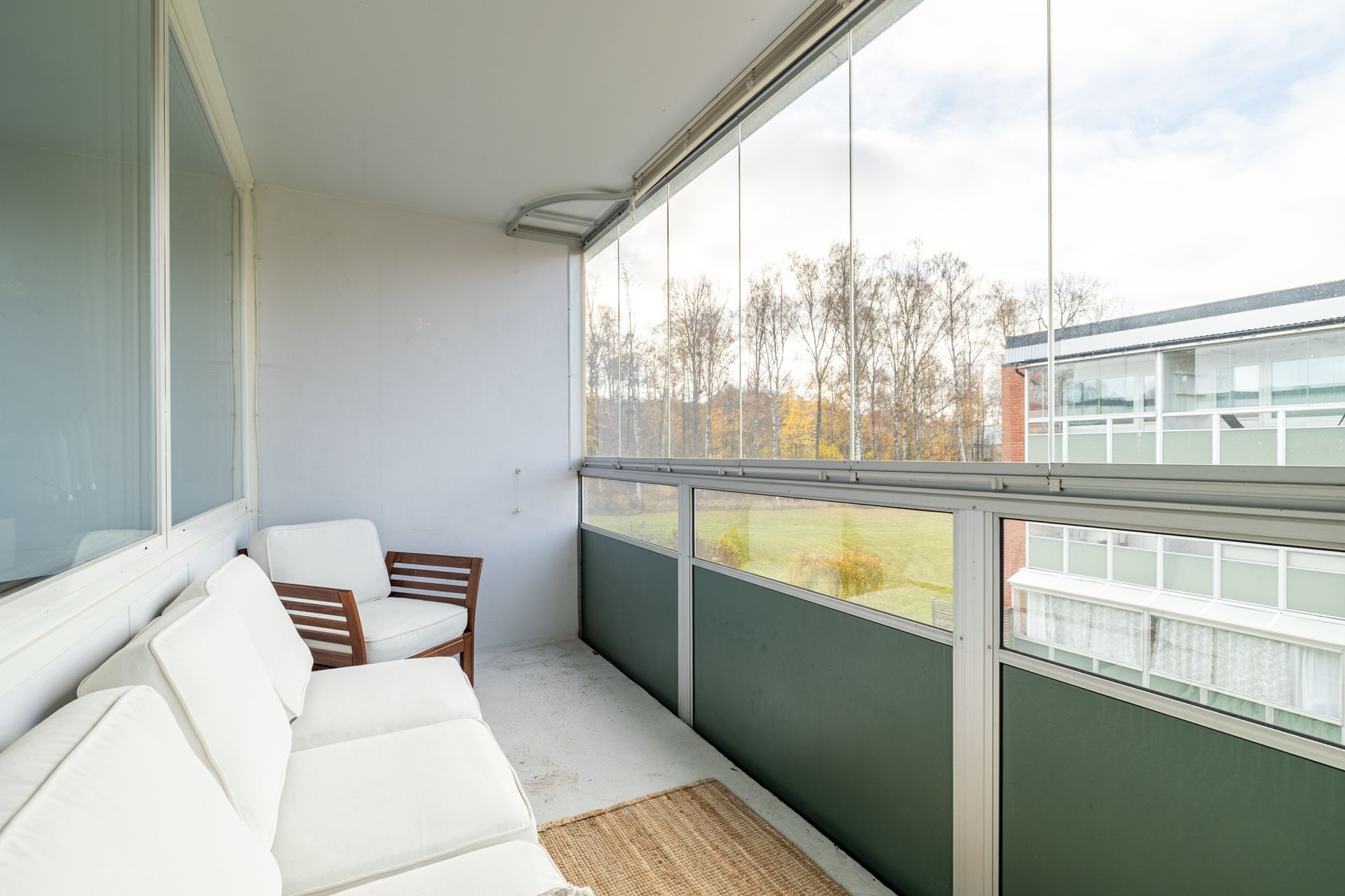 Bostaden välkomnar med en ljus, öppen hall som genast ger en känsla av rymd. Köket har stilrena materialval, bra arbetsytor och smart förvaring. Vardagsrummet är luftigt och socialt med direkt access till den inglasade balkongen i soligt sydläge – perfekt för lata stunder från tidig vår till sen höst, med fin utsikt och insynsskyddat läge.