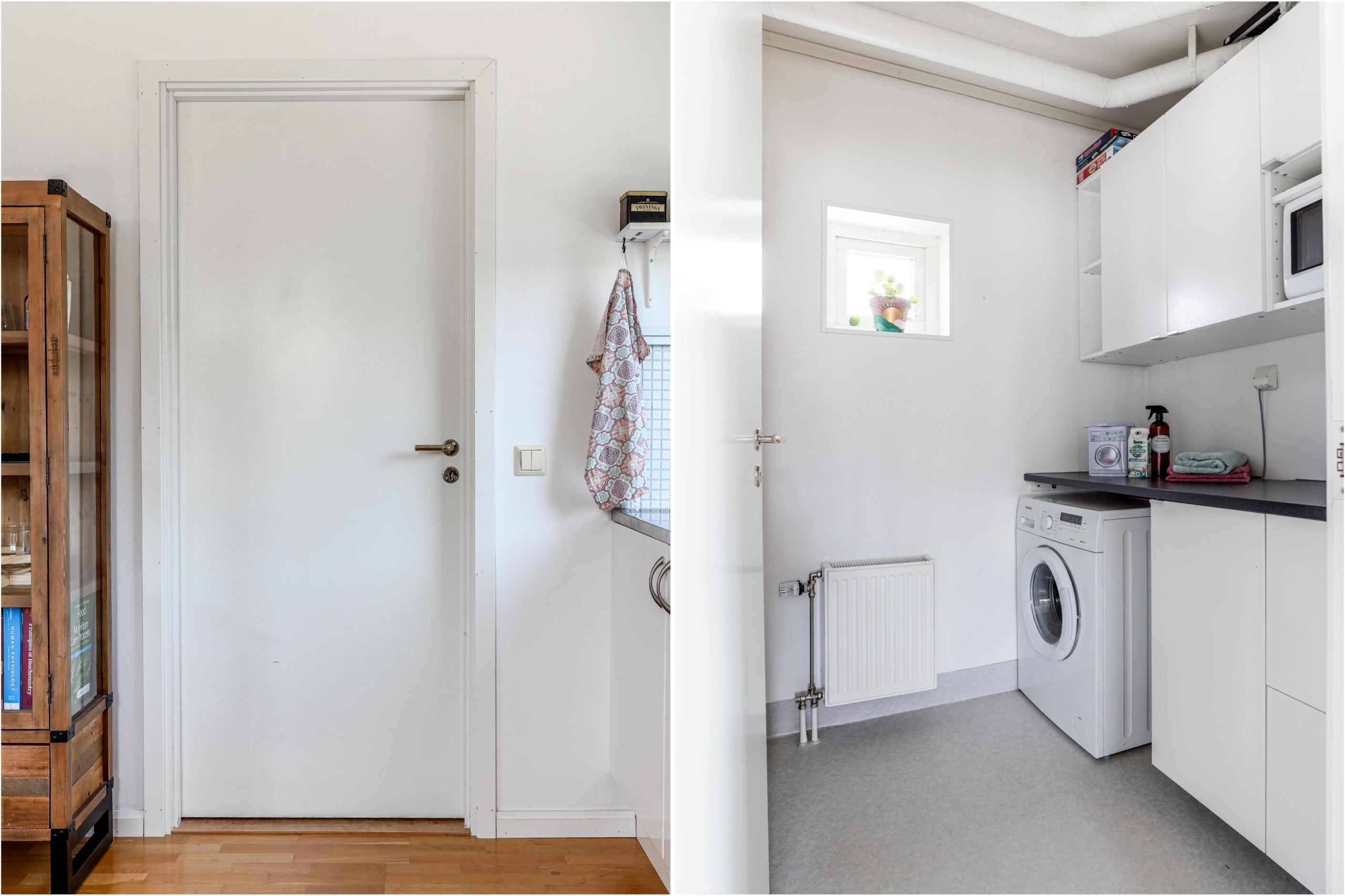Denna gavellägenhet präglas av ljus och rymd tack vare generös takhöjd och stora fönster i tre väderstreck. De klassiska fönsterbrädorna i marmor, dubbeldörrarna ut mot balkongen och de fina trägolven ger bostaden en tidlös och ombonad känsla. Den öppna planlösningen mellan kök och vardagsrum skapar en naturlig mittpunkt, medan den egna tvättstugan och det stora separata förrådet ger en praktisk vardag med gott om förvaring.