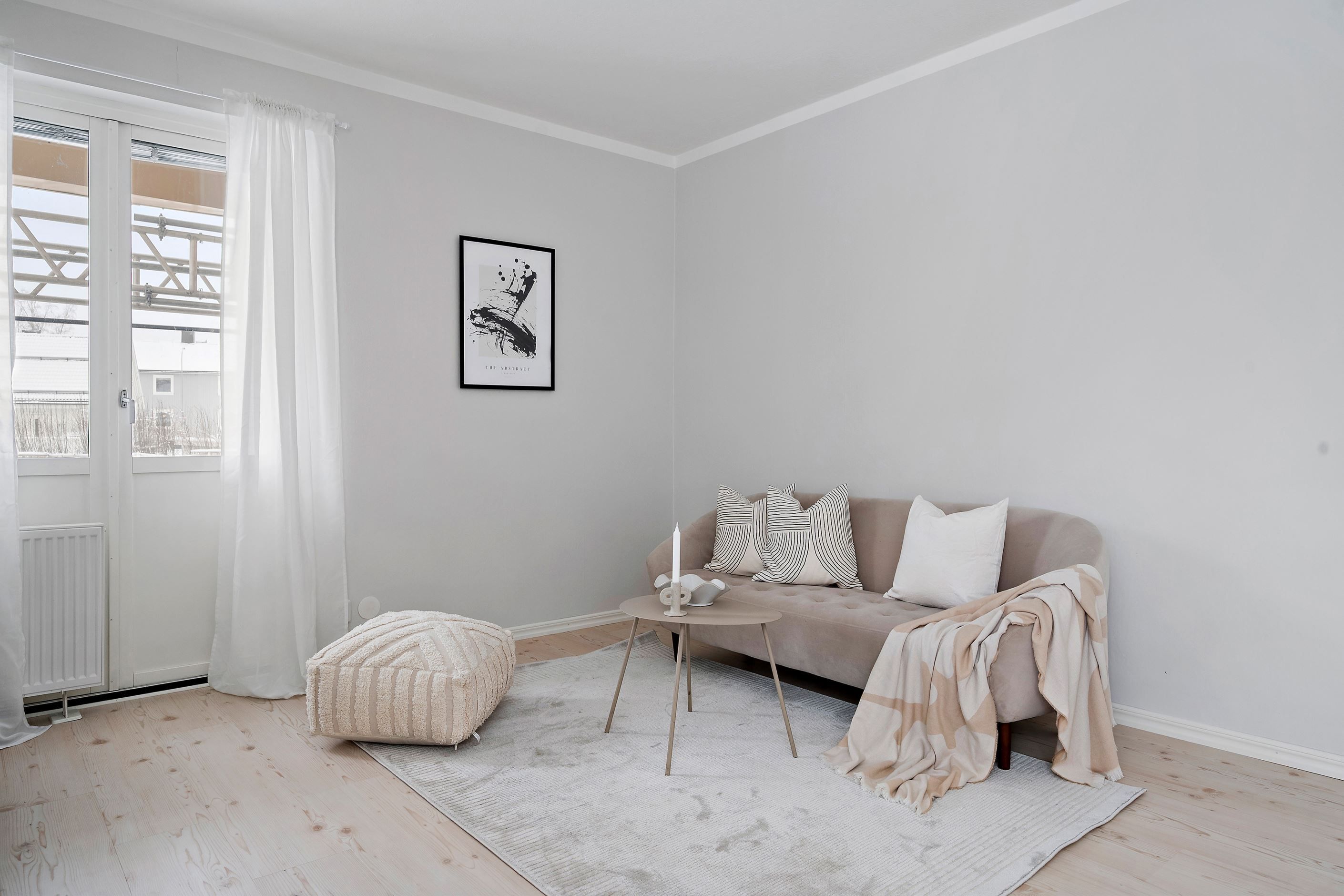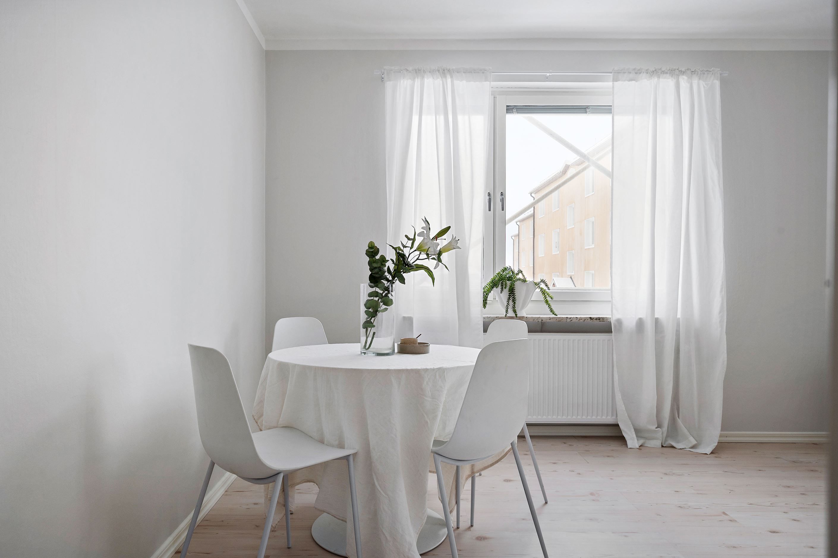 Genomgående ljusa ytskikt, bra förvaringsmöjligheter och ett trevligt ljusinsläpp i hela lägenheten gör detta till ett hem att trivas i.