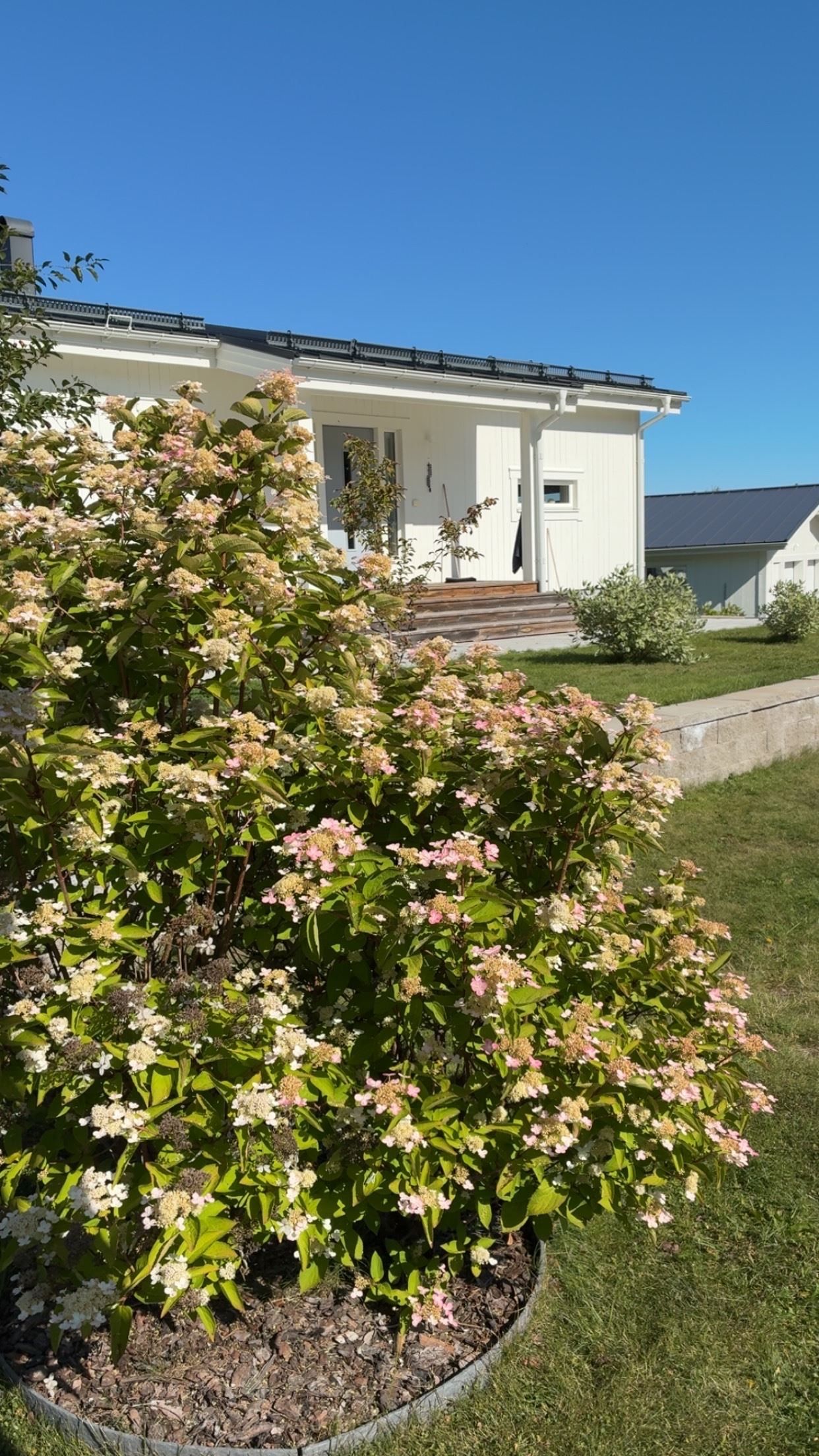 Tomten är omsorgsfullt skött och erbjuder en prunkande trädgård med gräsmatta, smakfulla planteringar samt äppel- och körsbärsträd. En granittrappa leder upp till entrén och den asfalterade uppfarten har plats för flera fordon. Dubbelgarage med fjärrport och elbilsladdare fulländar både komfort och funktionalitet.