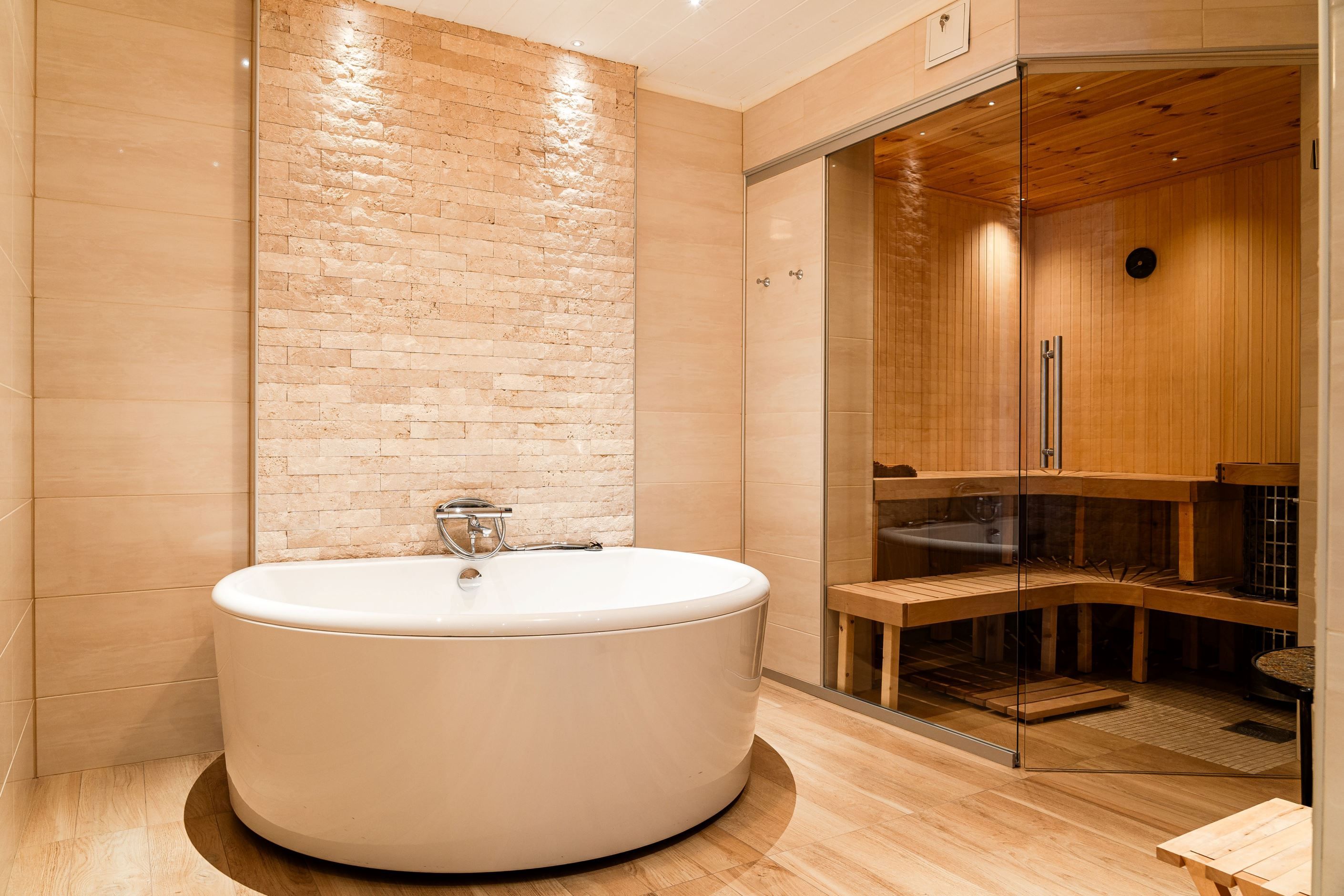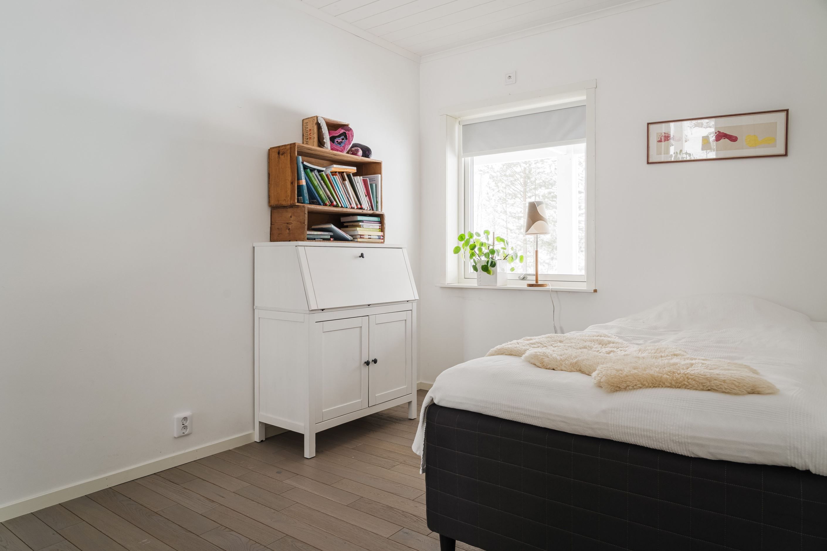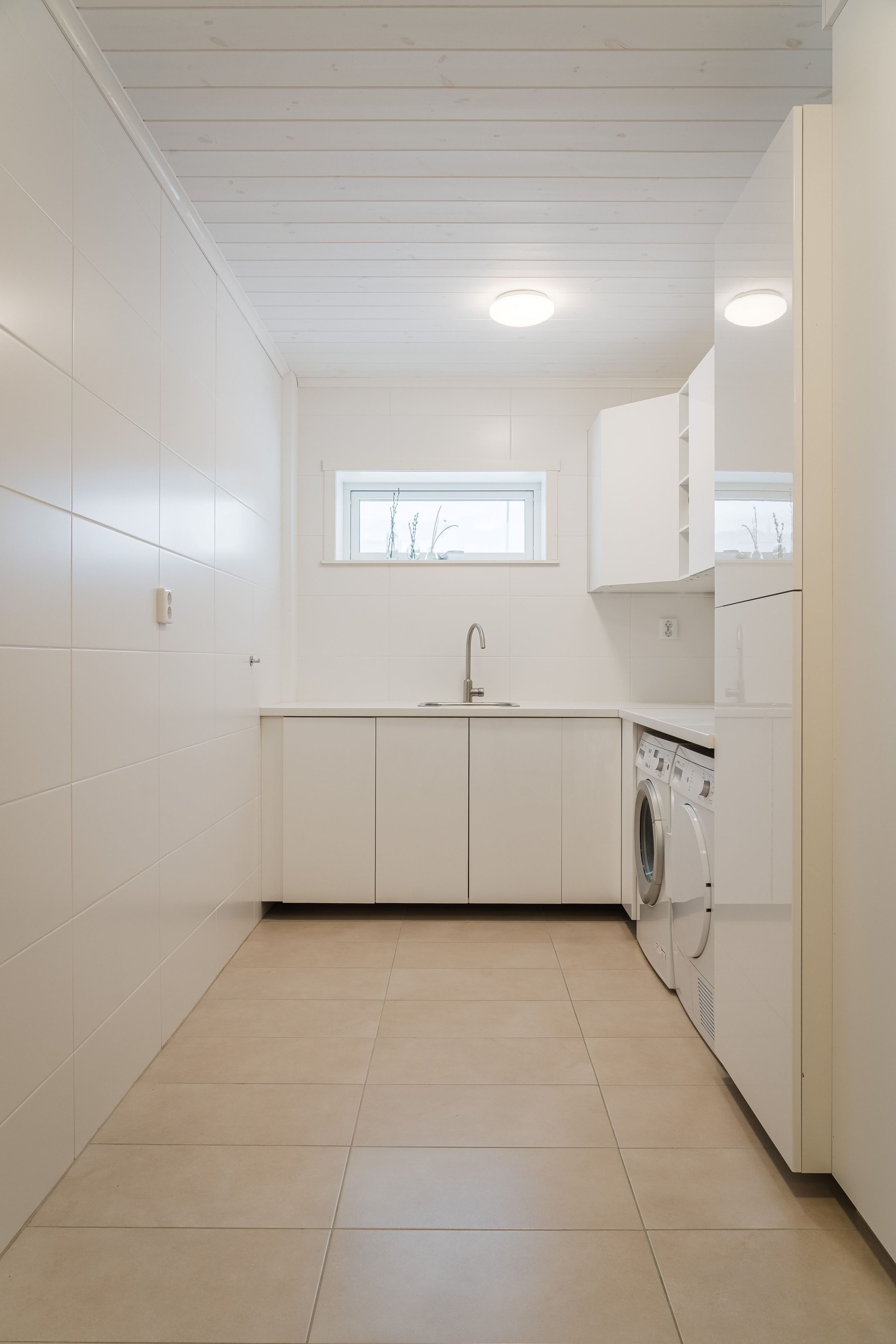En trappa ner hittar du det lyxiga badrummet med spa-känsla, utrustat med badkar, dusch och bastu samt anslutande wc – en privat oas för vardagslyx. Här finns även en välplanerad tvättstuga samt övriga sovrum, där ett av rummen är generöst tilltaget och används idag som allrum och härifrån når du altanen på baksidan av gården.