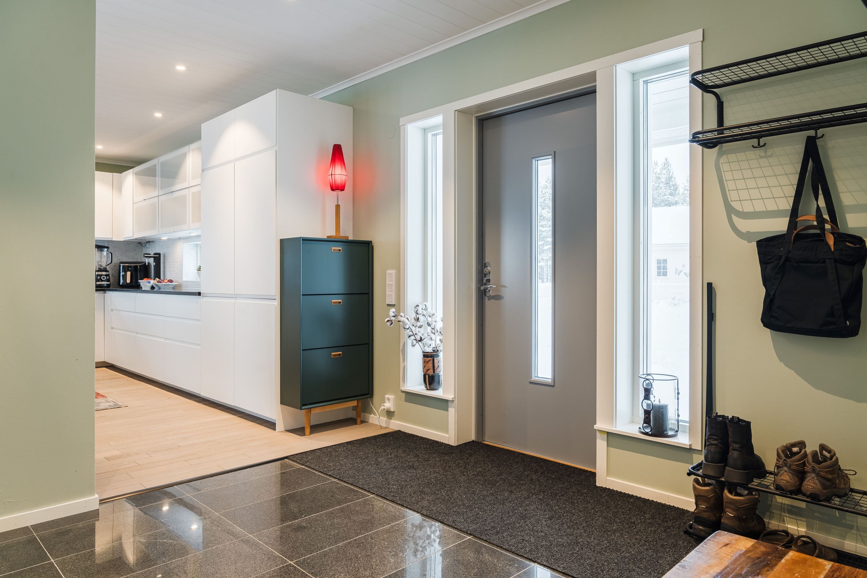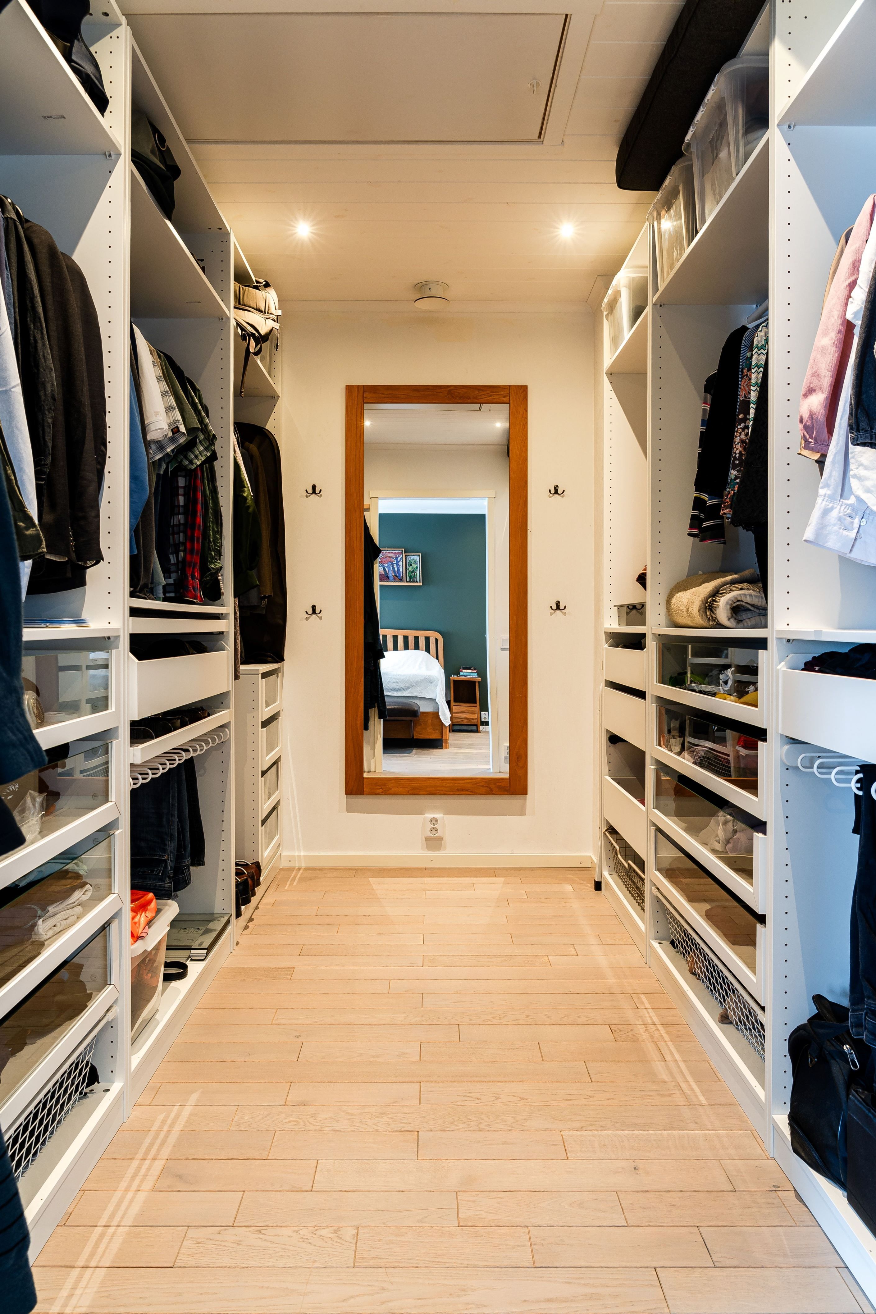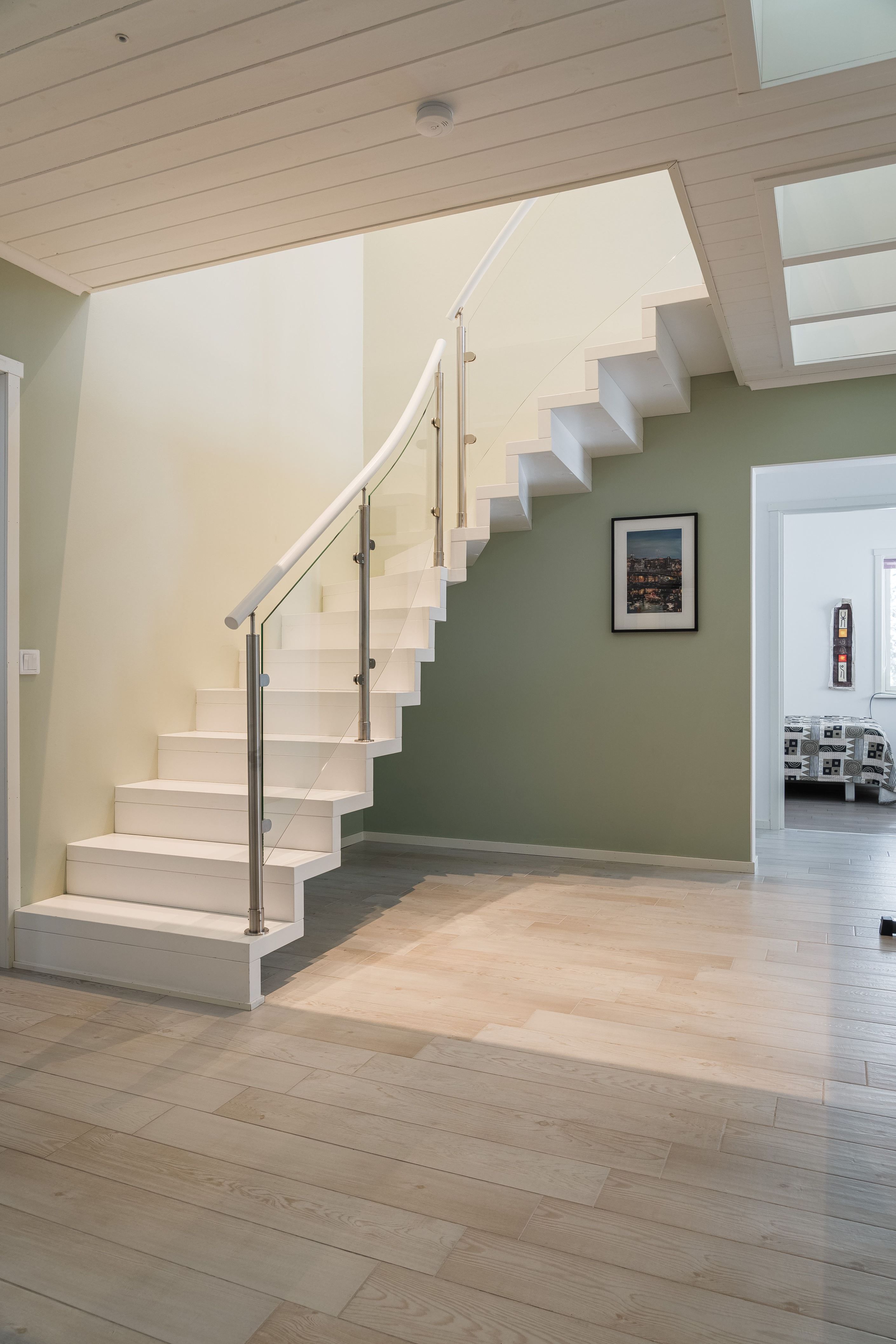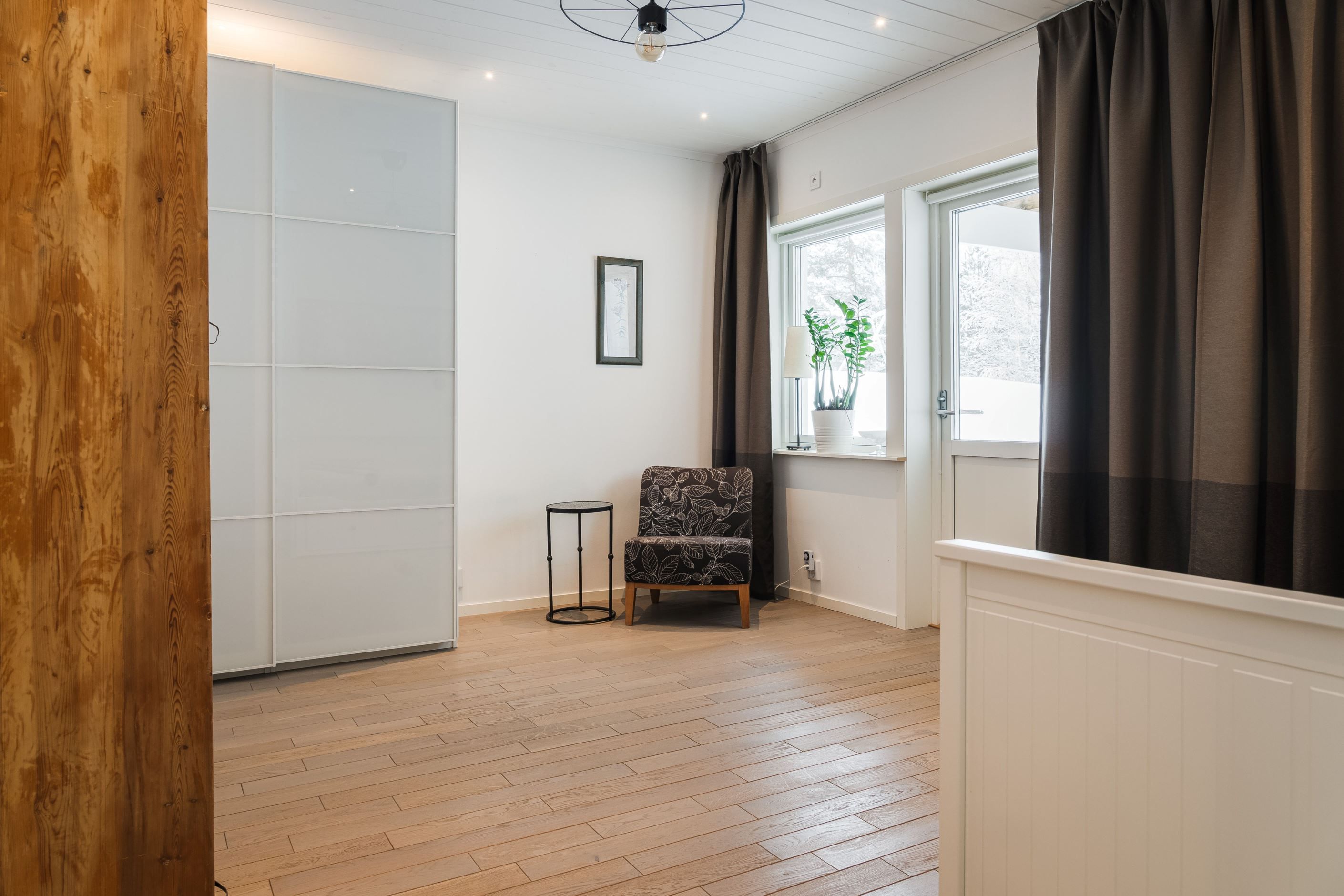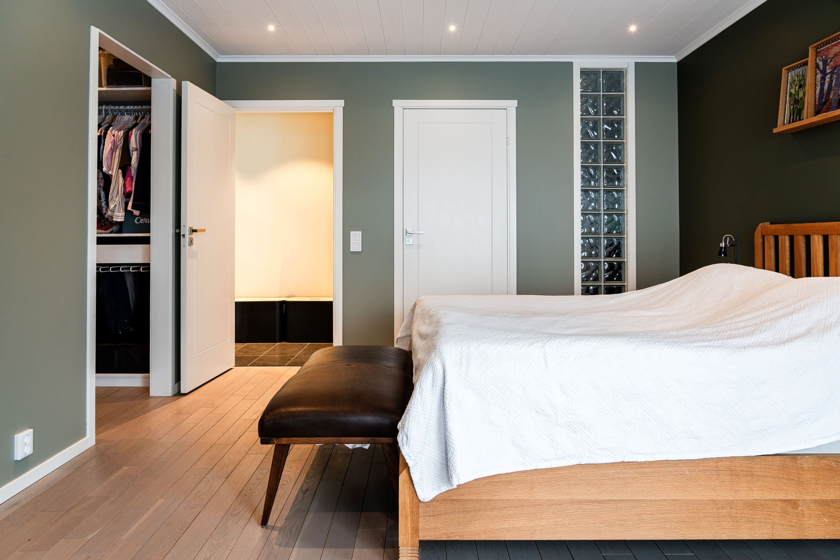 Redan när du kliver in möts du av en känsla av exklusivitet och hög standard. Entréplanet välkomnar med en stilren hall med garderob och en smakfullt designad gästtoalett. Villan erbjuder en välplanerad och funktionell planlösning med hela fem sovrum. Det stora sovrummet på entréplanet ligger avskilt i ett lugnt läge med en generös klädkammare och ett anslutande badrum skapas en privat svit – ett rofyllt och exklusivt retreat med hotellkänsla.